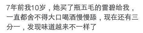 7年前我10岁,她买了瓶五毛的雷碧给我一直都舍不得大口喝酒慢慢舔,现在还有三分一,发现味道越来不一样了