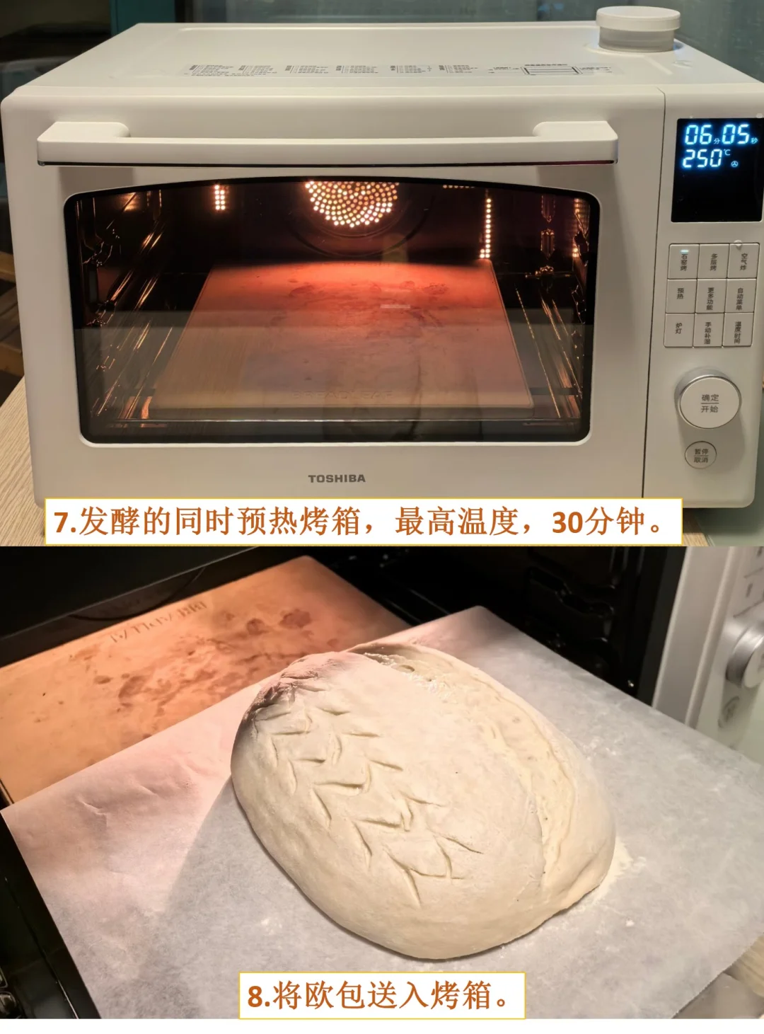 我用东芝7400,选择“石窑烤”, 250度,特意放入了烘焙石板,让它更像石窑烤。