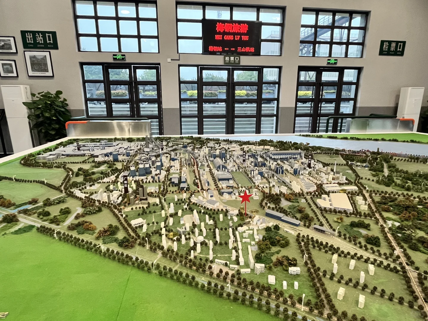 [向右R]『梅钢站』——据说这里有直达三山矶的小火车,但比较难约(提前预约且满20人才发车)。建筑外观有年代感,里面有一个大沙盘展示梅钢全貌。