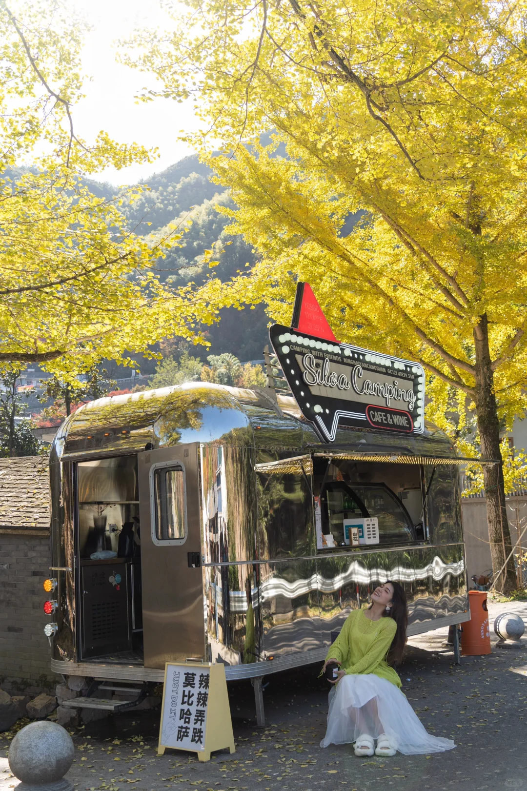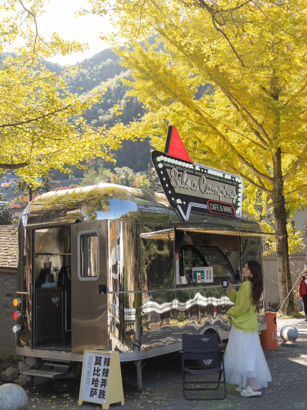 瞬间是永远无法复刻的! 不会有一样的光,一样的风,一样的情绪 📍位置:宁波-北溪村 看到的第一眼满满震撼! 银杏树下有一辆可移动咖啡车,远远望去美极了