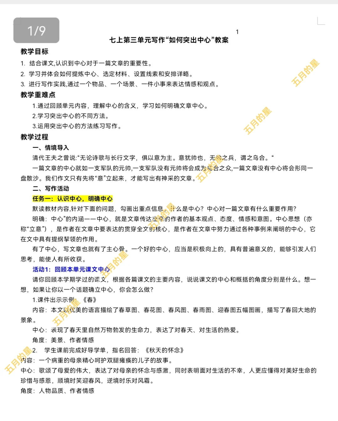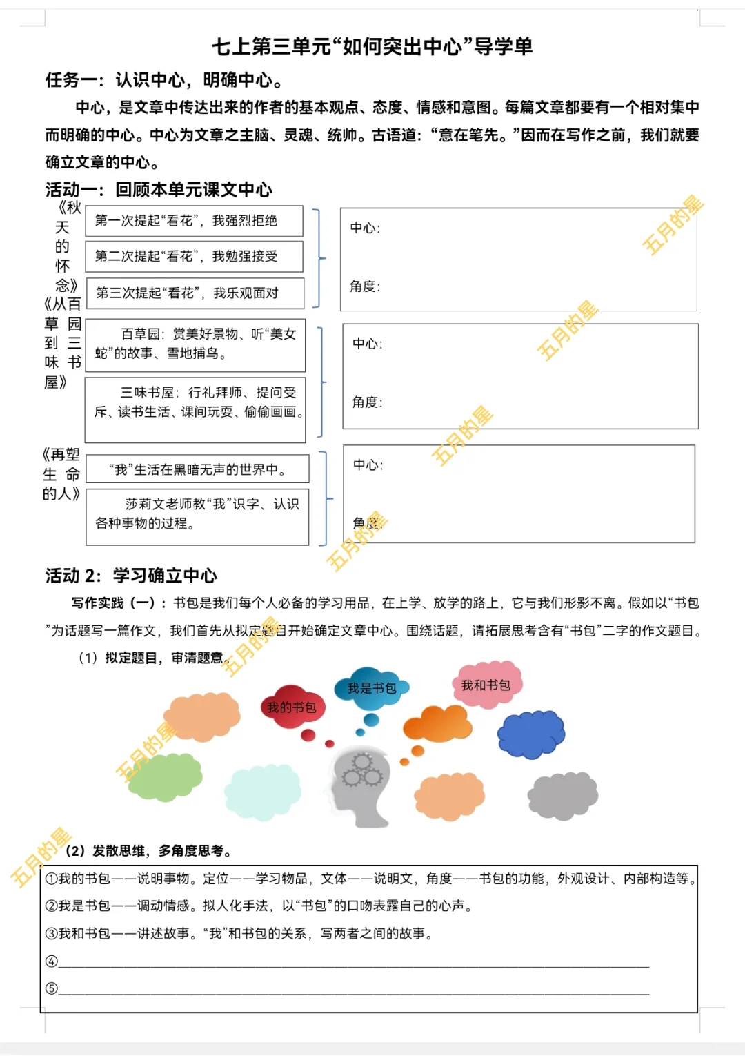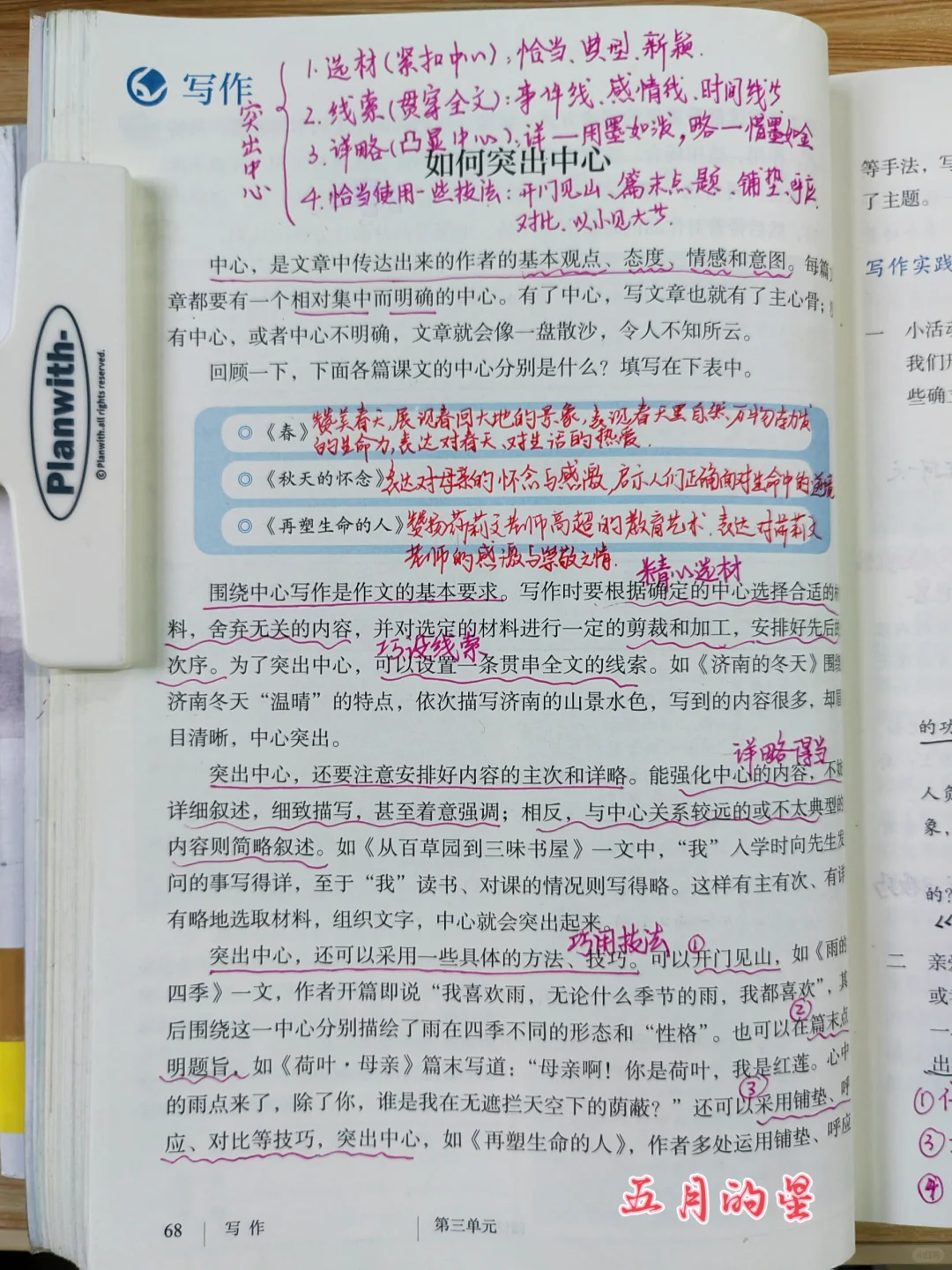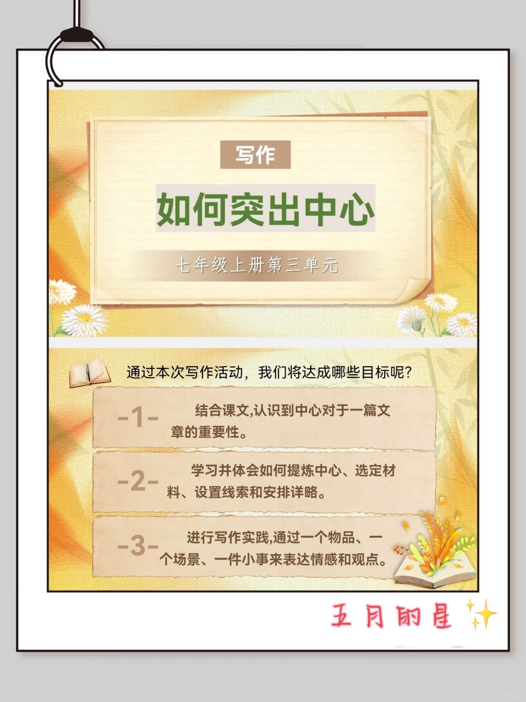 课堂笔记 七年级上册语文 初中语文 七上语文 七上第三单元作文 如何突出中心 七年级写作要突出中心 七年级上册语文课件 七年级写作