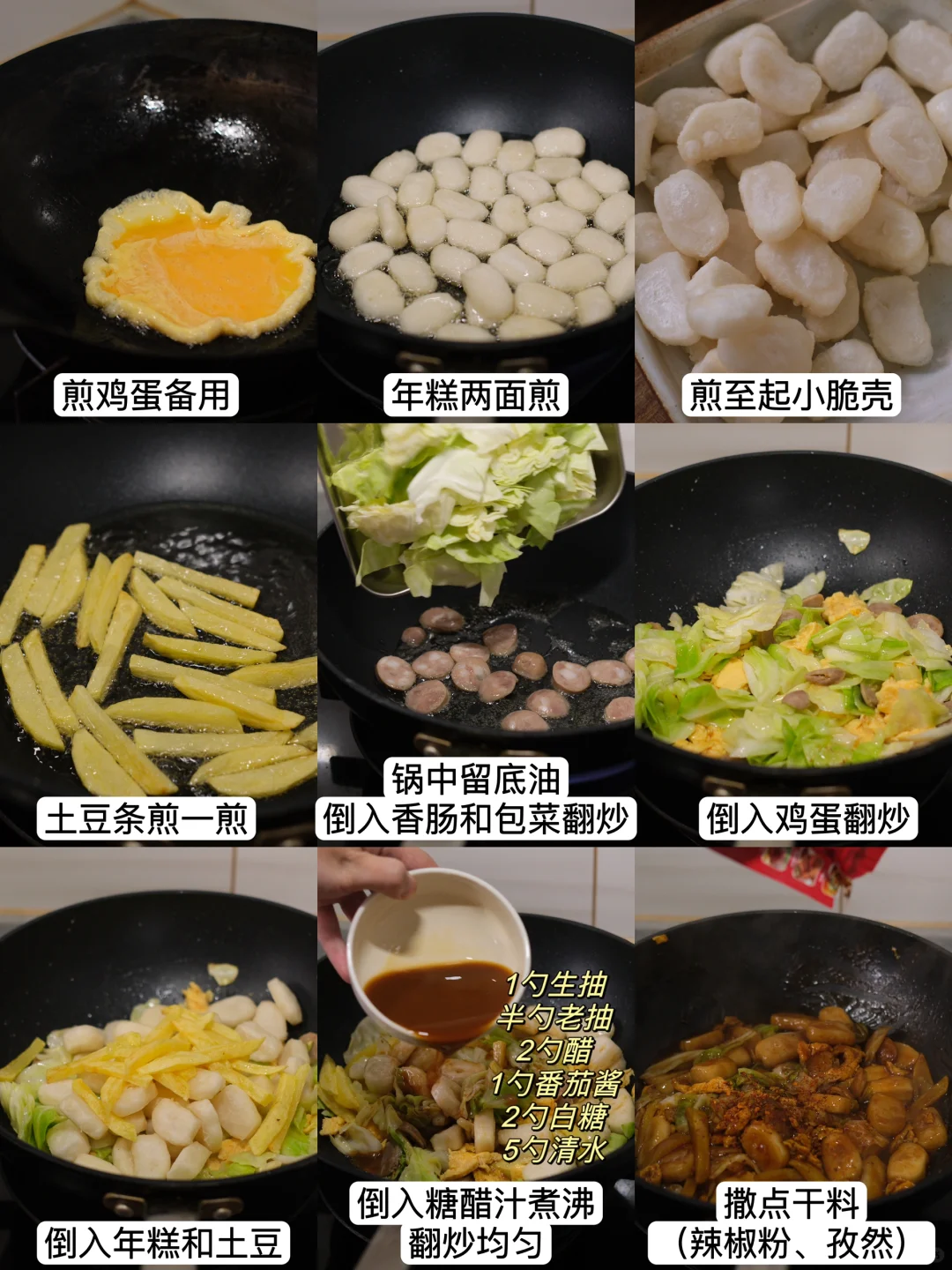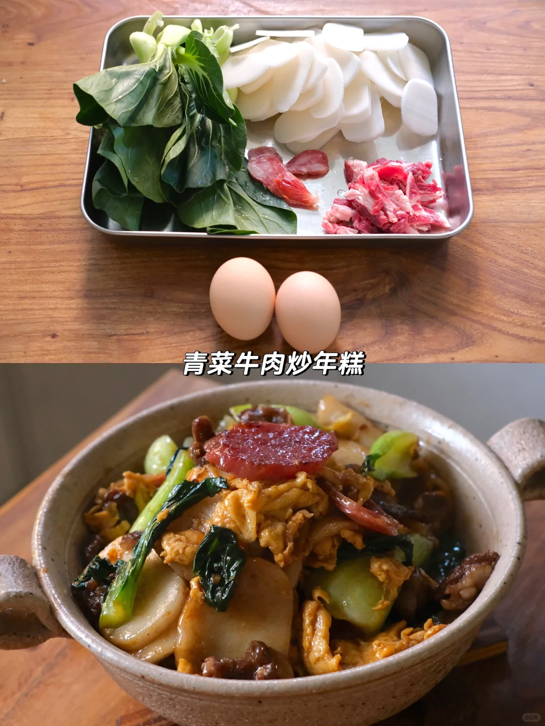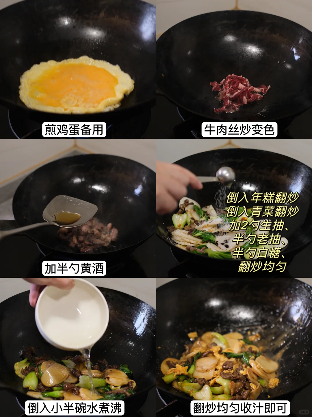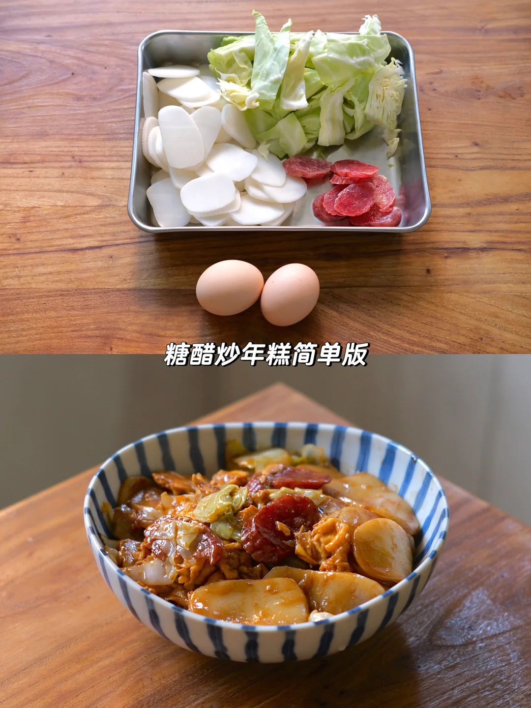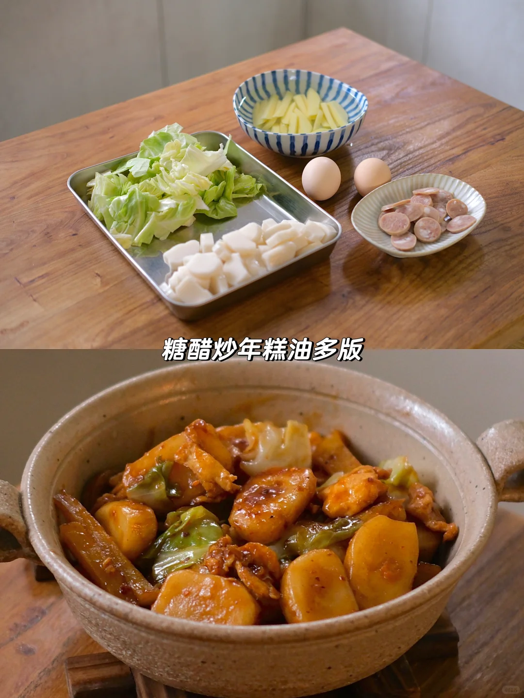 糖醋炒年糕简单版和相对复杂版 青菜牛肉炒年糕 辣炒年糕 做法分享在图片上咯