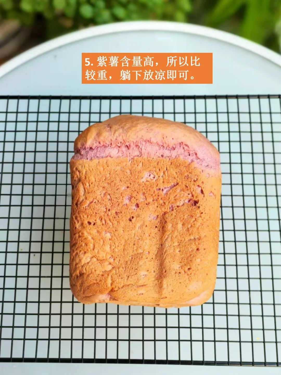 [二R]这个紫薯面包比较重,烘烤结束后,因为比较软,站不住的话可以横放,等凉了后就定型了。