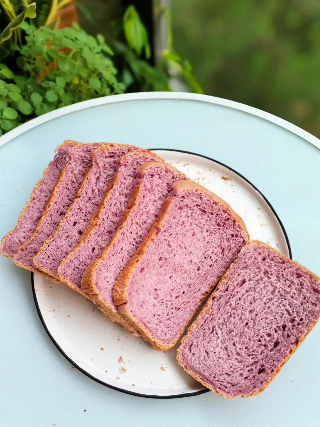 鲜紫薯的含量比较高,占了面粉含量的60%,不仅有梦幻般的紫色,也是一款名副其实的高含量的杂粮吐司了,满满的花青素,非常的健康。