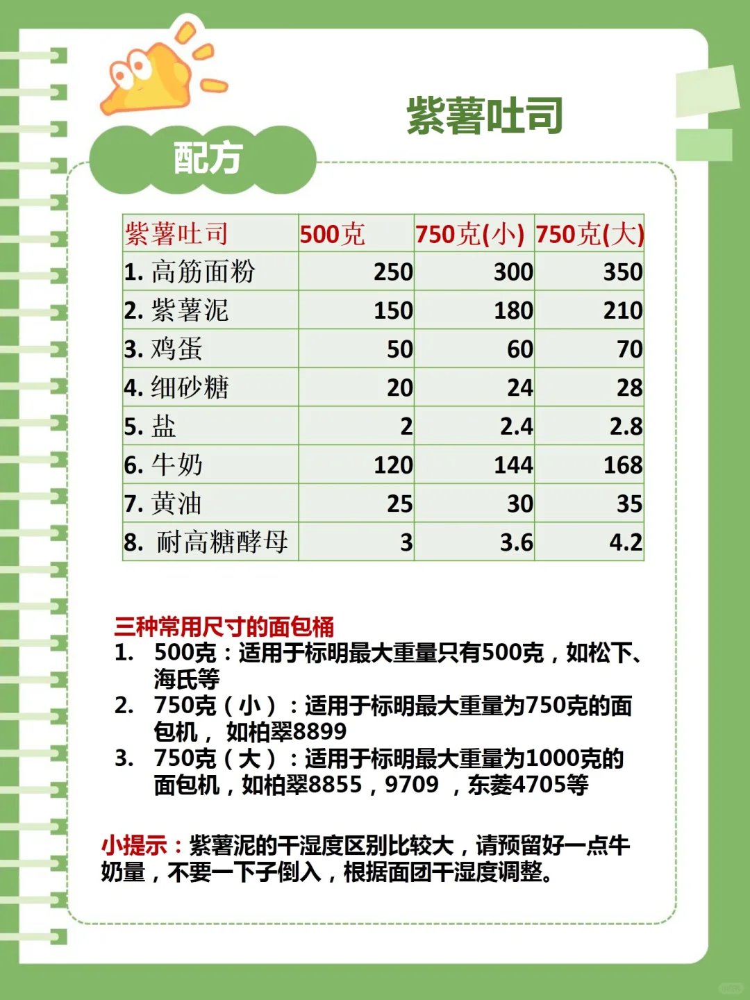 各种面包机都可以做,各种大小的面包桶的配方如图所示。