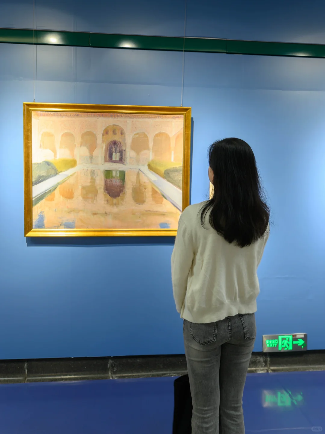 我对瓦伦西亚美术博物馆很感兴趣,里面还有座以蓝色为主色调的修道院,下次去西班牙旅行一定要去看看。这次的展出中,还看到了我去过的阿尔罕布拉宫,又牵起了我的回忆。我已经计划好了,第二次的西班牙之旅就走艺术路线,要去马德里索罗亚故居博物馆和瓦伦西亚美术博物馆看看艺术家的真品。