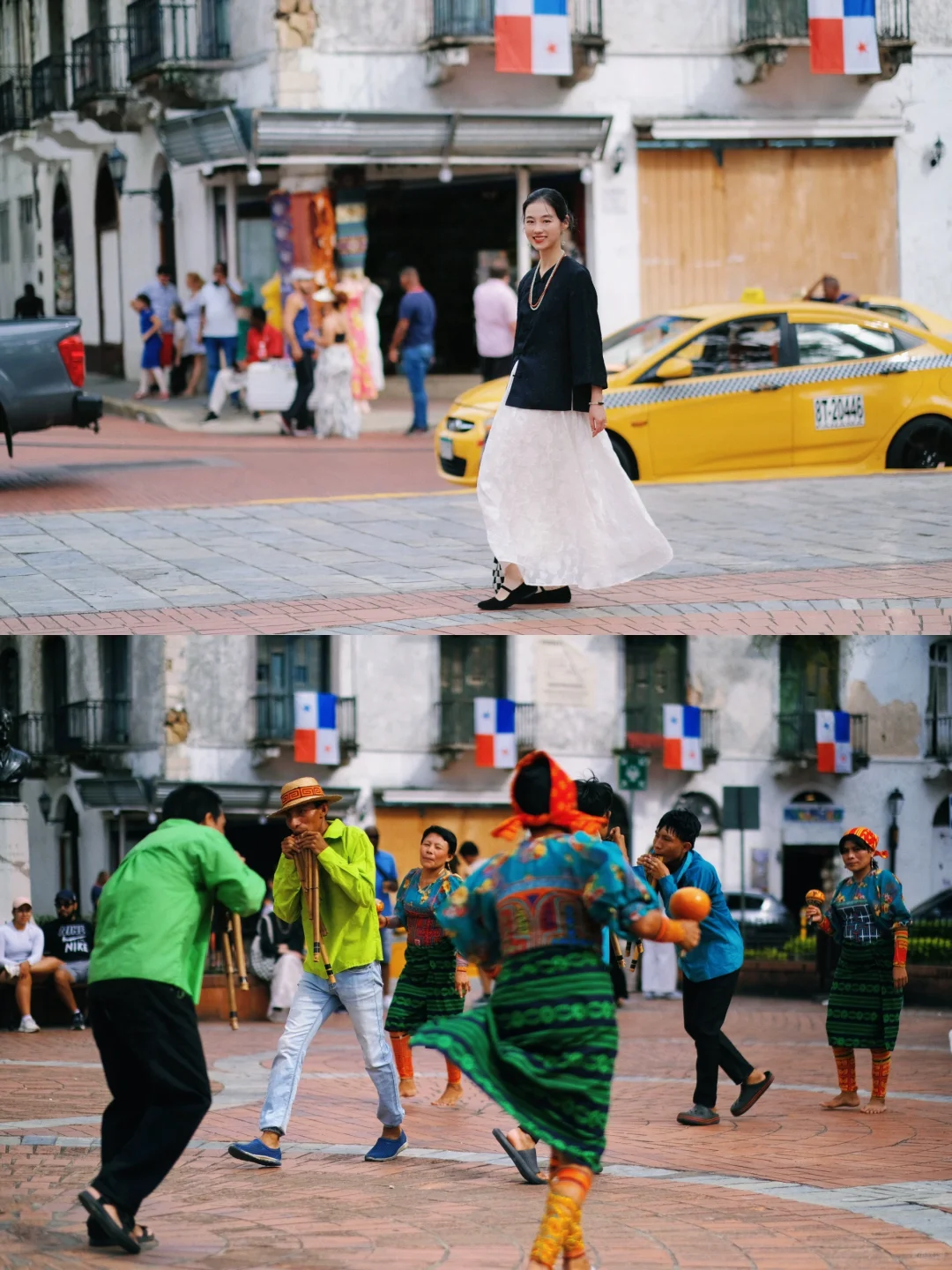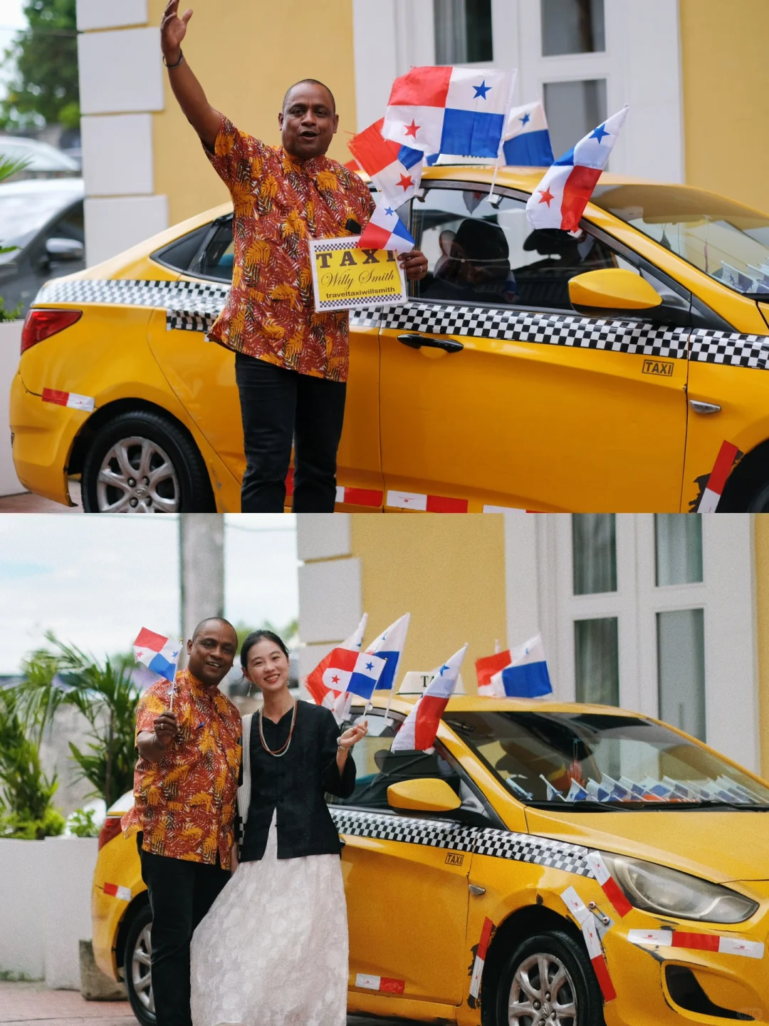 ▪️偷偷摸摸和计程车合影,司机回来,想溜,司机连连摆手,“nononono,你继续!”他钻进车里拿了写着自己名字的牌子,送给我们两枚🇵🇦国旗,说,“今天是节日,要跳舞,要庆祝!”