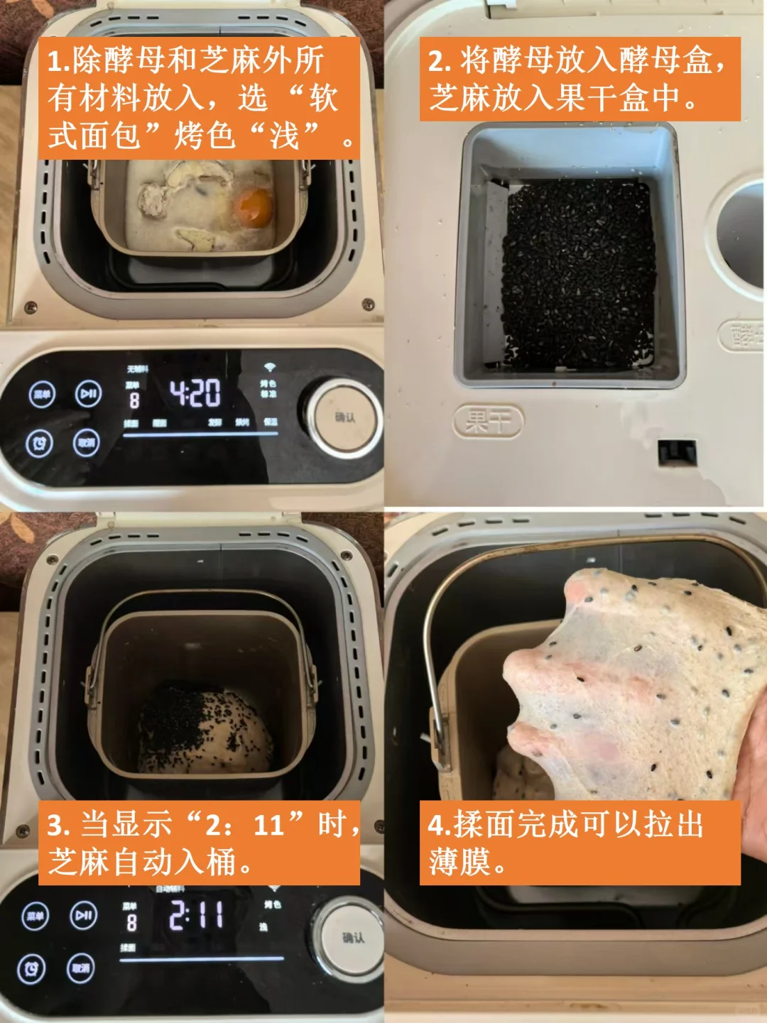 [庆祝R]这是一款低油低糖的健康吐司,适合减脂和讲究健康饮食的姐妹们,做出来的面包不仅柔软,而且有浓浓的麦香和芝麻香。可以用面包机一键直出,容易爆顶,新手小白或者偷懒的姐妹可以放心做。
