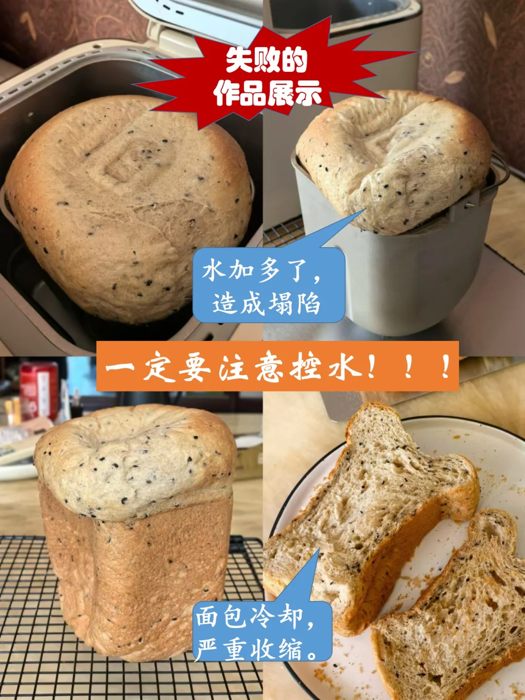 采用一键式菜单虽然简单,但也很容易翻车,最后一张照片是我试验这个配方时的翻车现场,给大家看一下,任何一个配方都是在失败的基础上得来的,而给你看的都是失败的孩子们——叫“成功”!