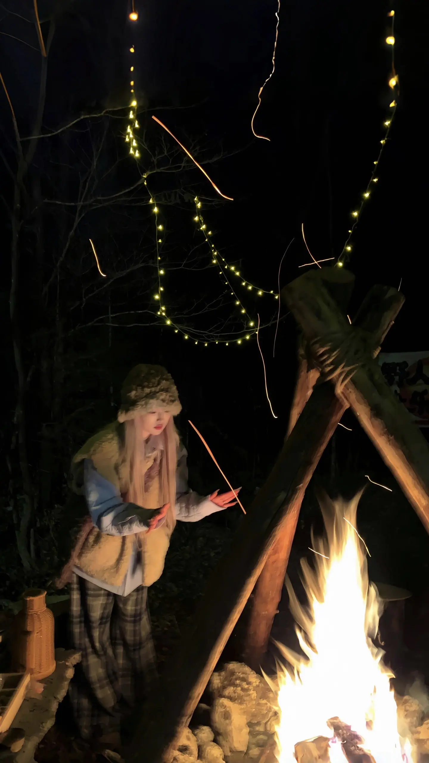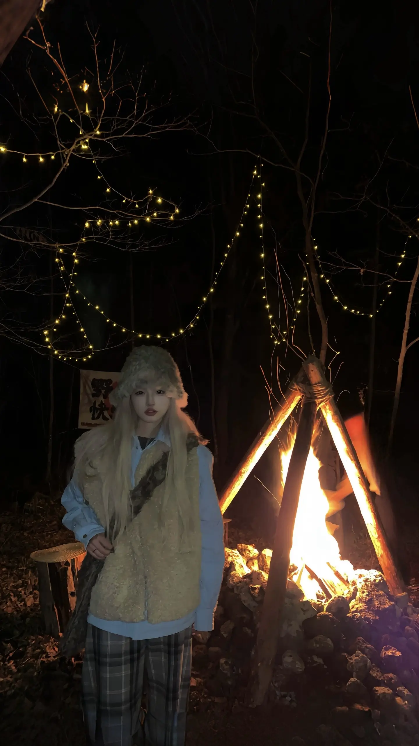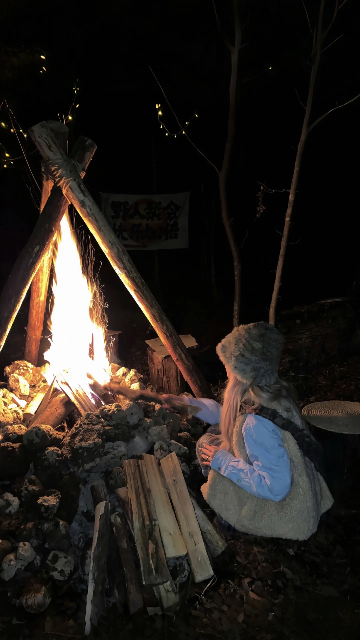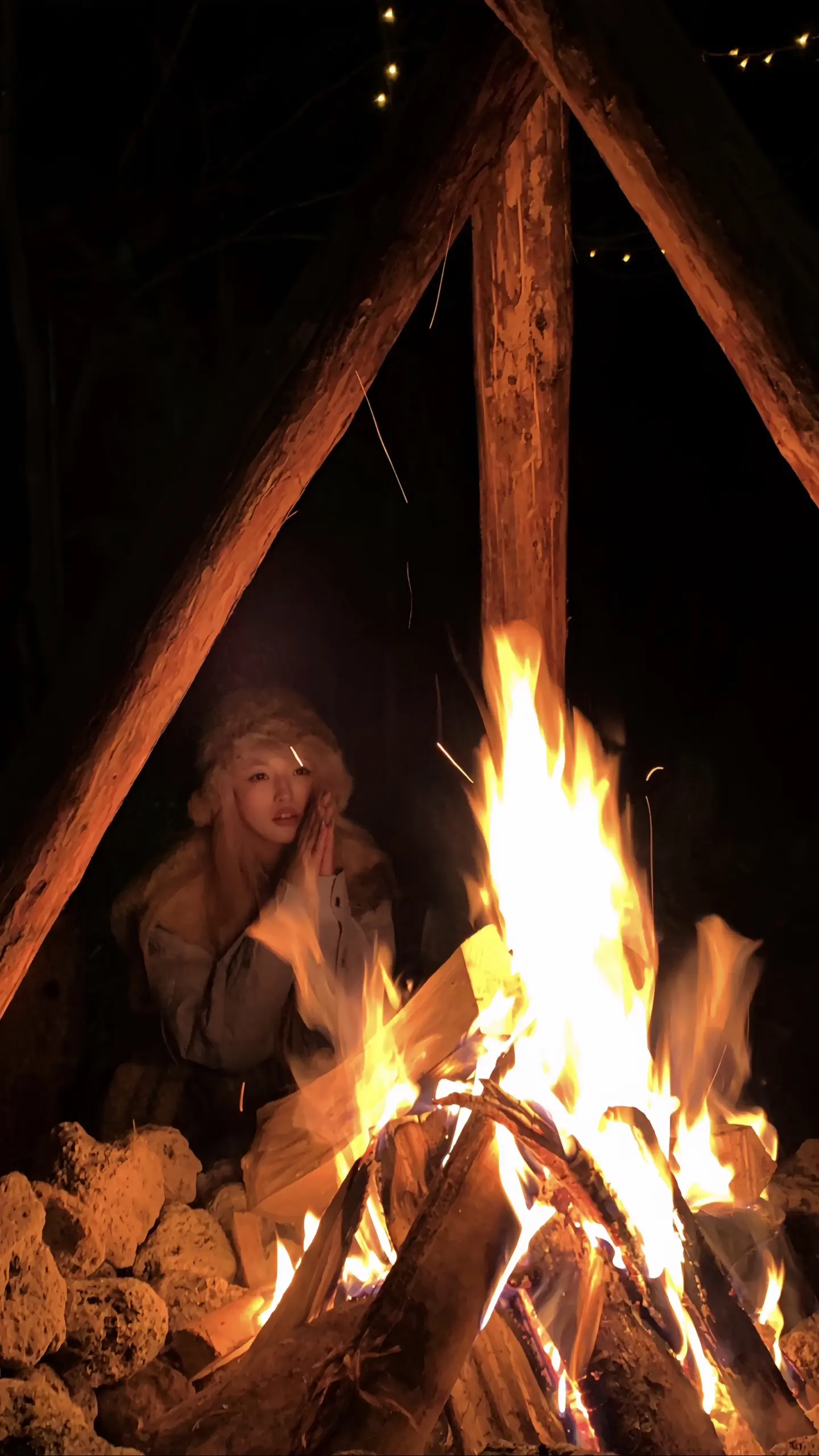 我们在篝火旁许愿 爱的人常伴身边。
