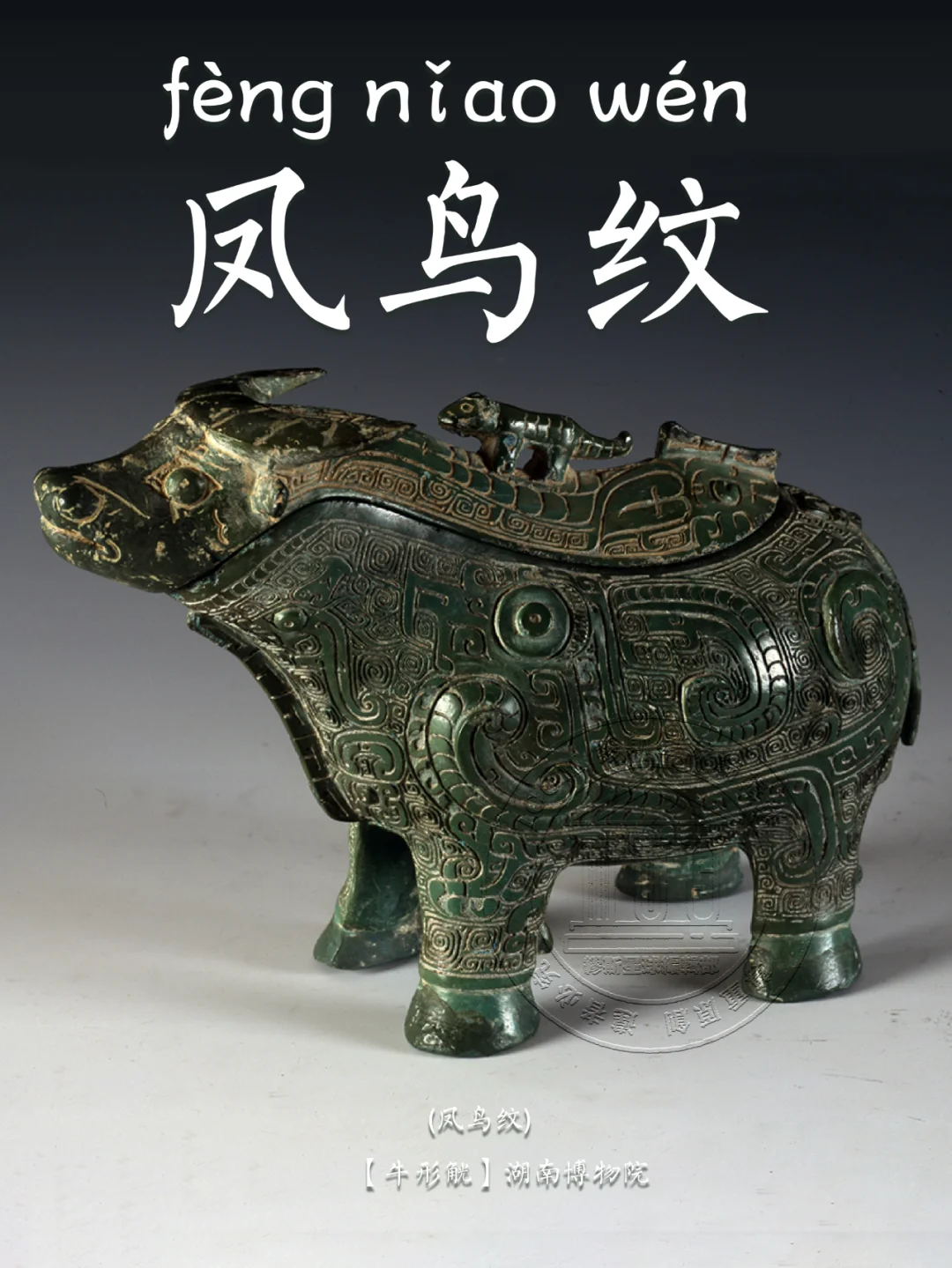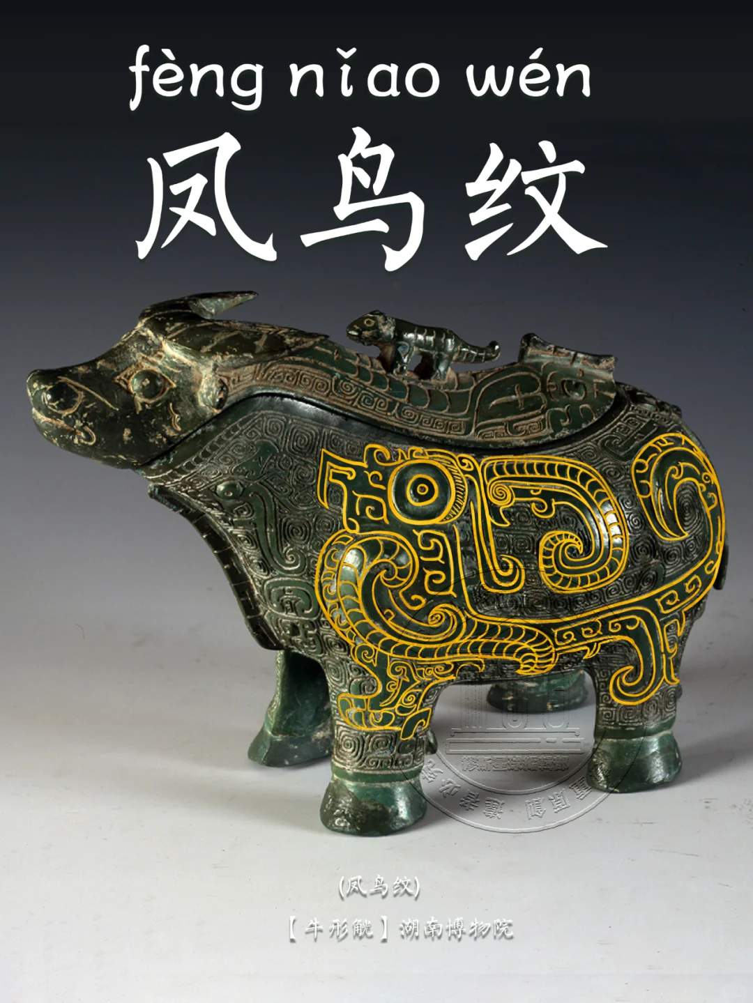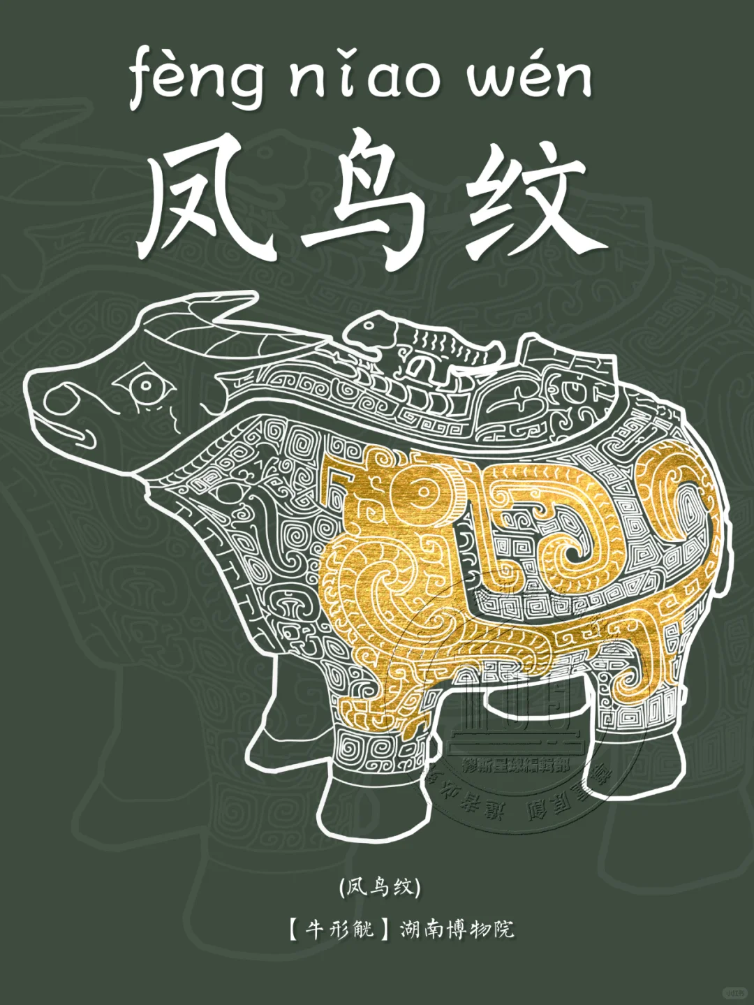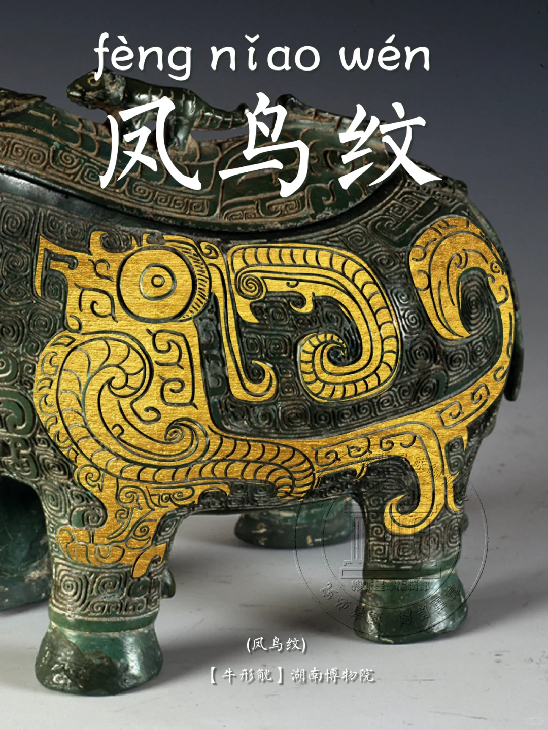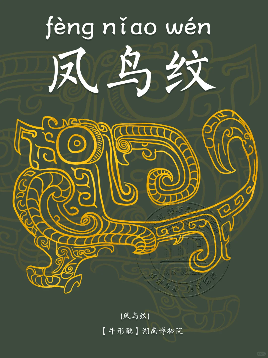 🖋️ 凤鸟纹: 古代青铜器纹饰之一。凤,在神话传说中,为群鸟之长,飞时百鸟随之,尊为百鸟之王,在古人的心中是吉祥之鸟。