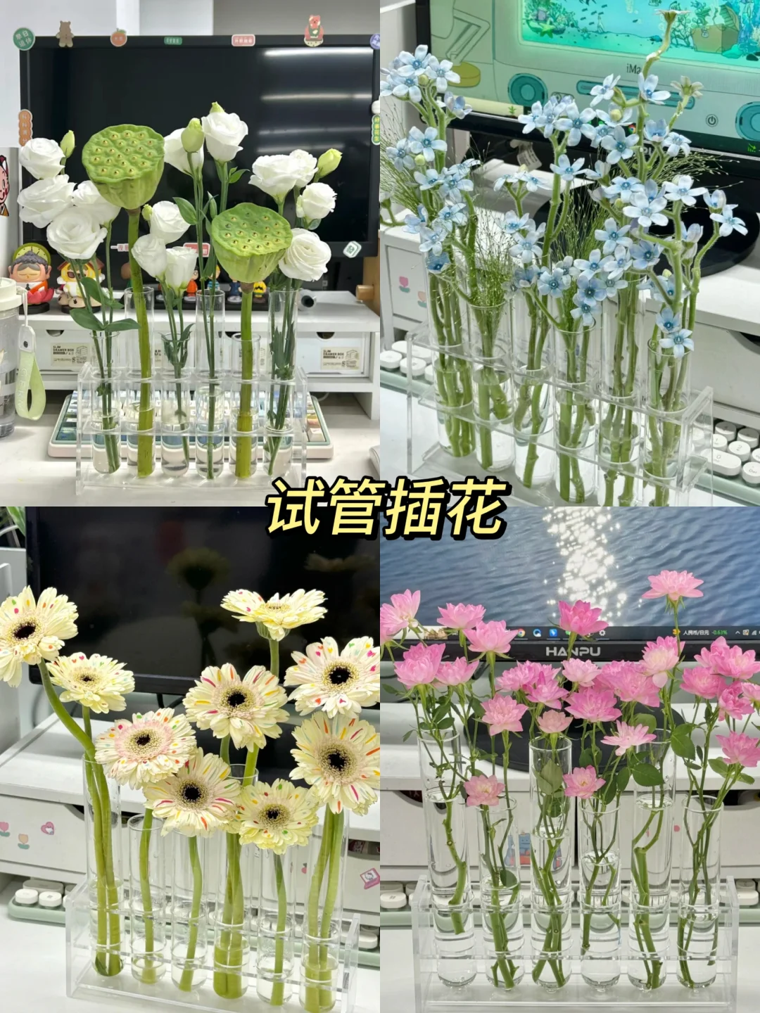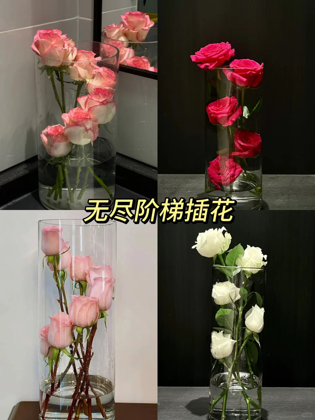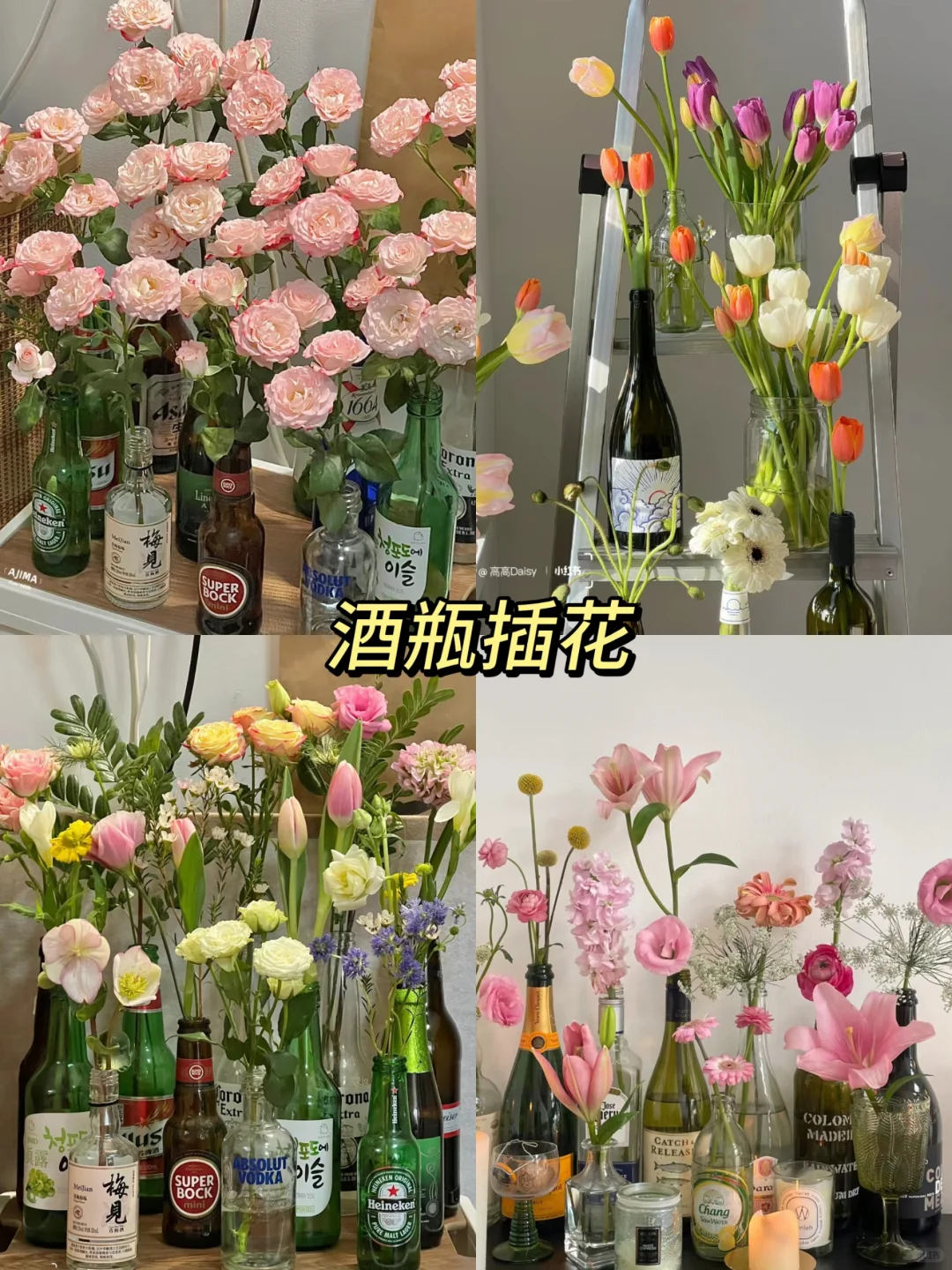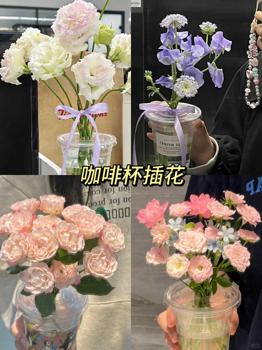 🍾酒瓶养花 非常适合用来插多头玫瑰或者要用浅水养的花花,可以营造超强氛围感。既可以复古又可以ins — ☕咖啡杯 透明的咖啡塑料杯养花也超好看!而且成本低,各种大小高度都能照顾到 — 🌷无尽阶梯插花 今年超火的一种瓶插花,看着就像旋转阶梯一样 — 🌼试管插花 就像是在研究浪漫的实验!!这样养花很有氛围感