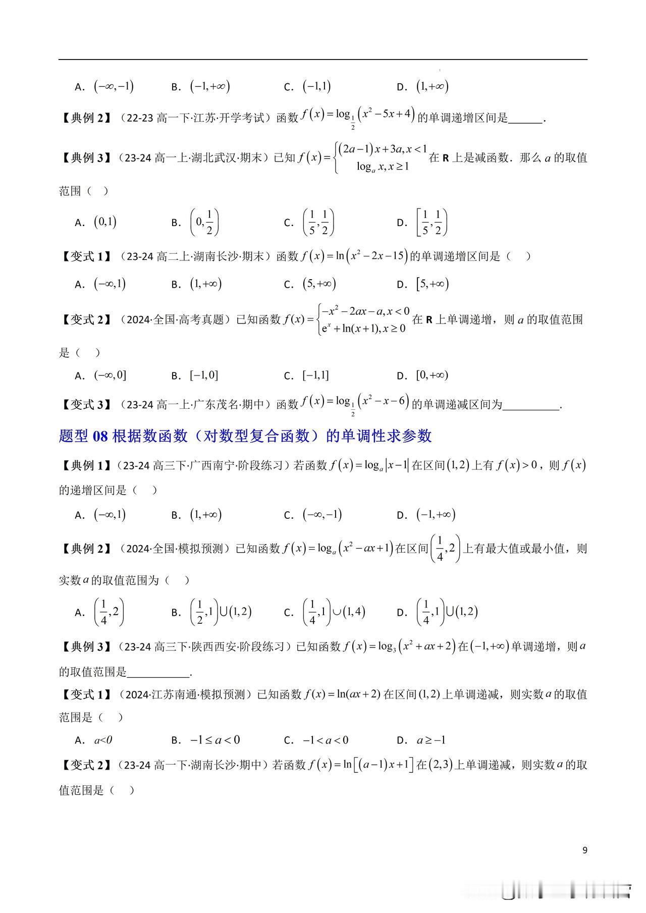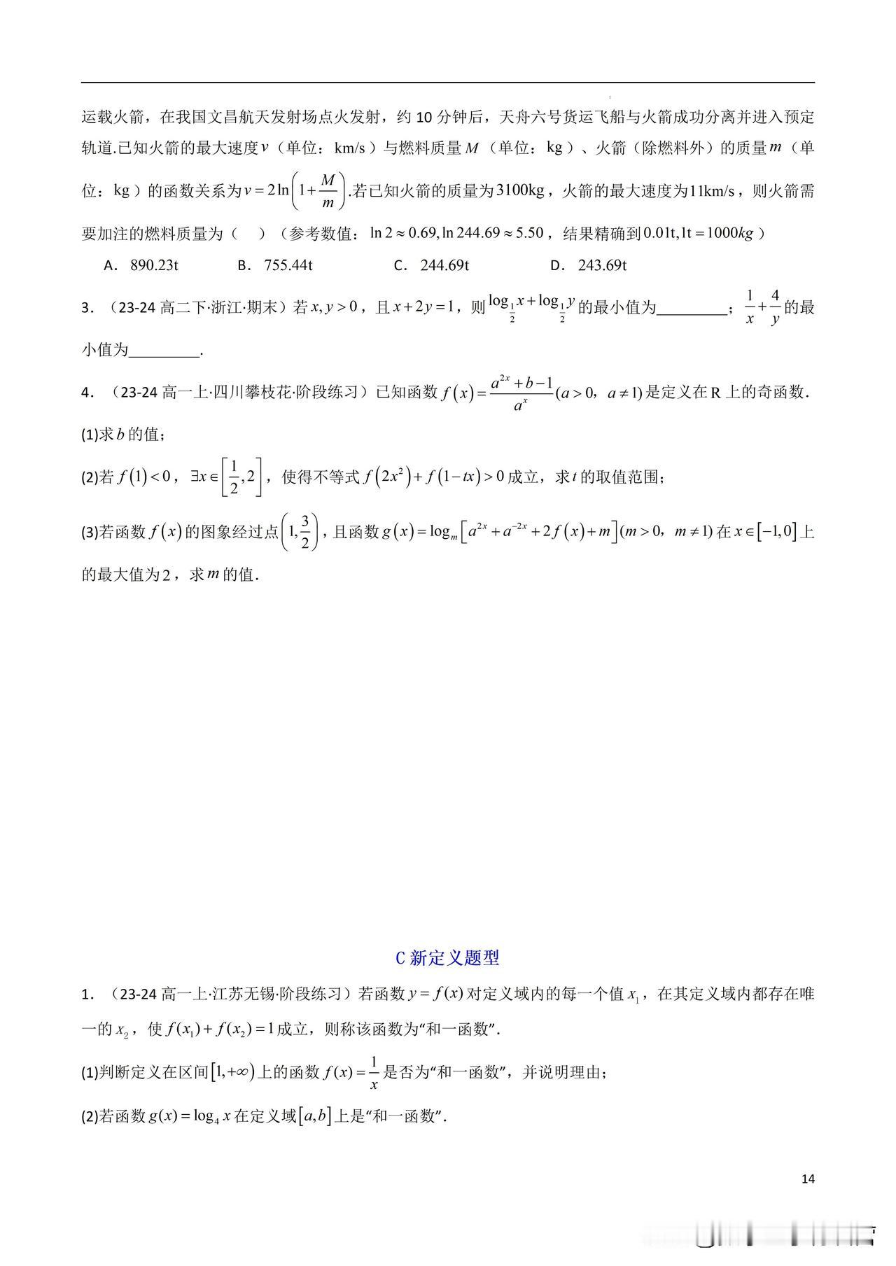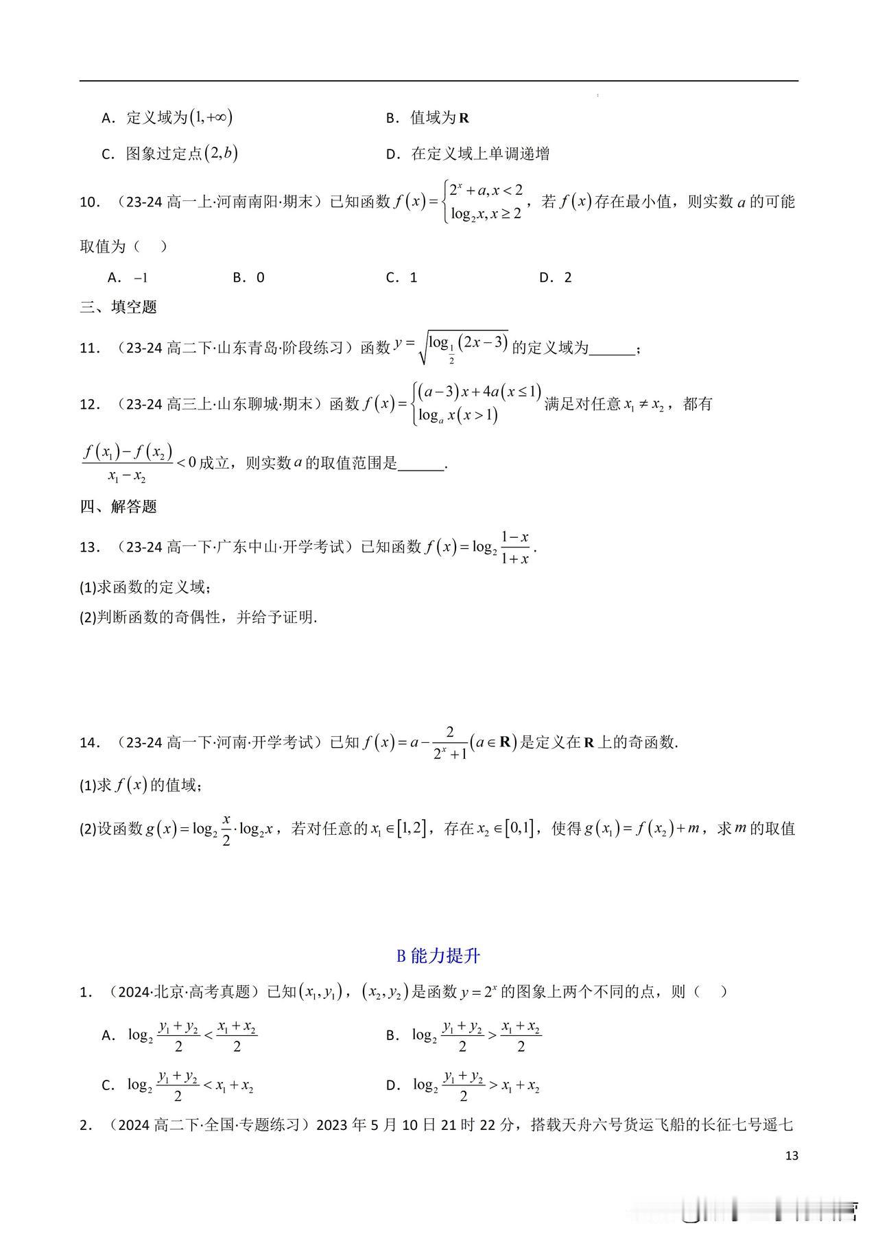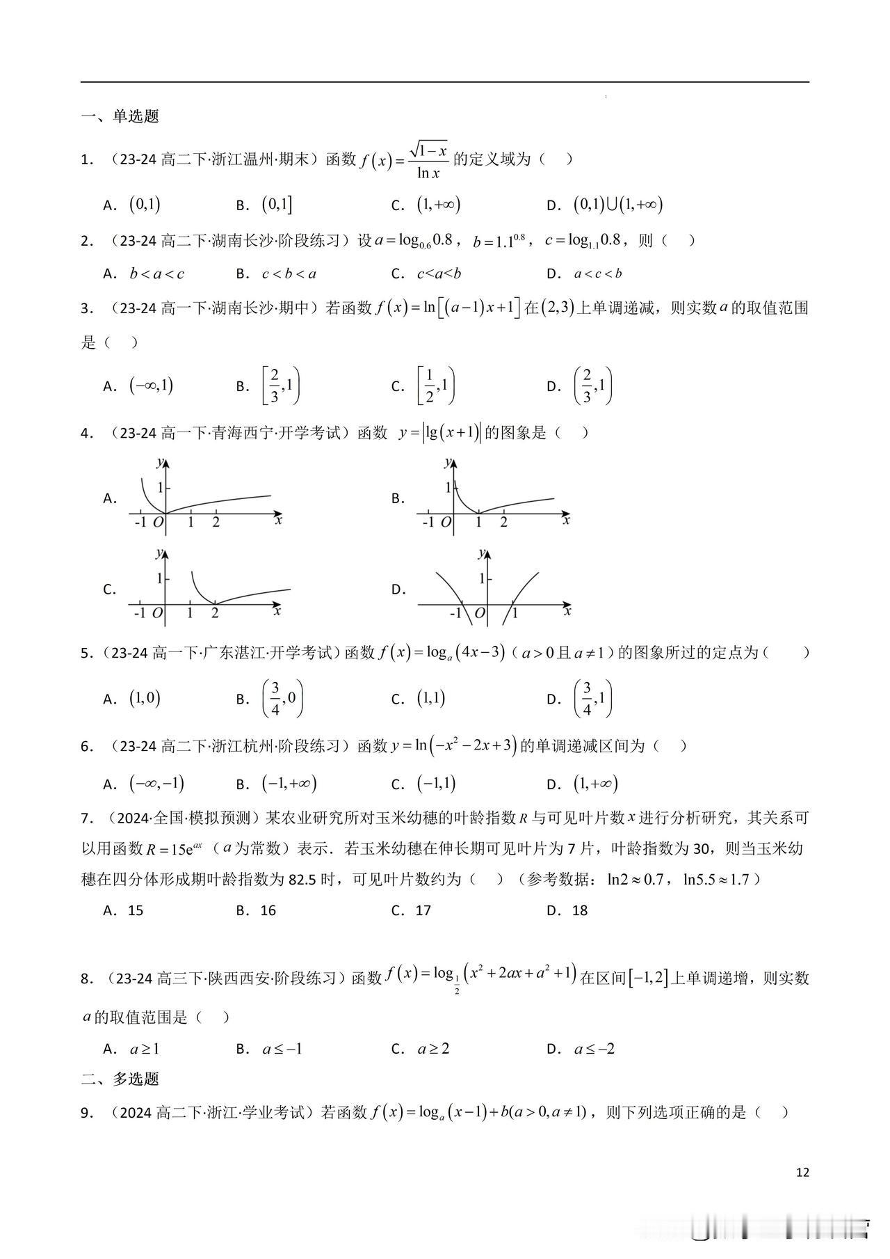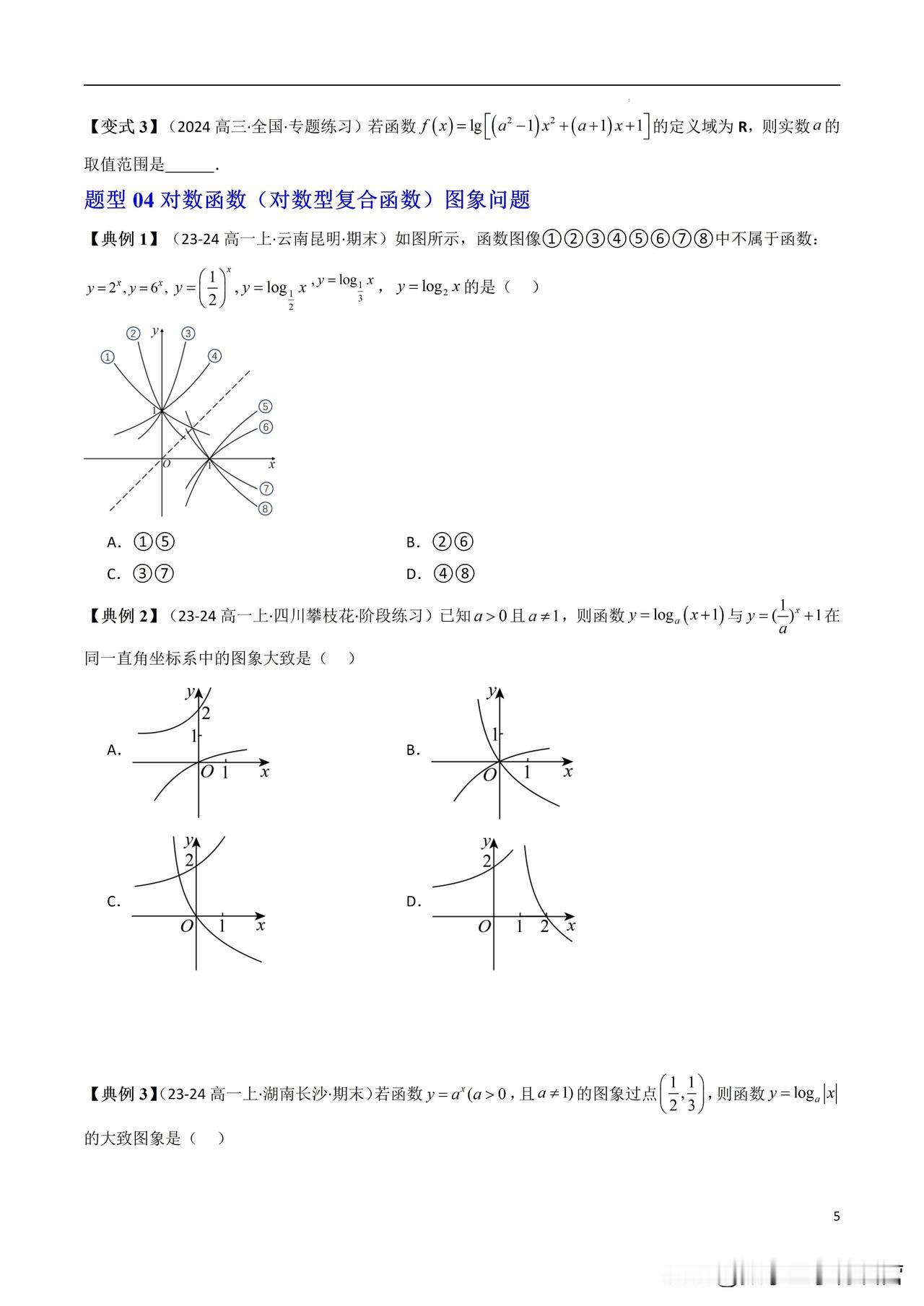 高一数学对数函数 ①理解对数函数的概念及条件,掌握对数函数的图象与性质。 ②会利用对数函数的性质解决与对数函数有关的函数的定义域、值域、单调性、大小比较、对数方程与不等式等相关问题。 题型01判断函数是否为对数函数 题型02求对数函数解析式 题型03对数(对数型复合函数)函数定义域 题型04对数函数(对数型复合函数)图象问题 题型05求对数函数(对数型复合函数)的值域 题型06根据对数函数(对数型复合函数)的值域求参数 题型07对数函数(对数型复合函数)的单调性 题型08根据数函数(对数型复合函数)的单调性求参数 题型09比较大小问题 题型10对数函数综合问题