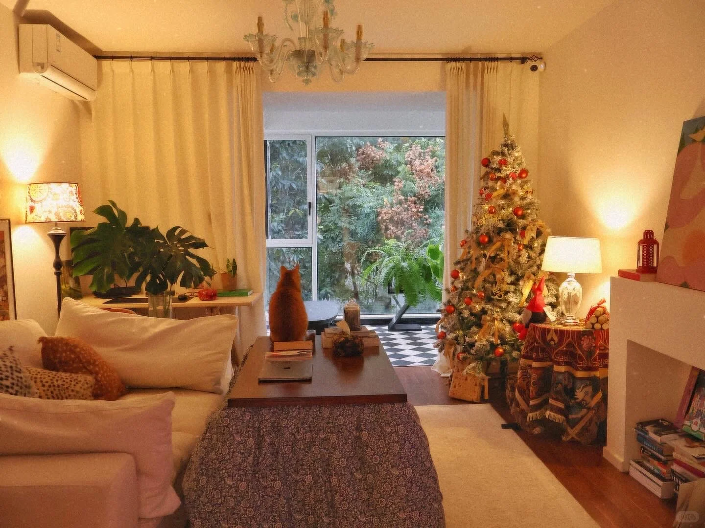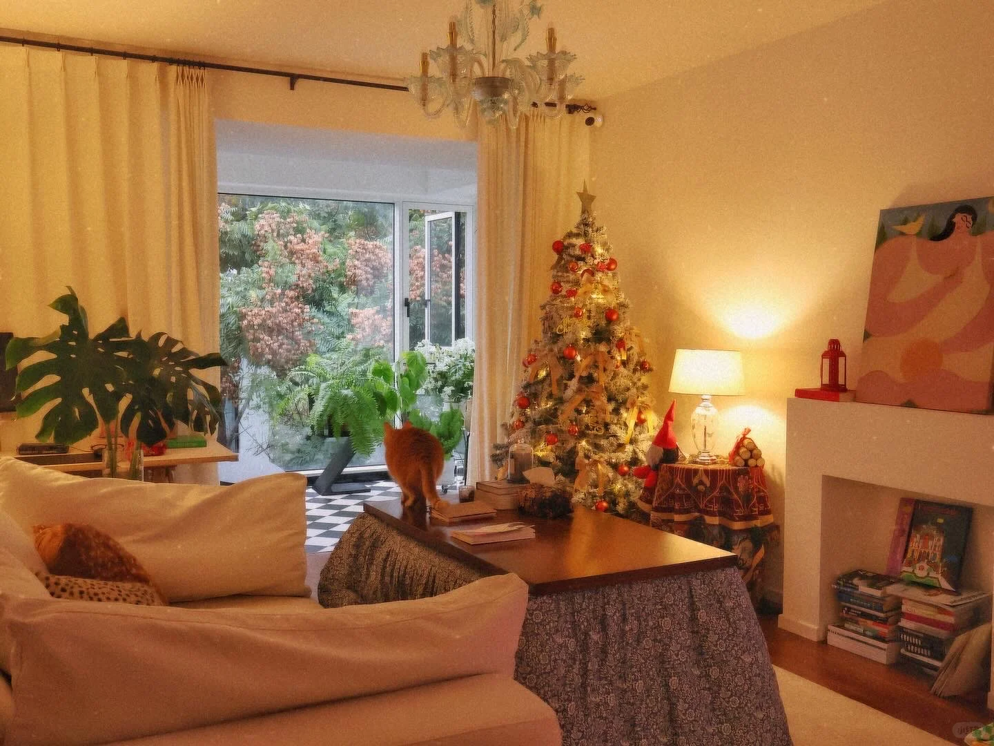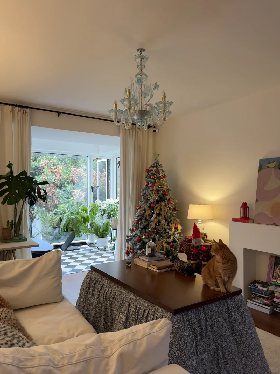 城市一键入冬 重新布置了一下客厅 心急的人先过节~给圣诞树挪了个新位置 迅速搬出了烤火桌 和猫猫一起缩在烤桌里出不来了 期待今年雪季🎄 客厅20个平方 没有任何定制柜 只有一个简约的装饰壁炉 其他家具围绕着这个中心点随时可灵活调整 搭配着可移动电视 常挪常新 自由度超高的客厅 最近收拾收拾准备可以一镜到底啦