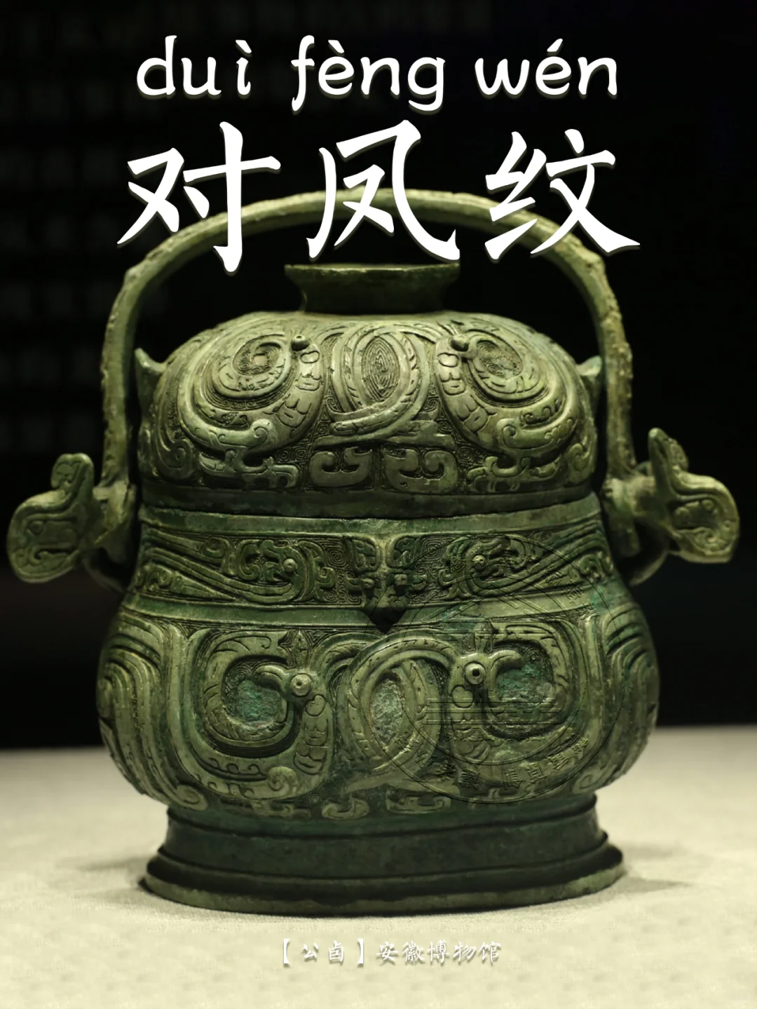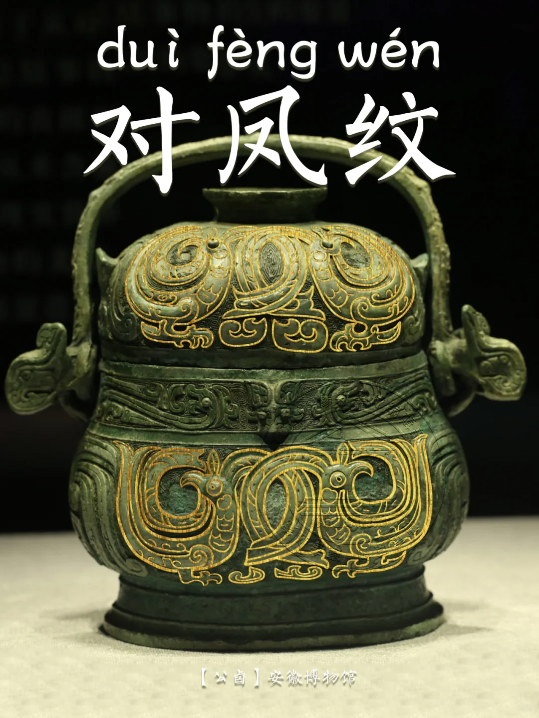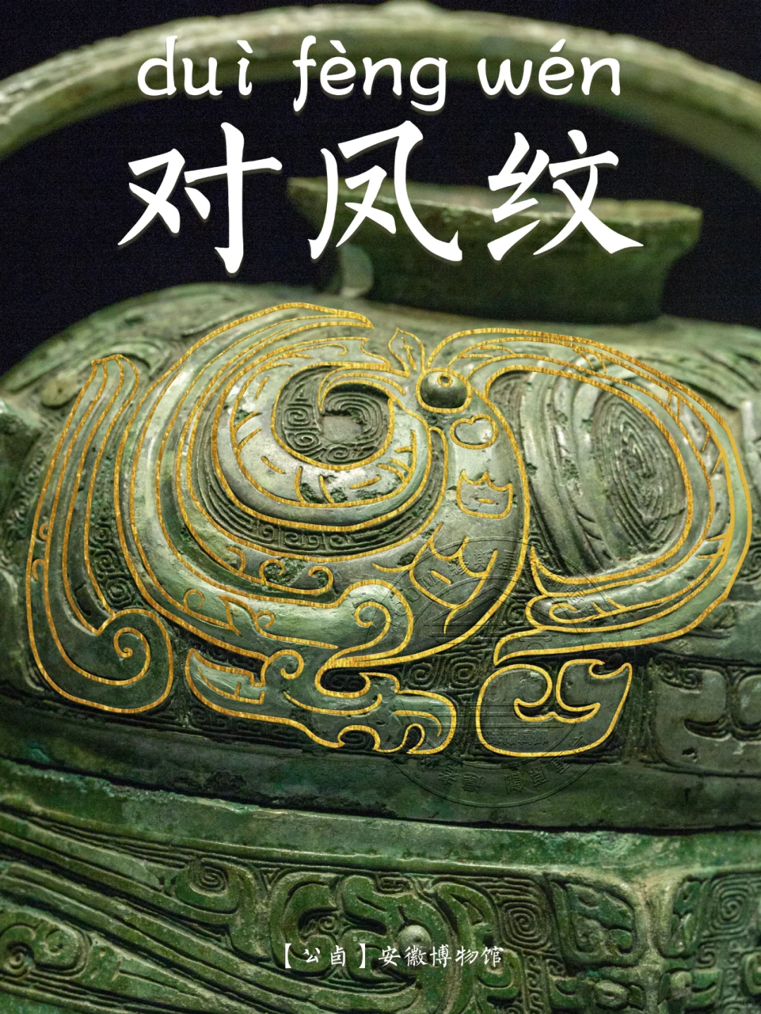 🖋️ 凤鸟纹: 古代青铜器纹饰之一。凤,在神话传说中,为群鸟之长,飞时百鸟随之,尊为百鸟之王,在古人的心中是吉祥之鸟。
