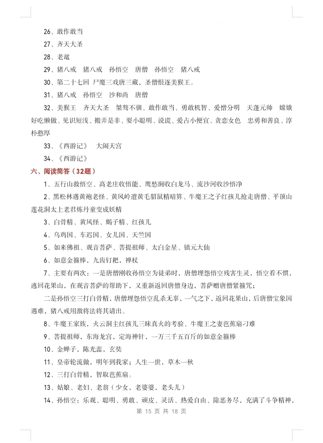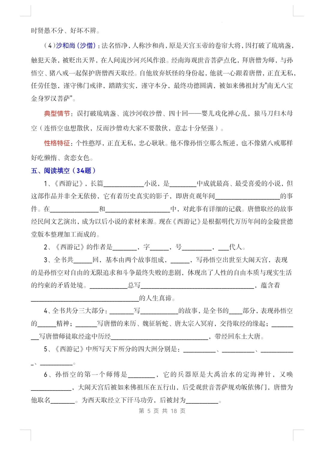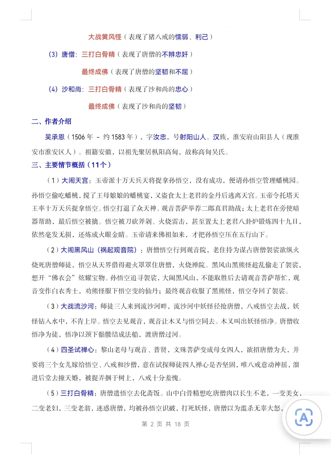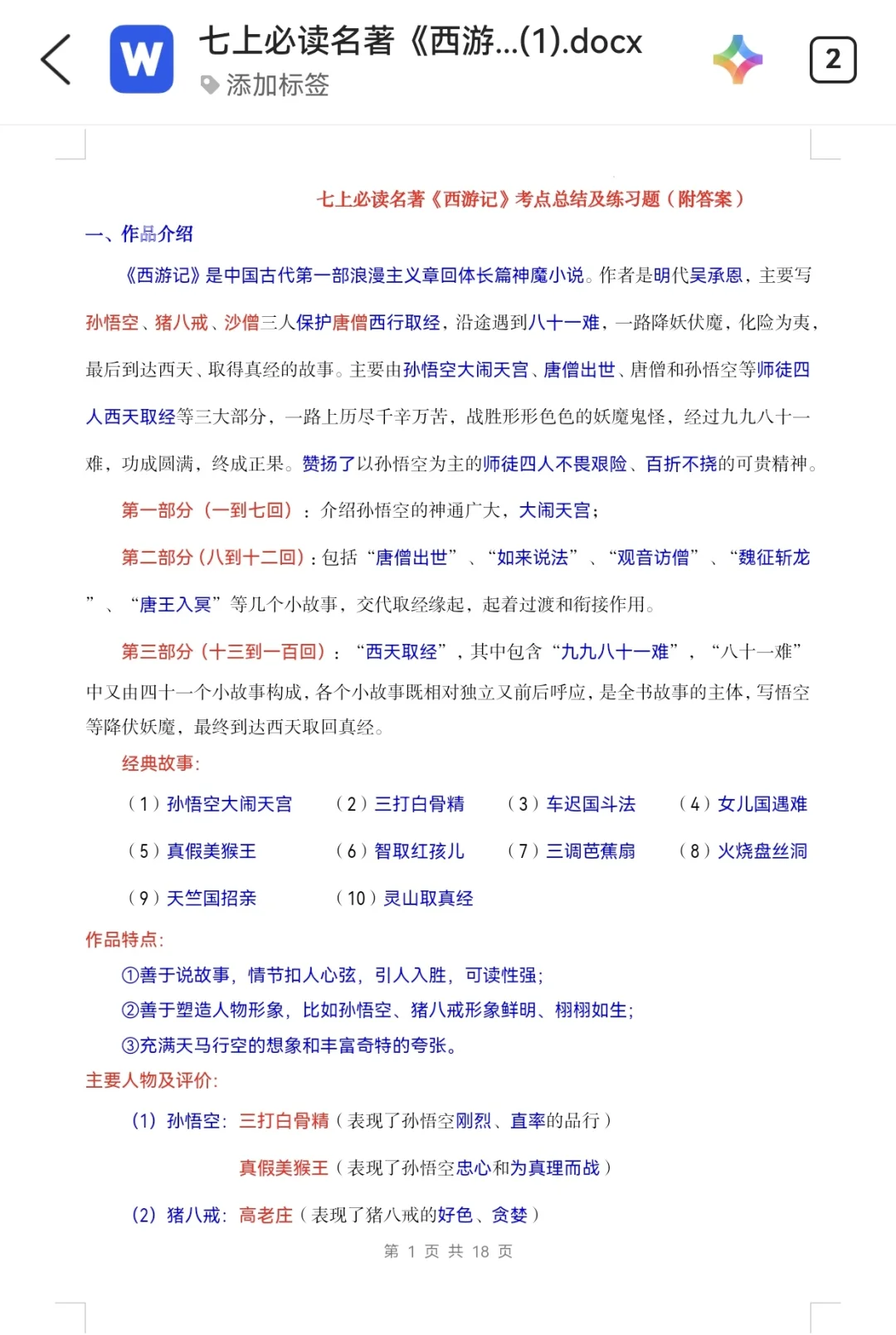 七上语文|名著阅读《西游记》知识点及练习1