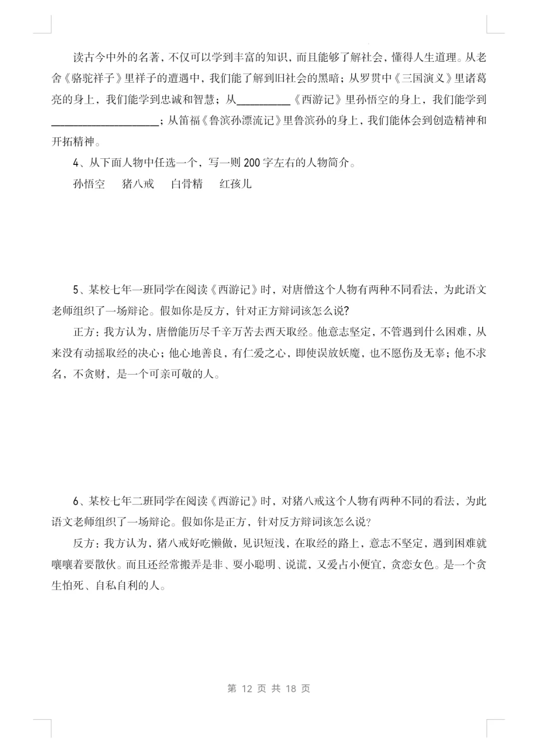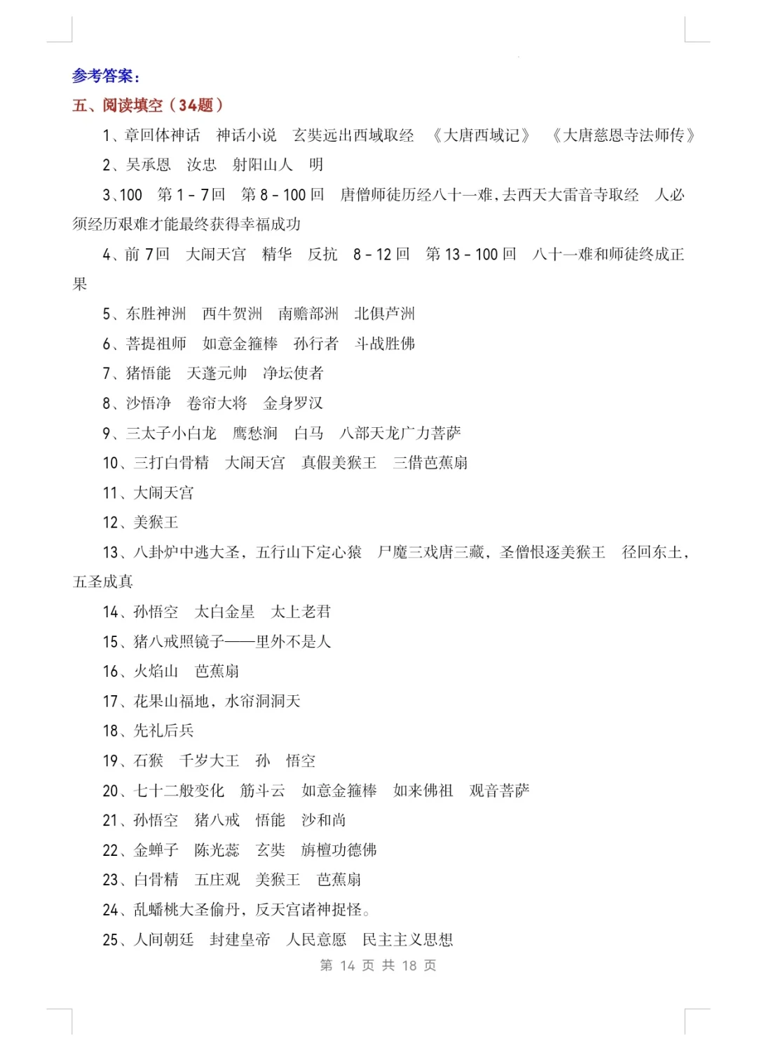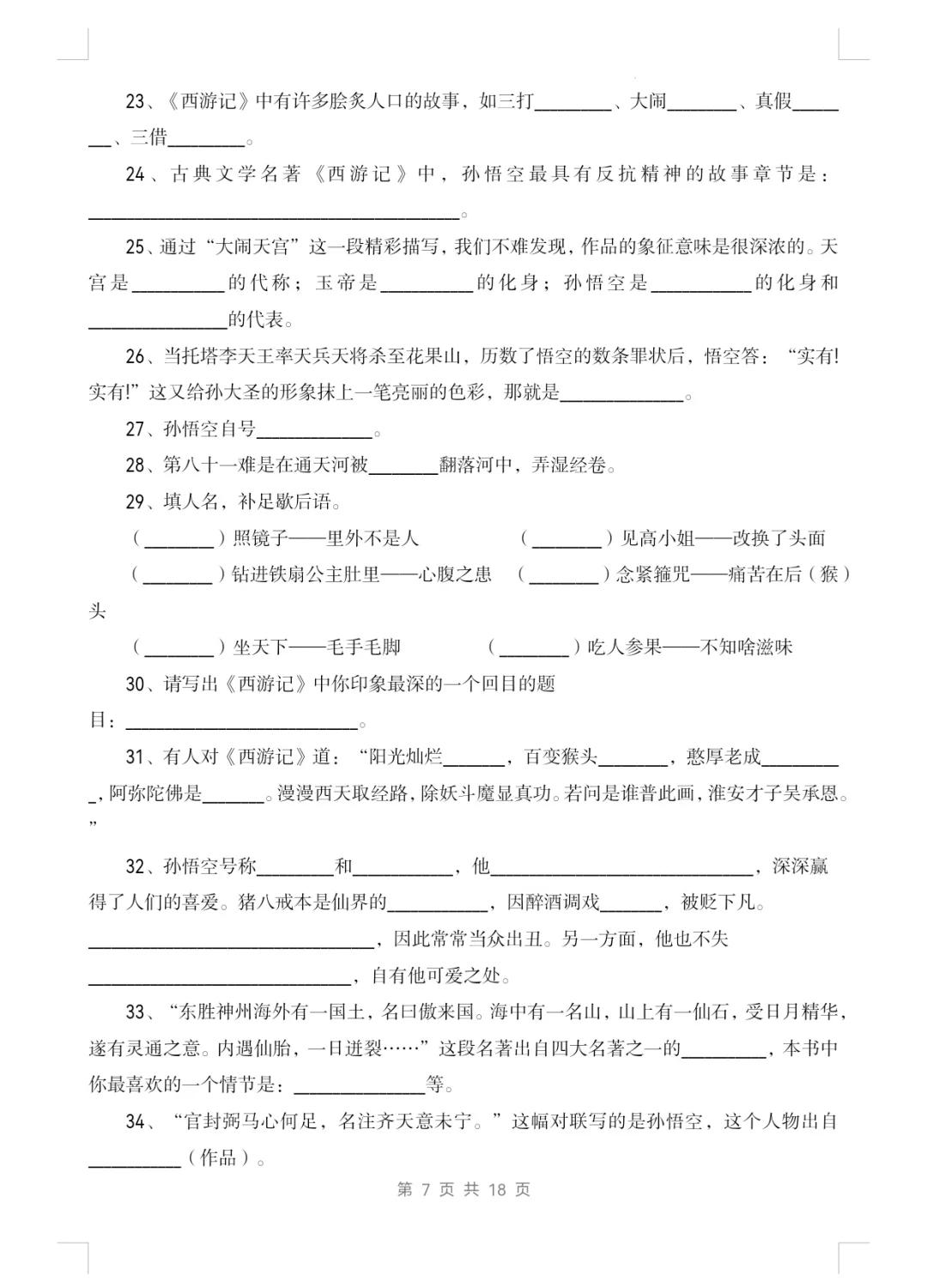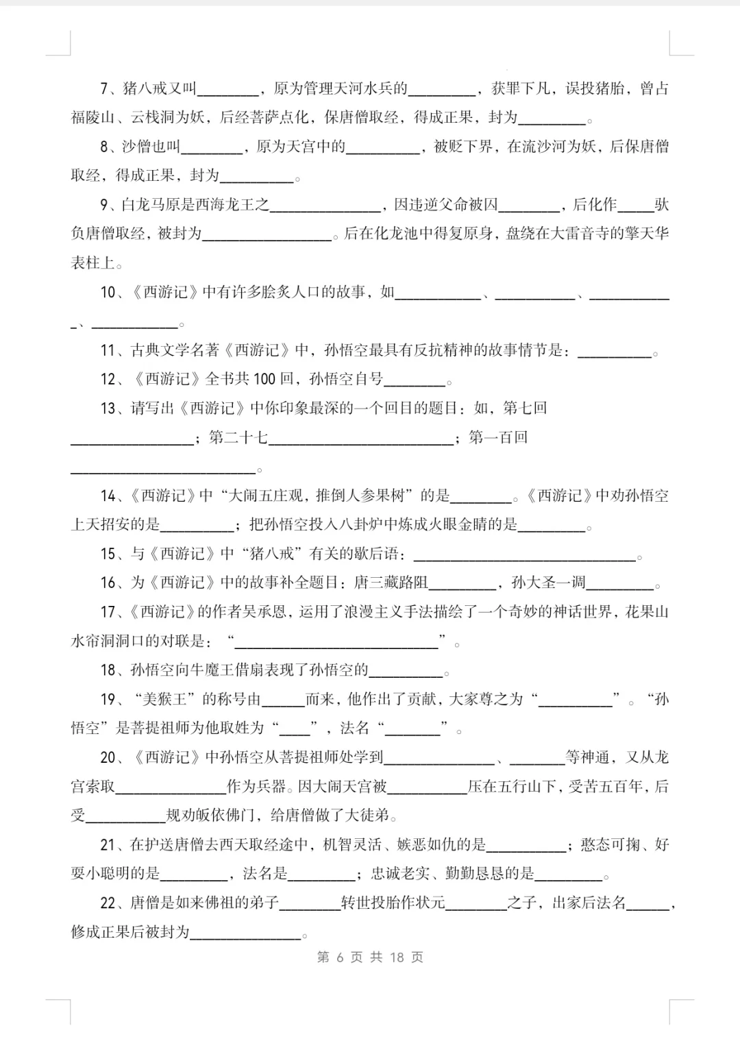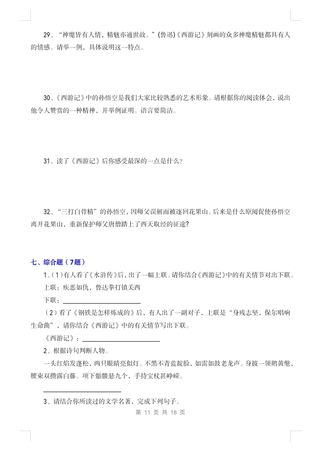 七上语文|名著阅读《西游记》知识点及练习1