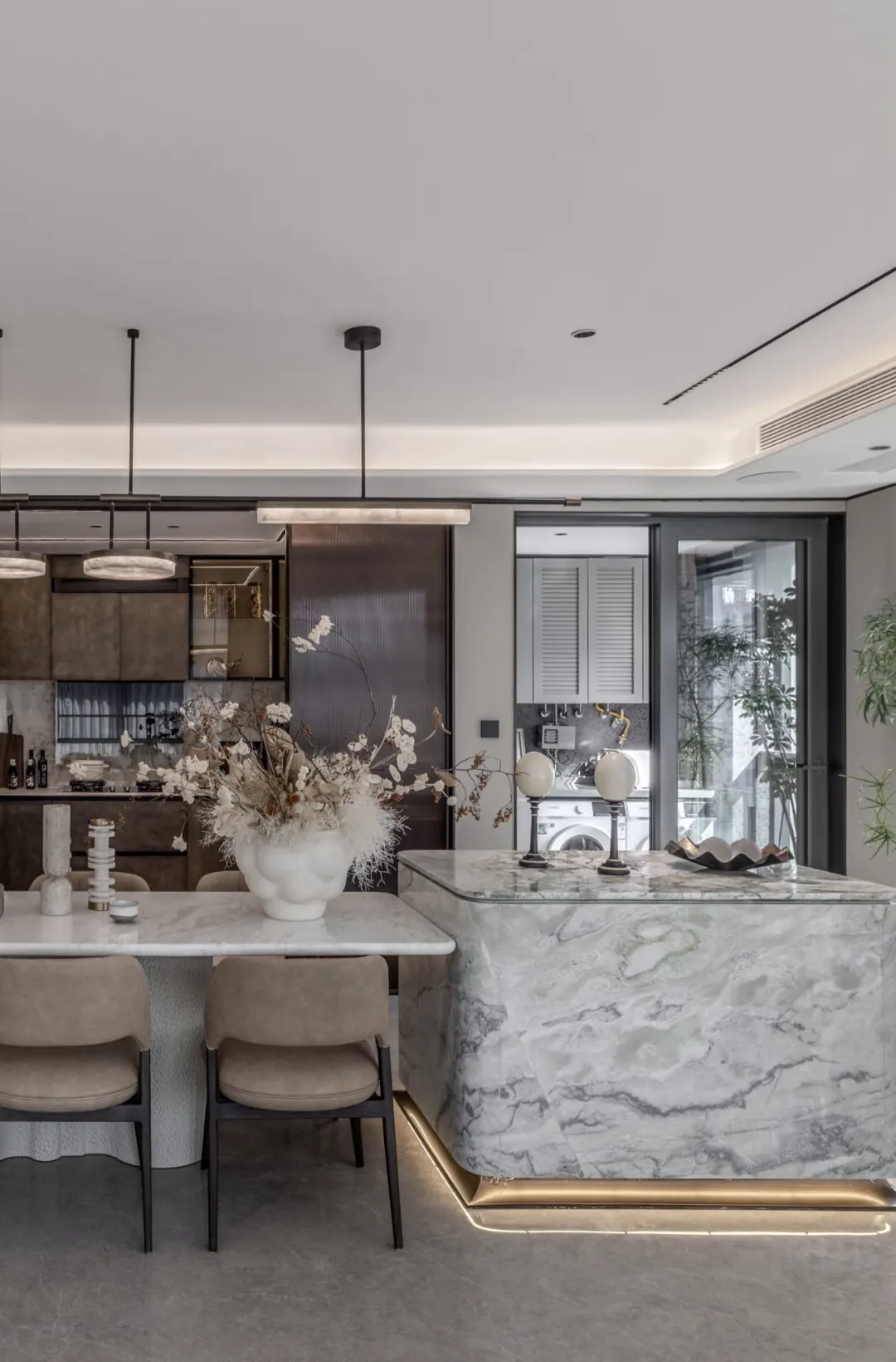 - 装修风格与材料:阅天府的7K装标中,全屋地面、墙面、台面大量使用了天然石材,这样的设计使得后期基本无需再做硬装改造