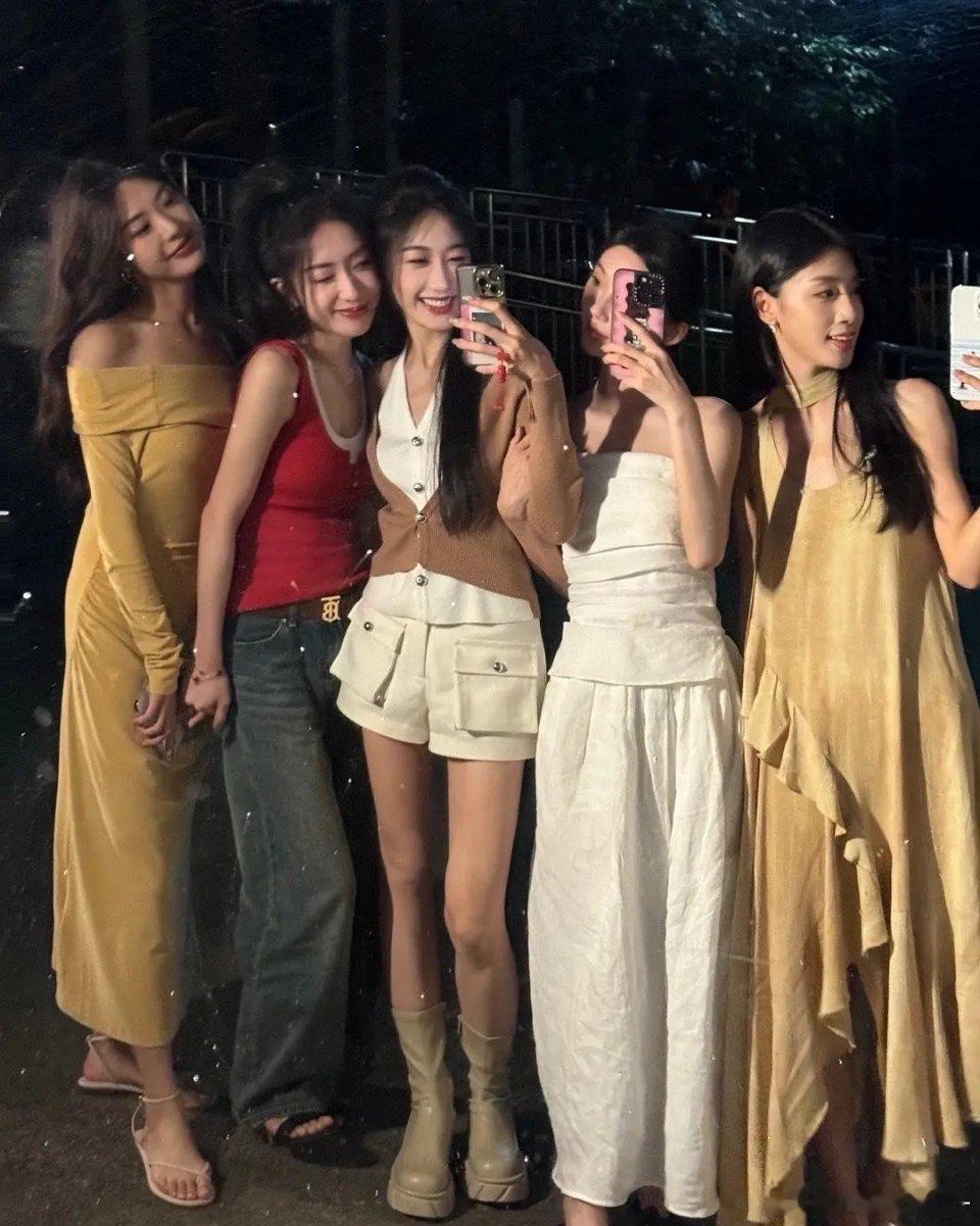 张天爱跟素人合影,胯真的好宽,大宅院似的