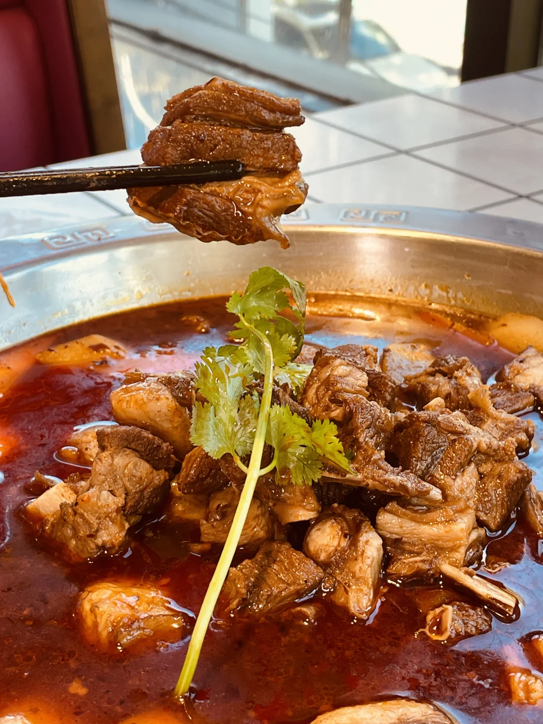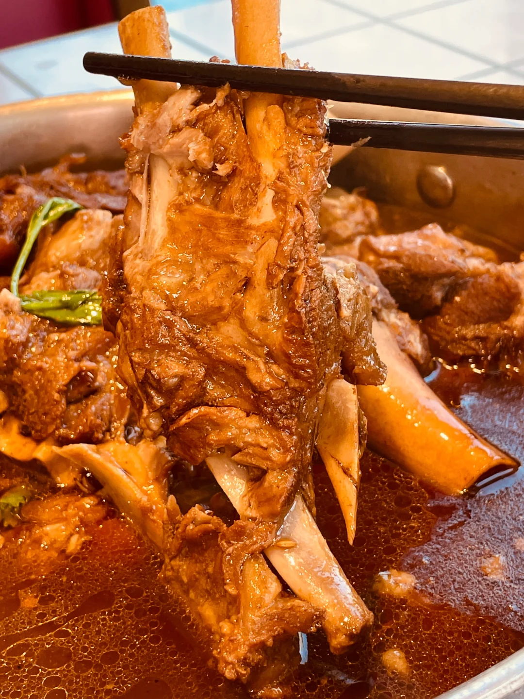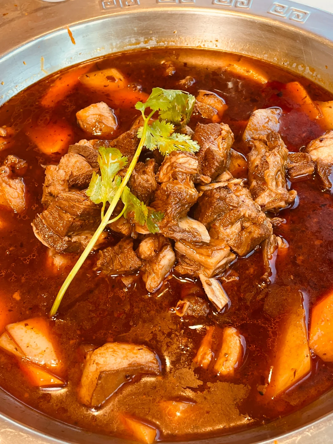一进店,就能闻到浓郁的羊肉香。他们家的招牌红焖羊肉简直绝了,🥩羊肉炖煮得超级软烂入味,每一口都饱含着醇厚的汤汁,鲜嫩多汁。锅底还搭配了二种大萝卜,太适合冬天❄️食用了,超滋补😍