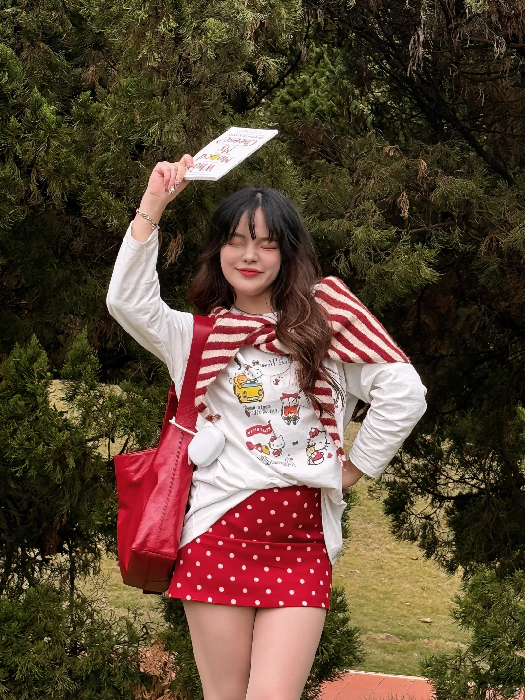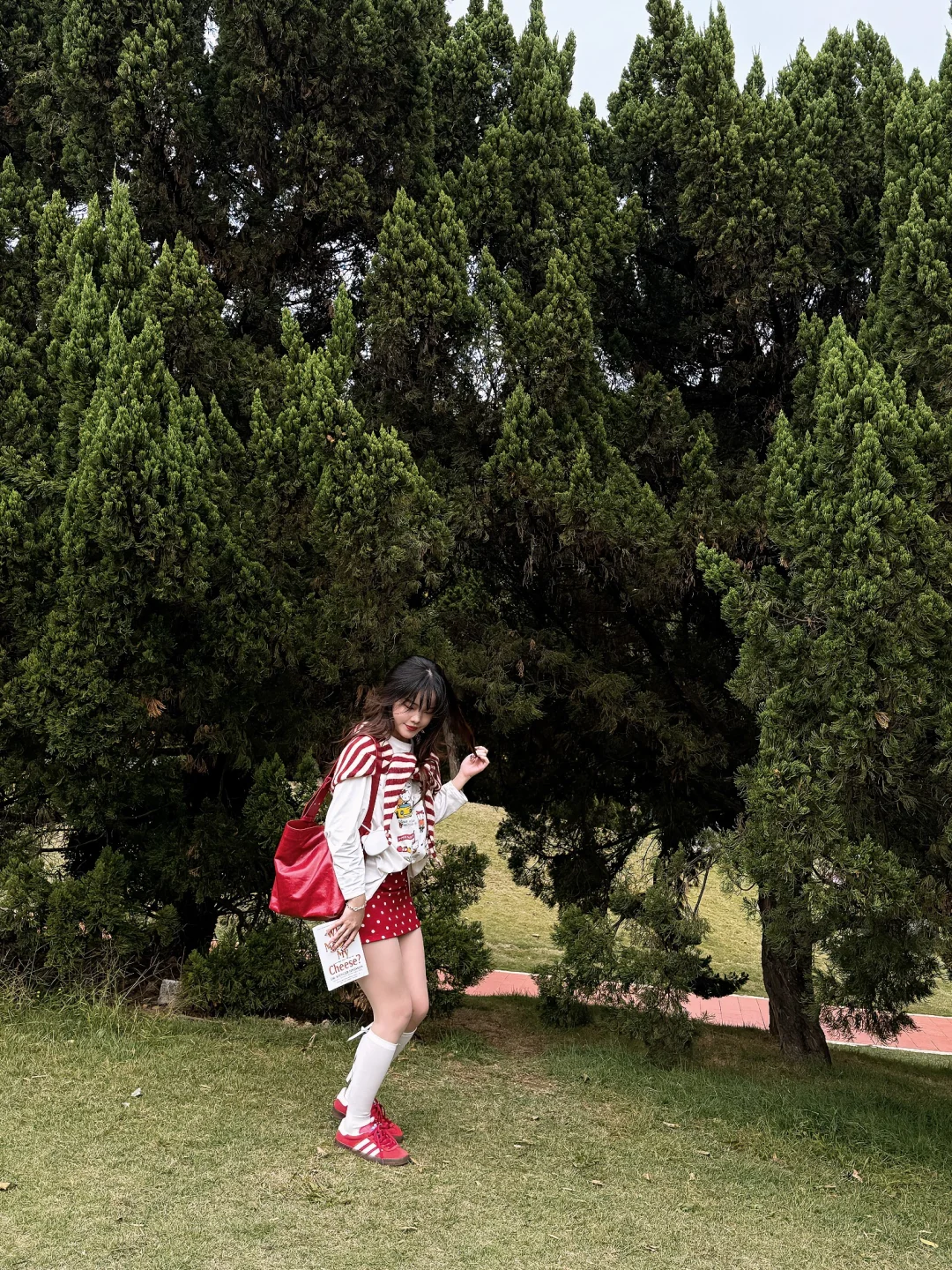 预制圣诞🎄照我在公园⛲️穿着红色系衣服拍啦