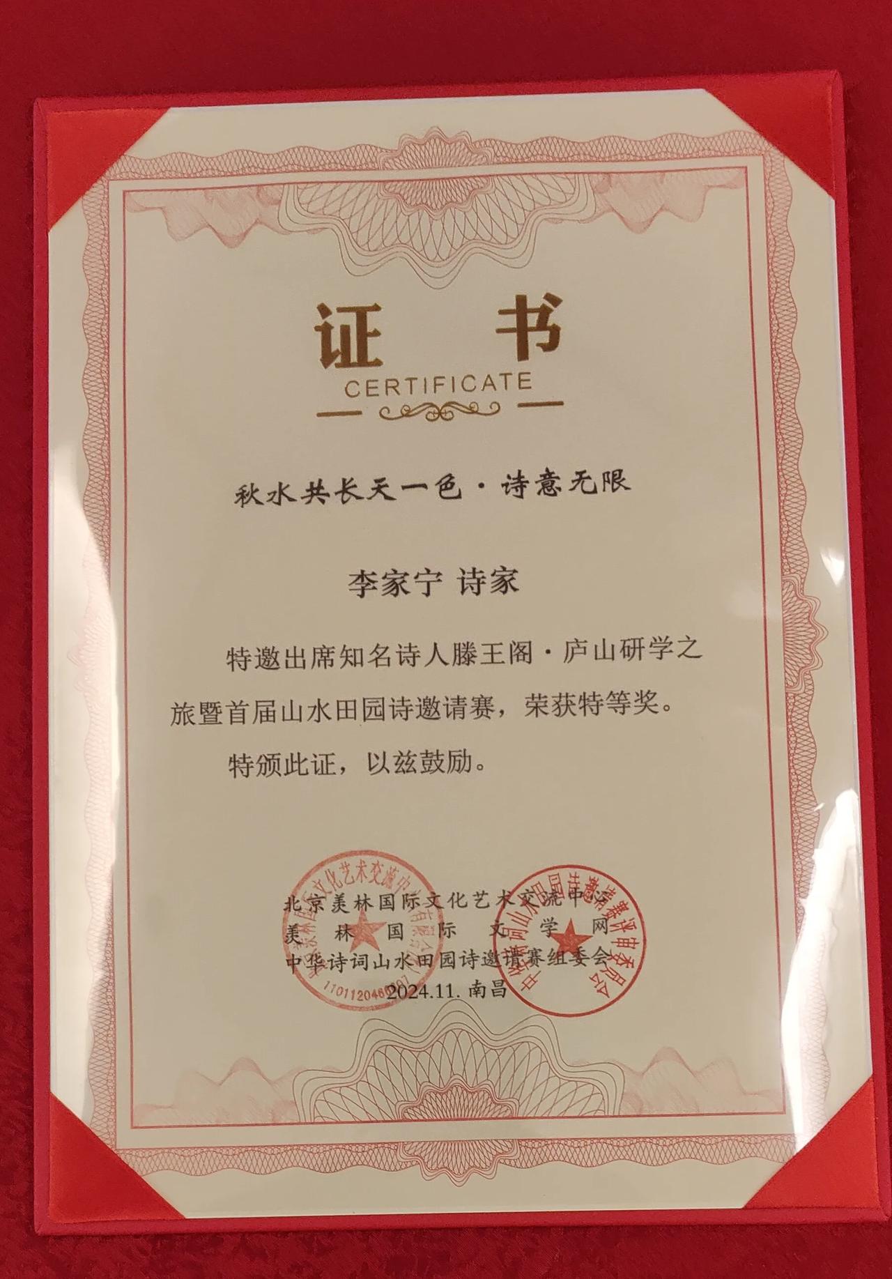 沁园春•庐山恋 李家宁(福建) 匡岳雄奇,雾绕烟封,秀色万千。望汉阳峰耸,摩天翠影;黄岩瀑泻,银练溅渊。白鹿遗风,书声犹在,雅士贤才赋锦篇。诗仙至,叹庐山胜境,逸兴留传。 登巅远望云闲,情激越、松涛伴涧眠。忆东坡题句,豪情满纸;朱熹论道,妙理无边。古寺钟悠,禅房香绕,岁月悠悠梦未残。庐山恋,愿长居此地,不羡人间。 2024、11、29