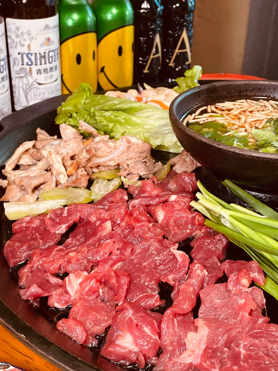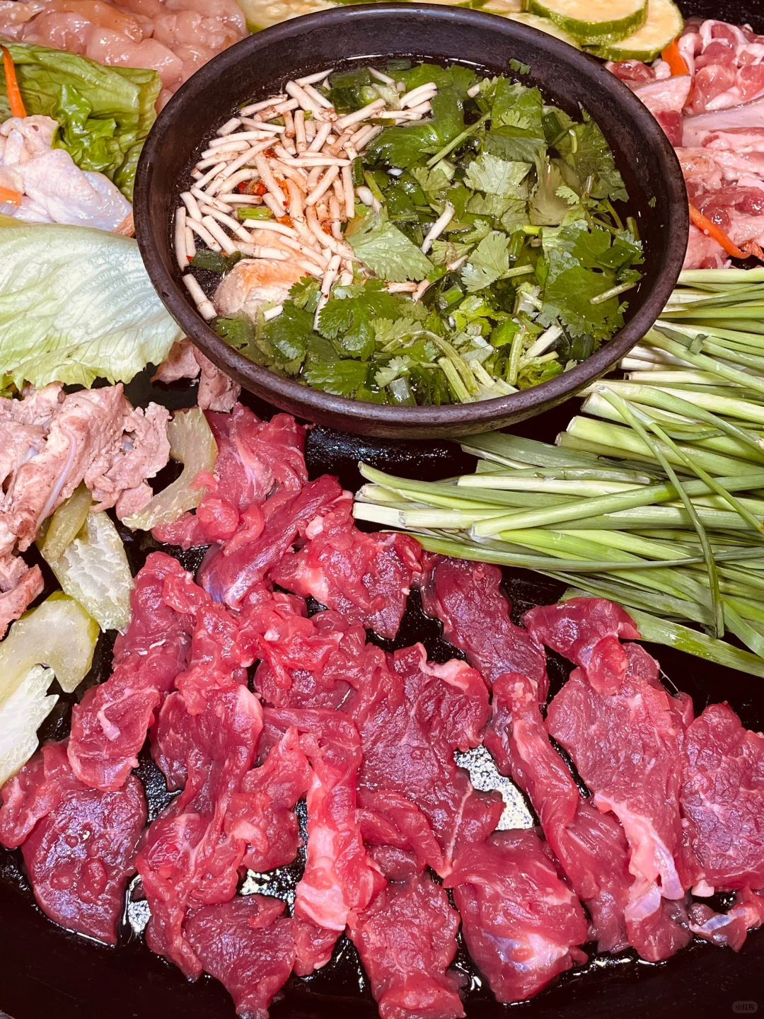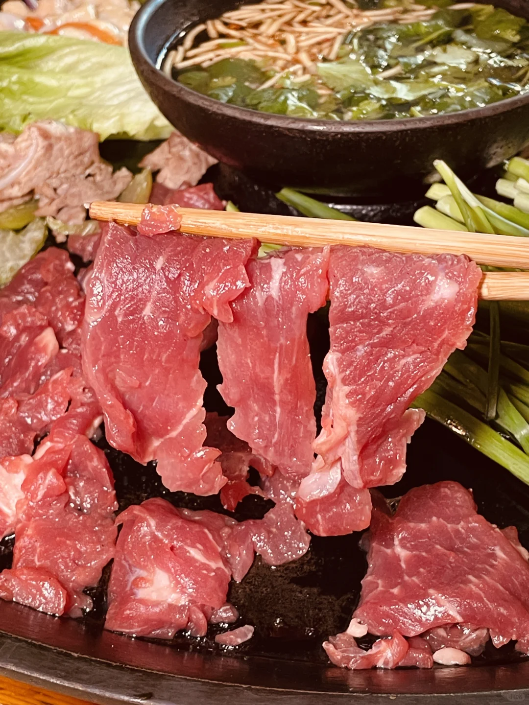 一进店就感受到了浓浓的烟火气,一锅锅热气腾腾的烤肉,太适合寒冷的冬天吃了,烤肉使用的是无烟炭,干净卫生。所有肉类菜品,都是现点现切的,最大程度的保留了食物的新鲜和营养。👍