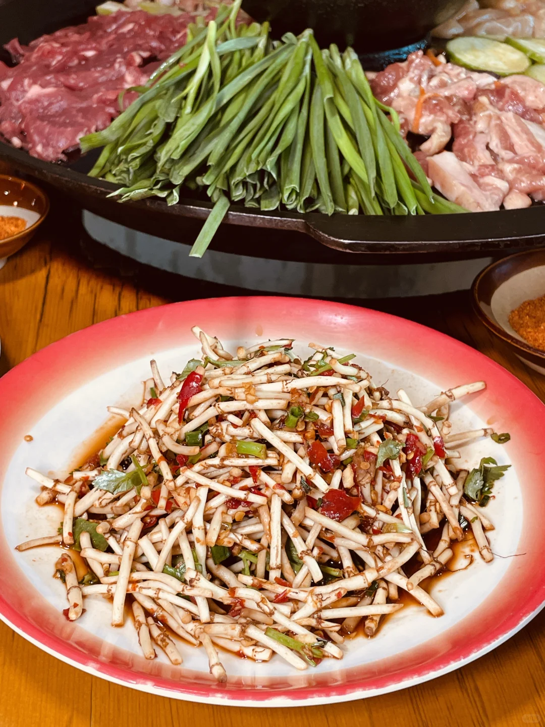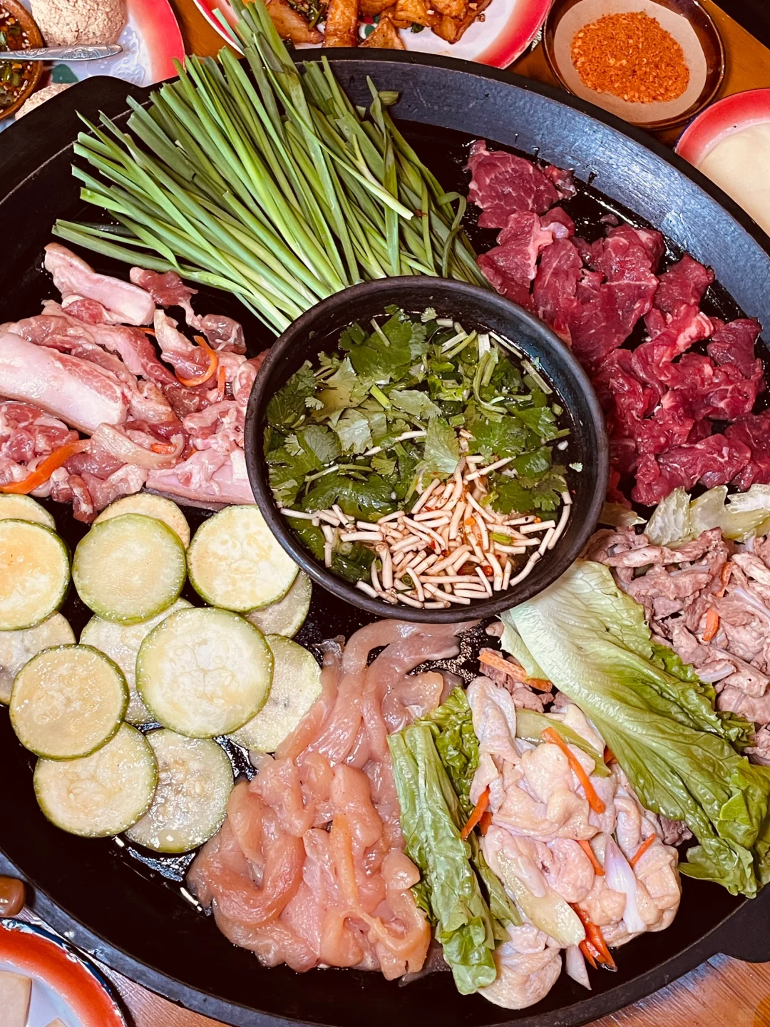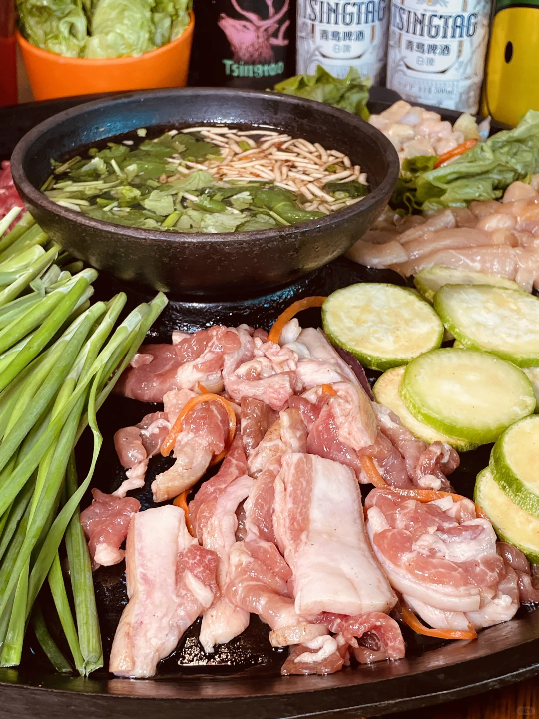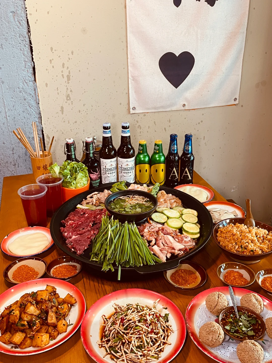 一进店就感受到了浓浓的烟火气,一锅锅热气腾腾的烤肉,太适合寒冷的冬天吃了,烤肉使用的是无烟炭,干净卫生。所有肉类菜品,都是现点现切的,最大程度的保留了食物的新鲜和营养。👍