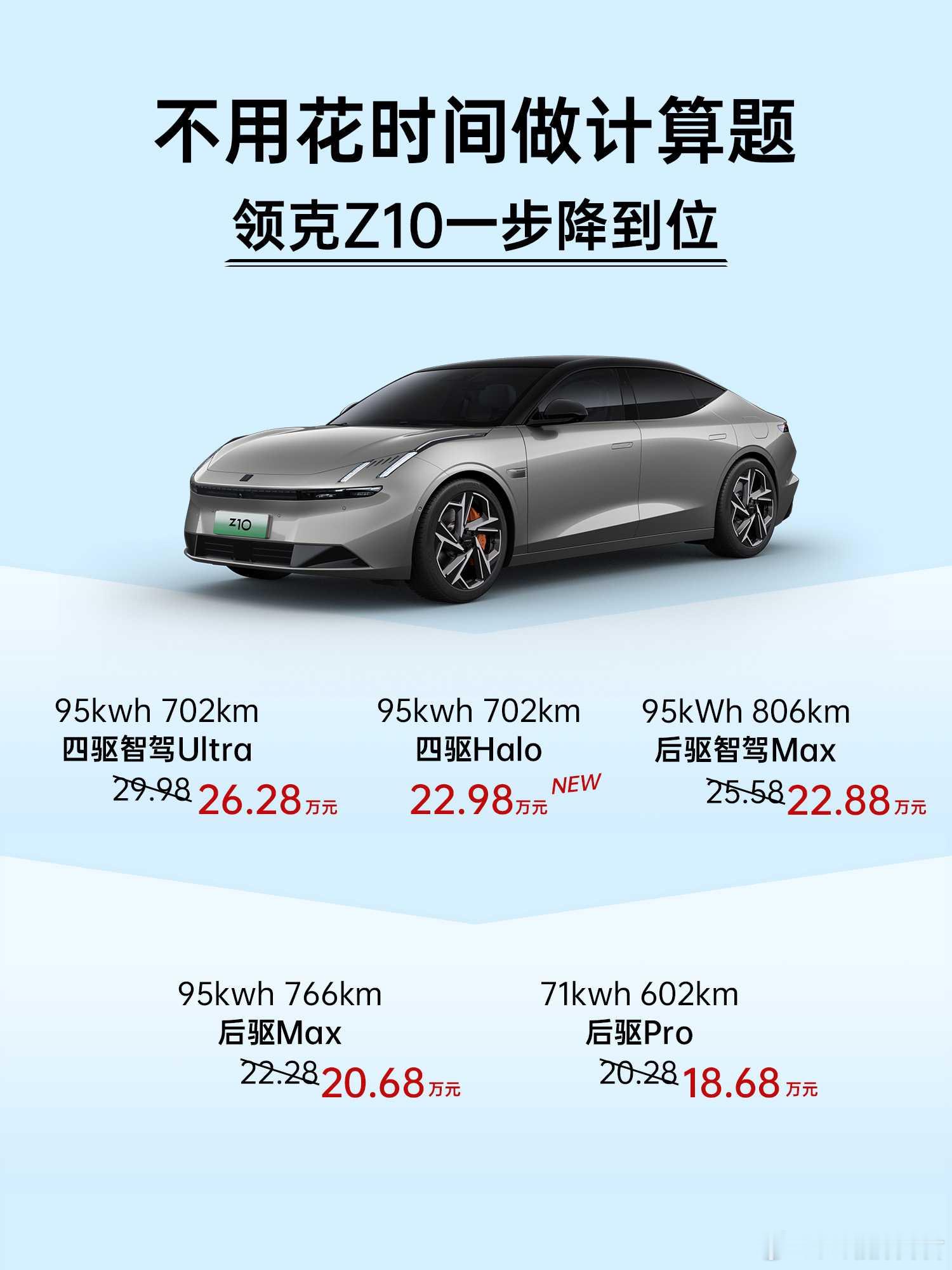 终于等到了!领克Z10四驱Halo版22.98万,这价格简直让人无法抗拒。我个人一直追求性价比和高性能的结合体,而这次领克真的做到了。800V平台、702km续航、四驱双电机...这些配置让我觉得,领克是真的在用心造车。透明的价格体系,再加上不输于任何竞品的性能,我决定就是它了!