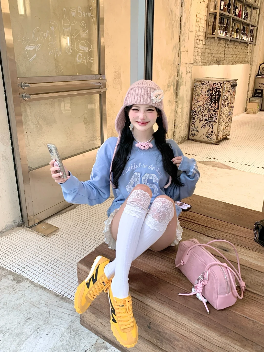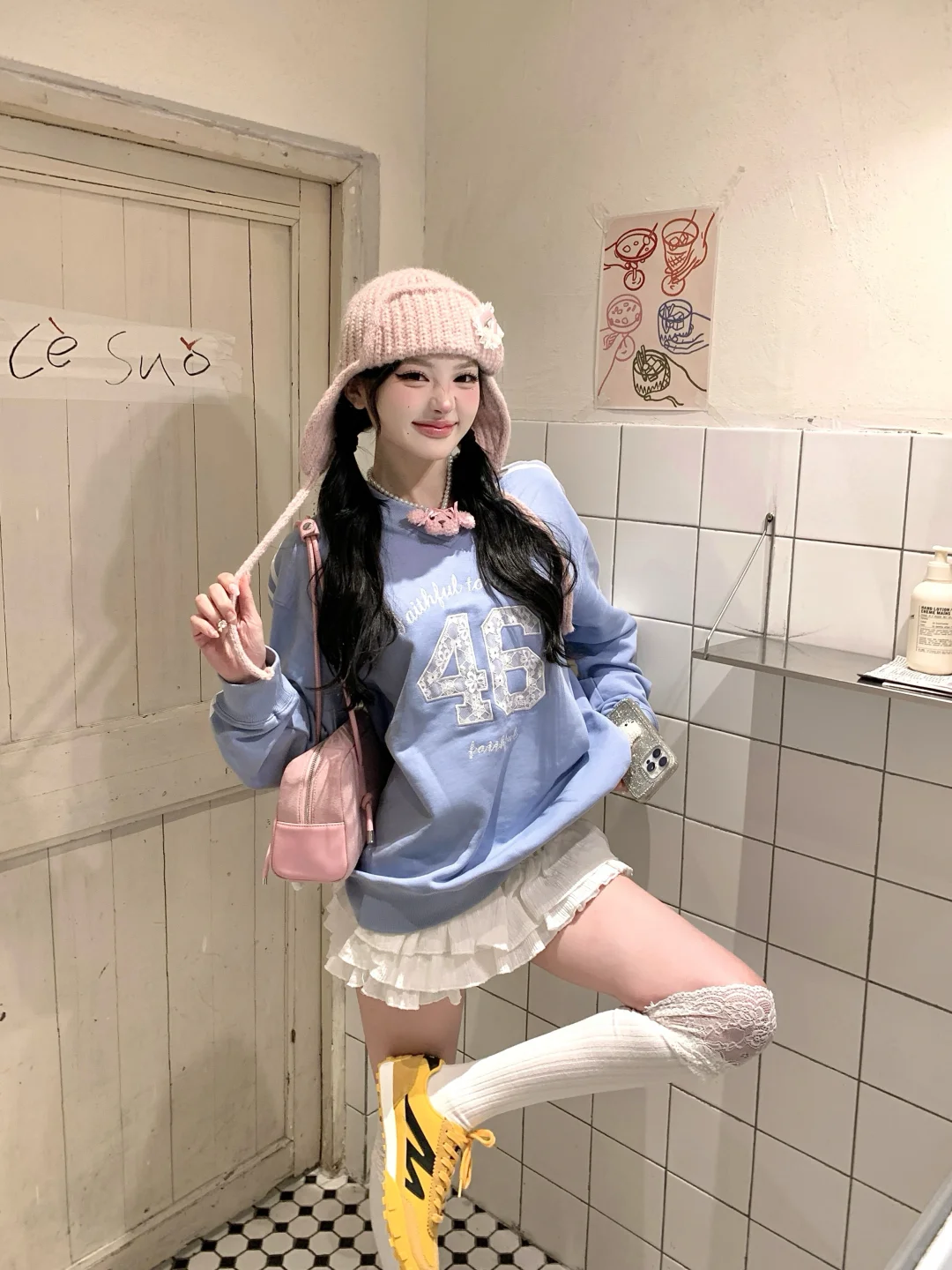 ins博主穿搭 韩女拍照 韩女妆容 NFL NFL球衣 骆驼德训鞋