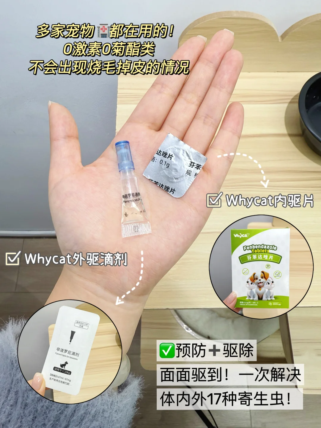 我家的皮肤病就是感染寄生虫导致的😷!所以一定要按时驱虫!可以用这个whycat外驱滴剂➕内驱片!定期定量给狗狗使用!从源头预防起来才是重点!