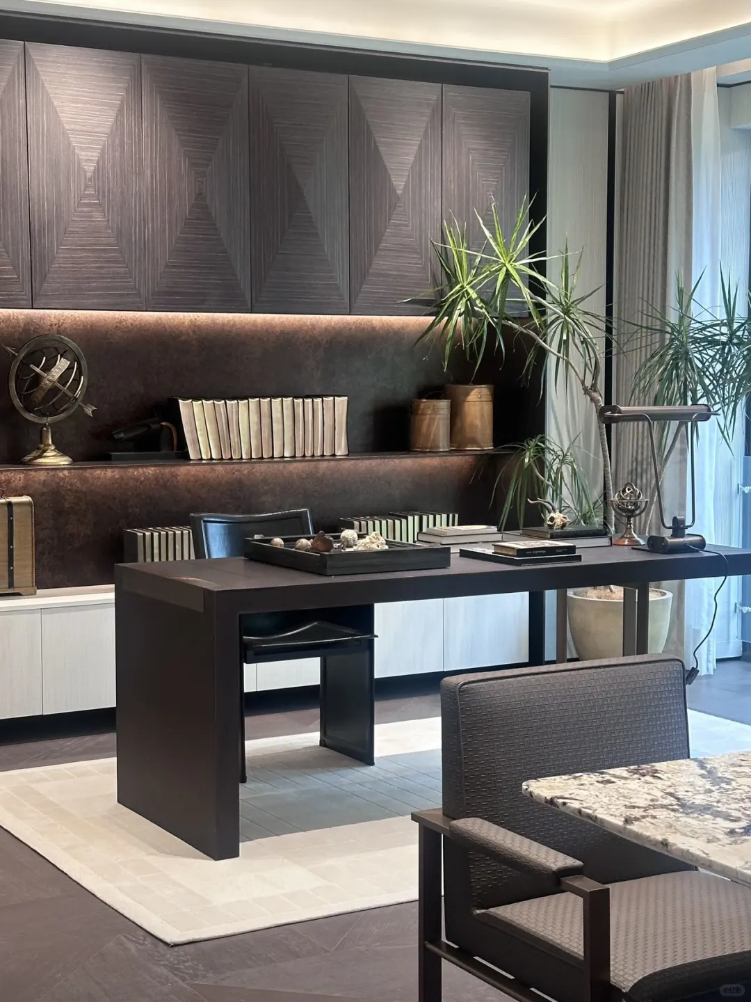 🩵中岛板楼采用经典意式,沉稳大气很耐看。大面奢石和金属的运用,整体呈现出隐奢质感。收纳体系同样做的很好,在空间对称的基础上,尽可能让每一面墙都充分利用