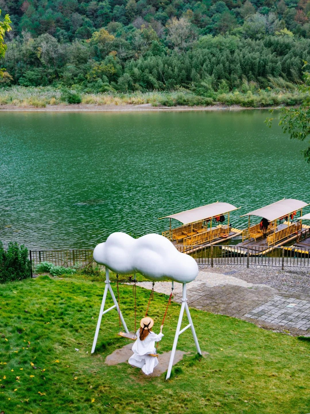 天目溪畔,碧水悠悠,竹筏片片。这里,既有多巴胺的活力,又有云朵秋千的悠闲