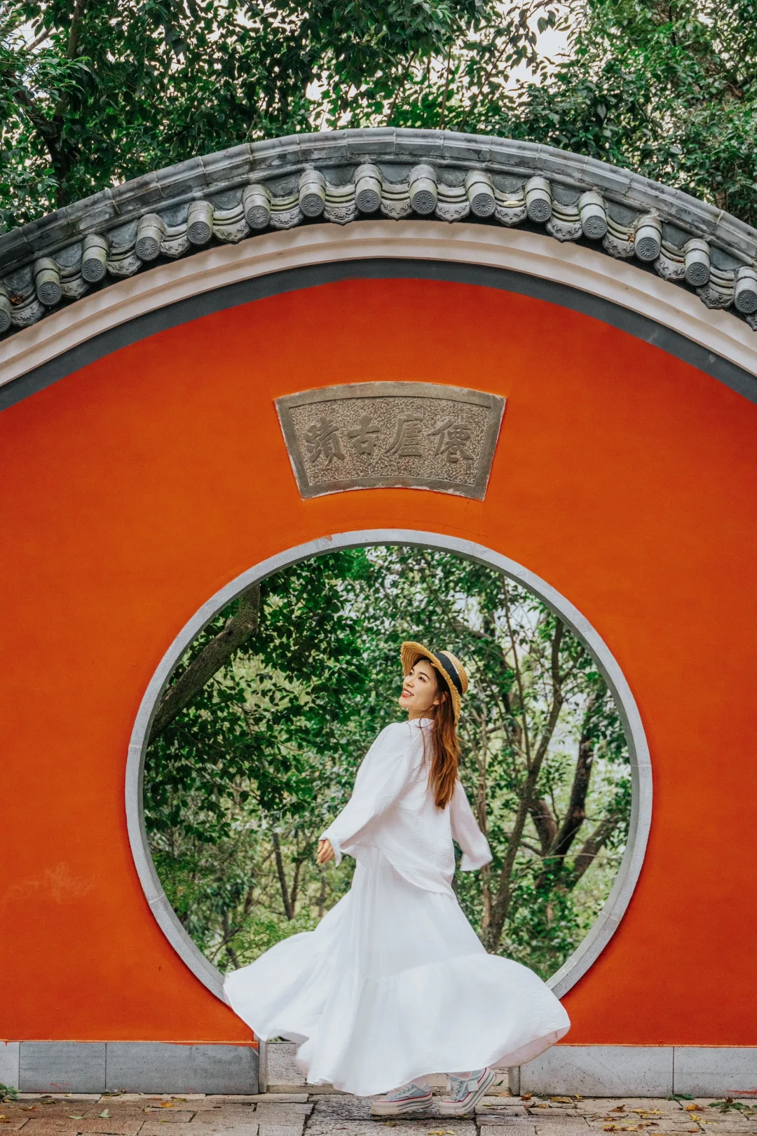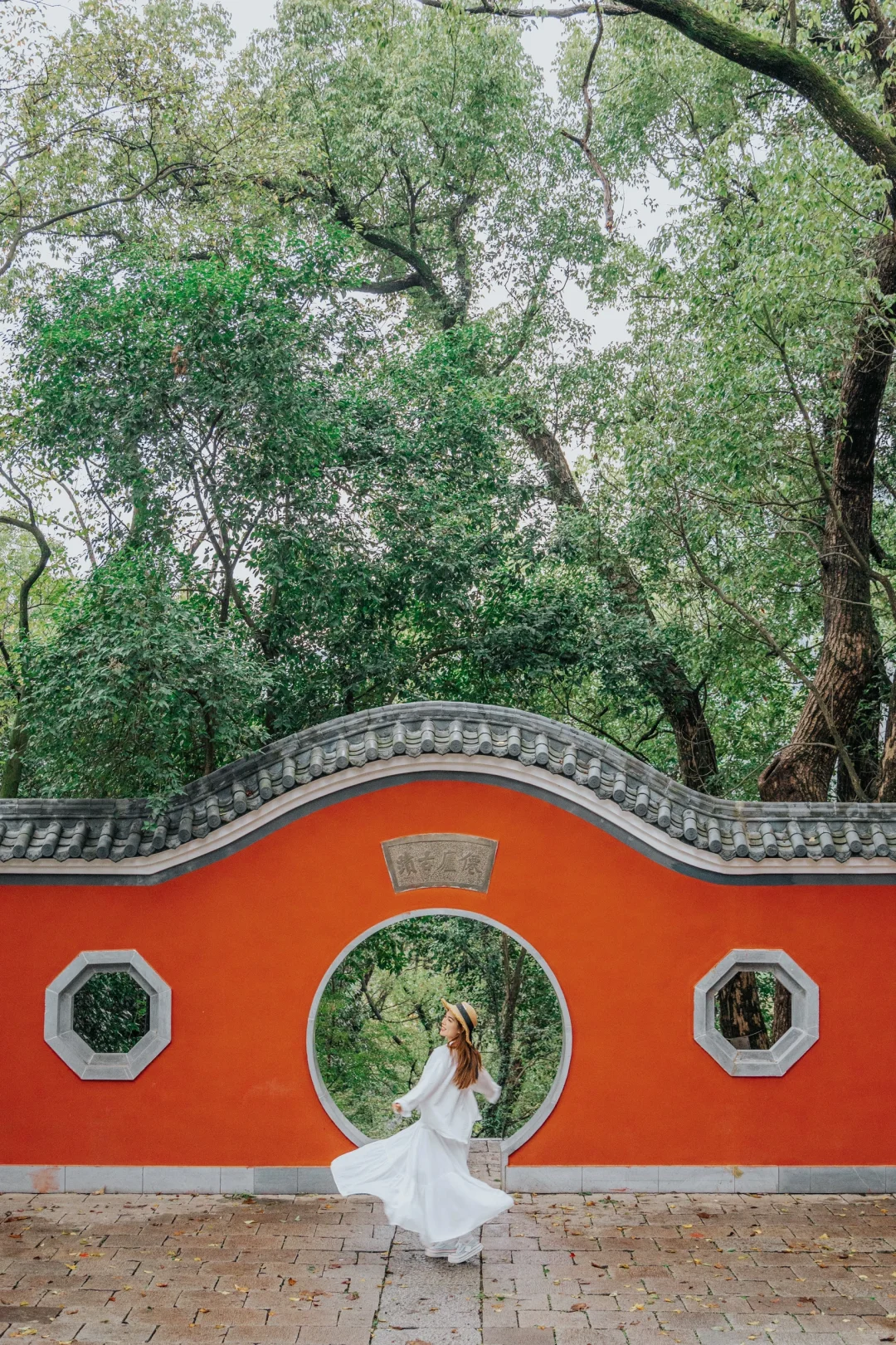 仙庐古迹,红墙黛瓦圆洞门,有道家建筑之美学