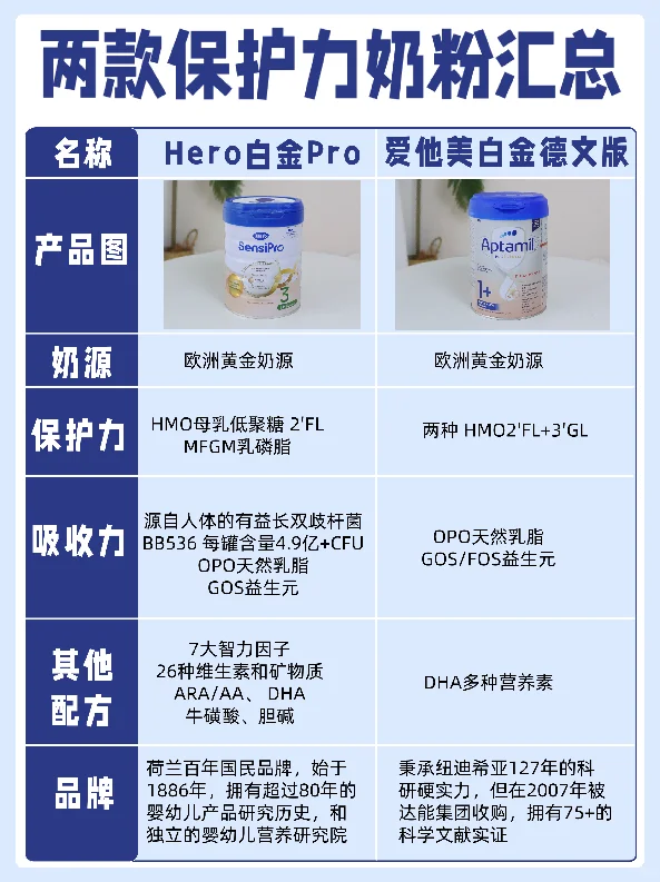 ✅ Hero白金Pro:Hero是荷兰百年国民口碑品牌,拥有超过80年历史的婴幼儿产品研究,开发和生产经验,和独立的婴幼儿营养研究院。品牌历史悠久,品质有保障,是荷兰本土超过半数妈妈的选择