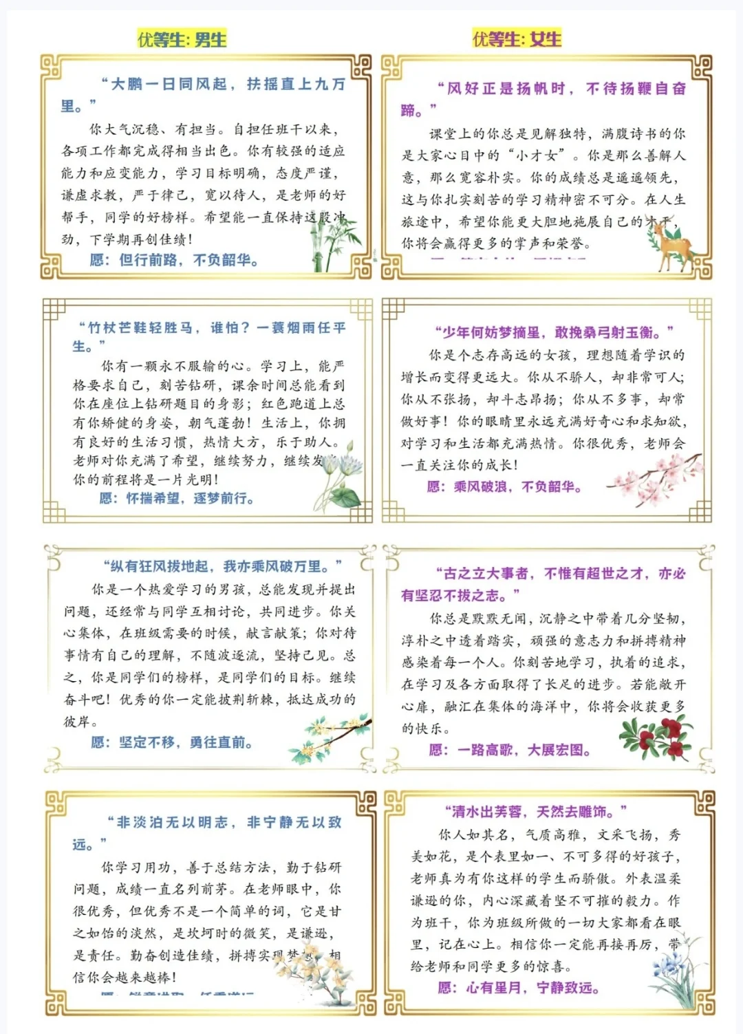 中学期末评语|发现学生闪光点,这些评语好