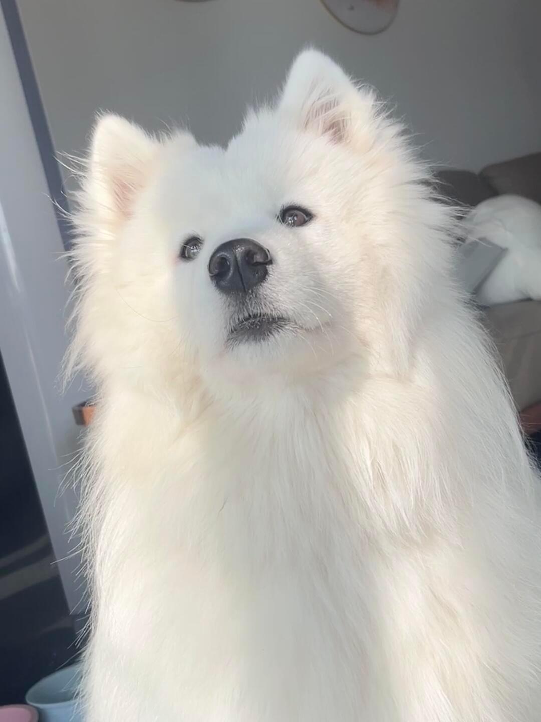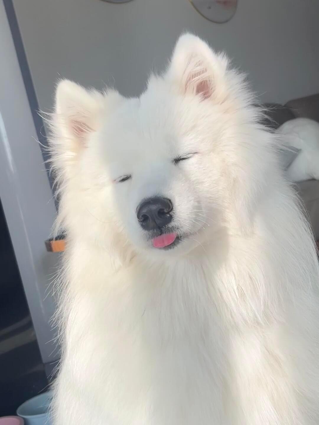 早起独自晒太阳的萨摩耶