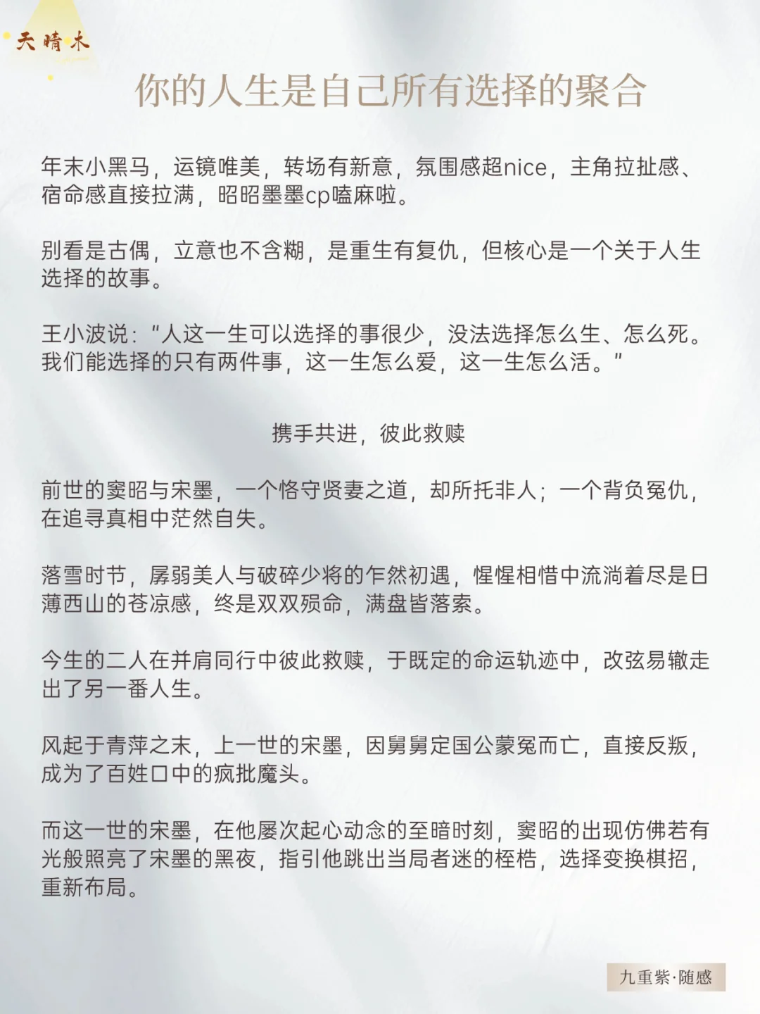 年末小黑马,运镜唯美,转场有新意,氛围感超nice,主角拉扯感、宿命感直接拉满,昭昭墨墨cp嗑麻啦。