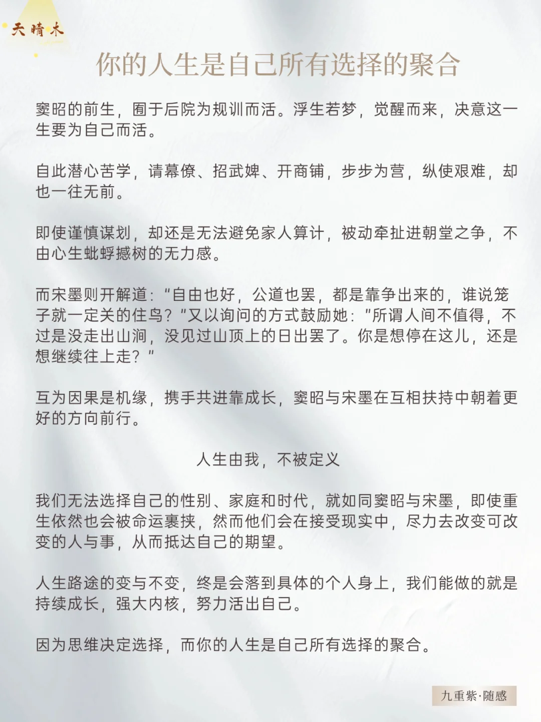 窦昭的前生,囿于后院为规训而活。浮生若梦,觉醒而来,决意这一生要为自己而活,自此潜心苦学,请幕僚、招武婢、开商铺,步步为营,纵使艰难,却也一往无前……