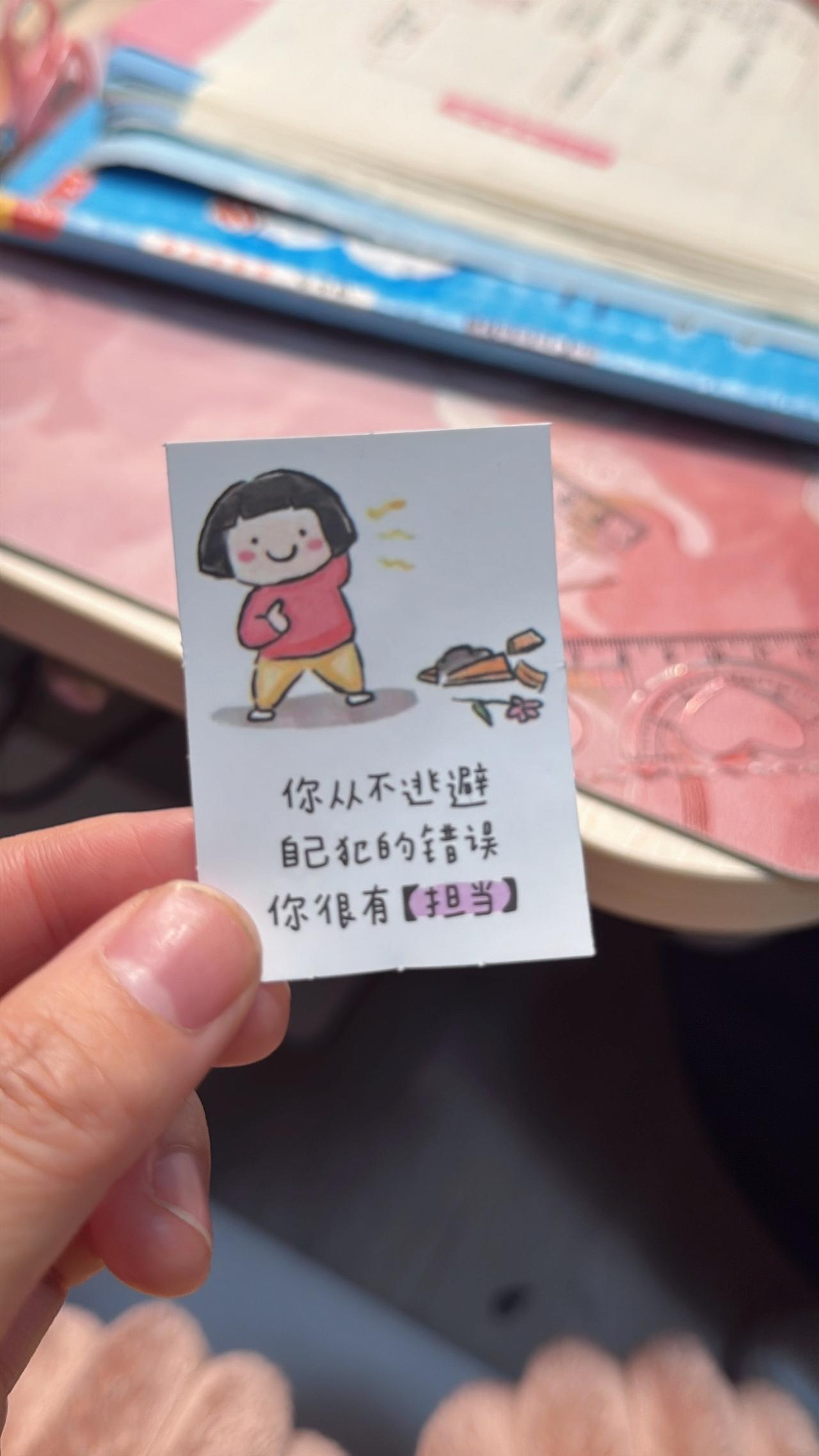 买了一堆有趣的东西~刚到就派上用场了, 我进豆豆房间看到尺子断了, 我问她怎么回事? 她开始支支吾吾,我说不怕,大胆说,妈妈就是想知道它怎么变成这样了… 她说我扳断的,我说你还厉害也~ 然后经过协商,罚款100,哈哈,她还有好几百呢! 讲了一下原因我说因为我给你买的是好的,你不是在使用过程中用坏的,你故意扳坏就是不珍惜,那就罚款吧! 哈哈,小家伙去拿了一百给我~ 然后我就找了这张贴纸给她,她挺开心的~ 好了,她失去了一百但收获很多,我收获更多,哈哈~