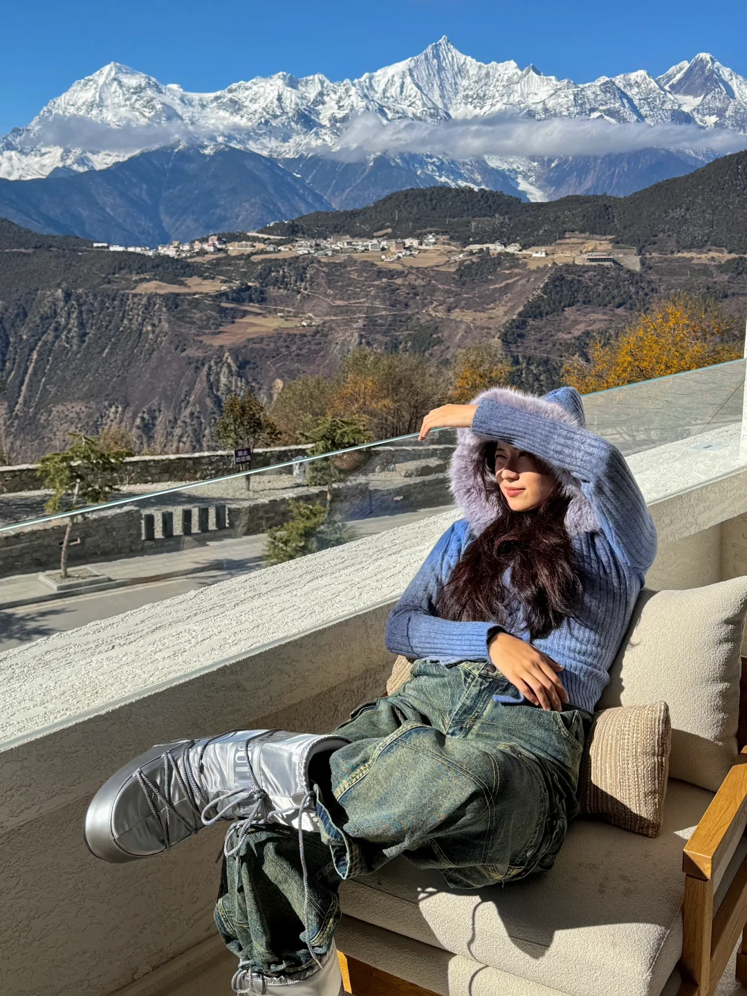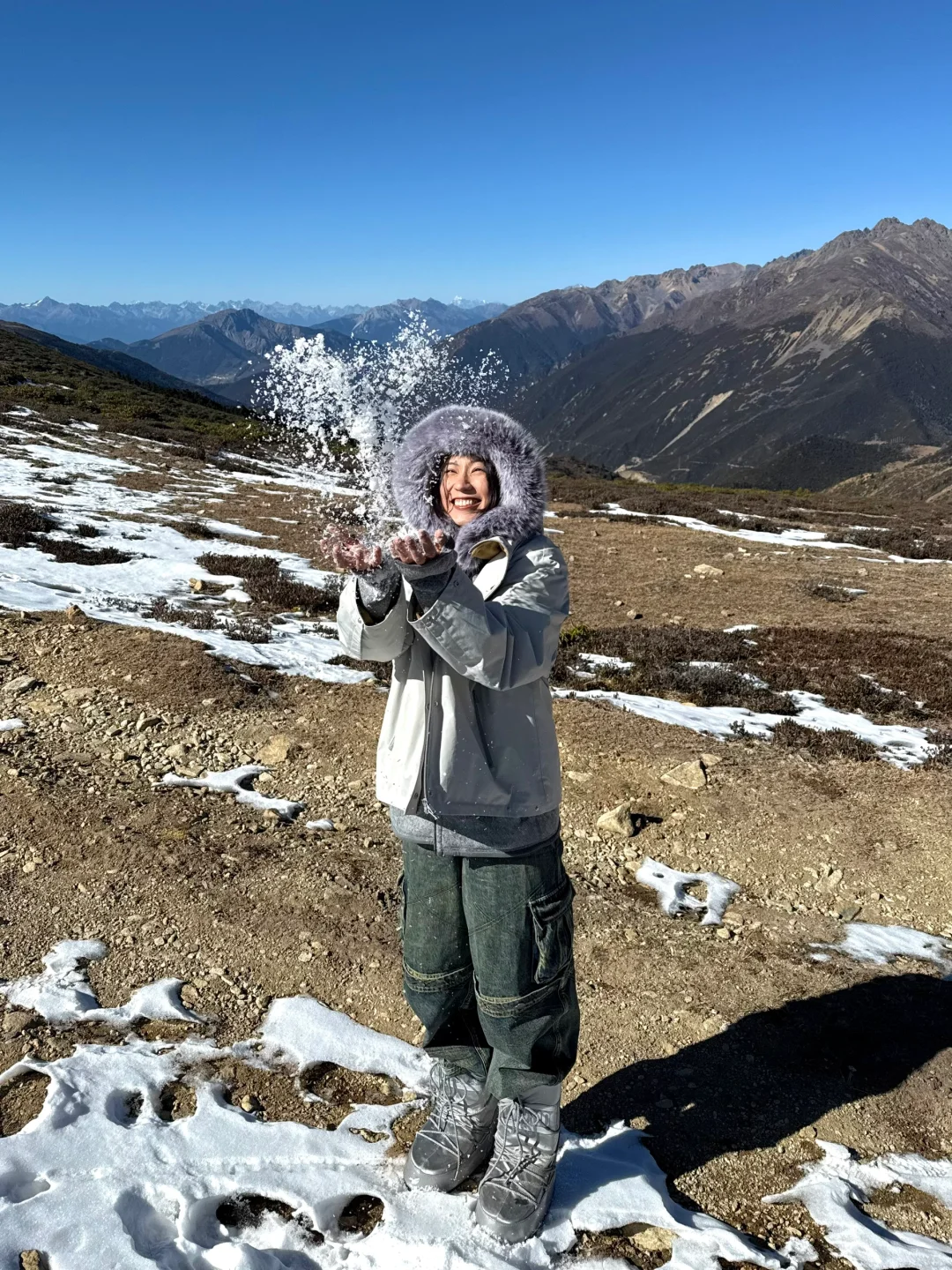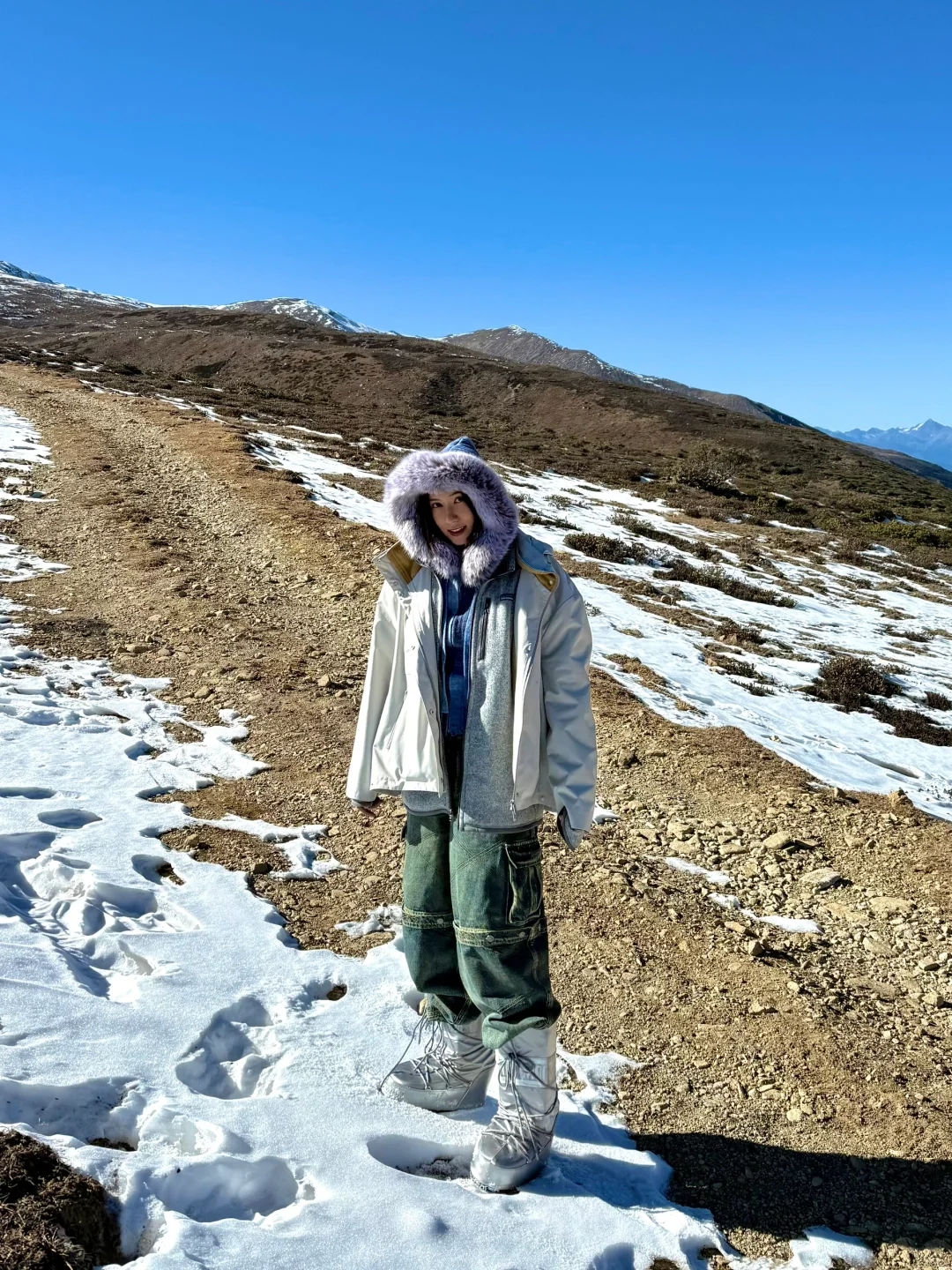 自驾7h到梅里雪山 回去时经过白马雪山 一个人都没有 海拔4292米 为了踏上今年冬天的第一片雪地 没有继续跟随导航 而是沿着积雪的道路前行 走到我想去的地方 站在群山中间 瞬间头脑里没有任何的杂念 只是静静地观赏眼前的这一片景色 这种平静的感觉真的很少有 周围只有风声和牛羊的声音 站在这里有种释放的感觉 确实 大自然的美景只是存在 便足够抚慰人心