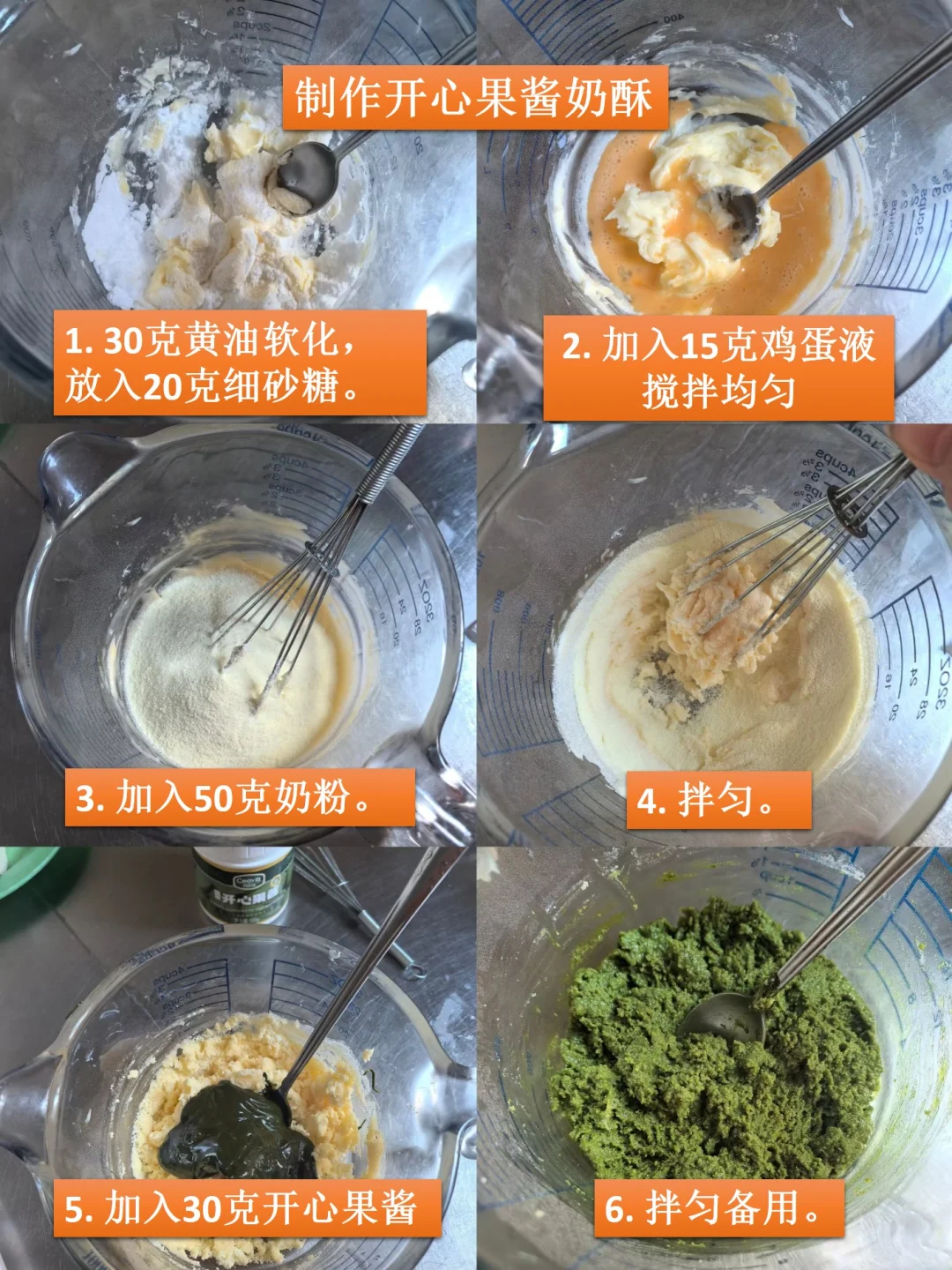 开心果酱:30克 | 黄油:30克 |糖粉:20克 | 奶粉:50克 | 鸡蛋:15克