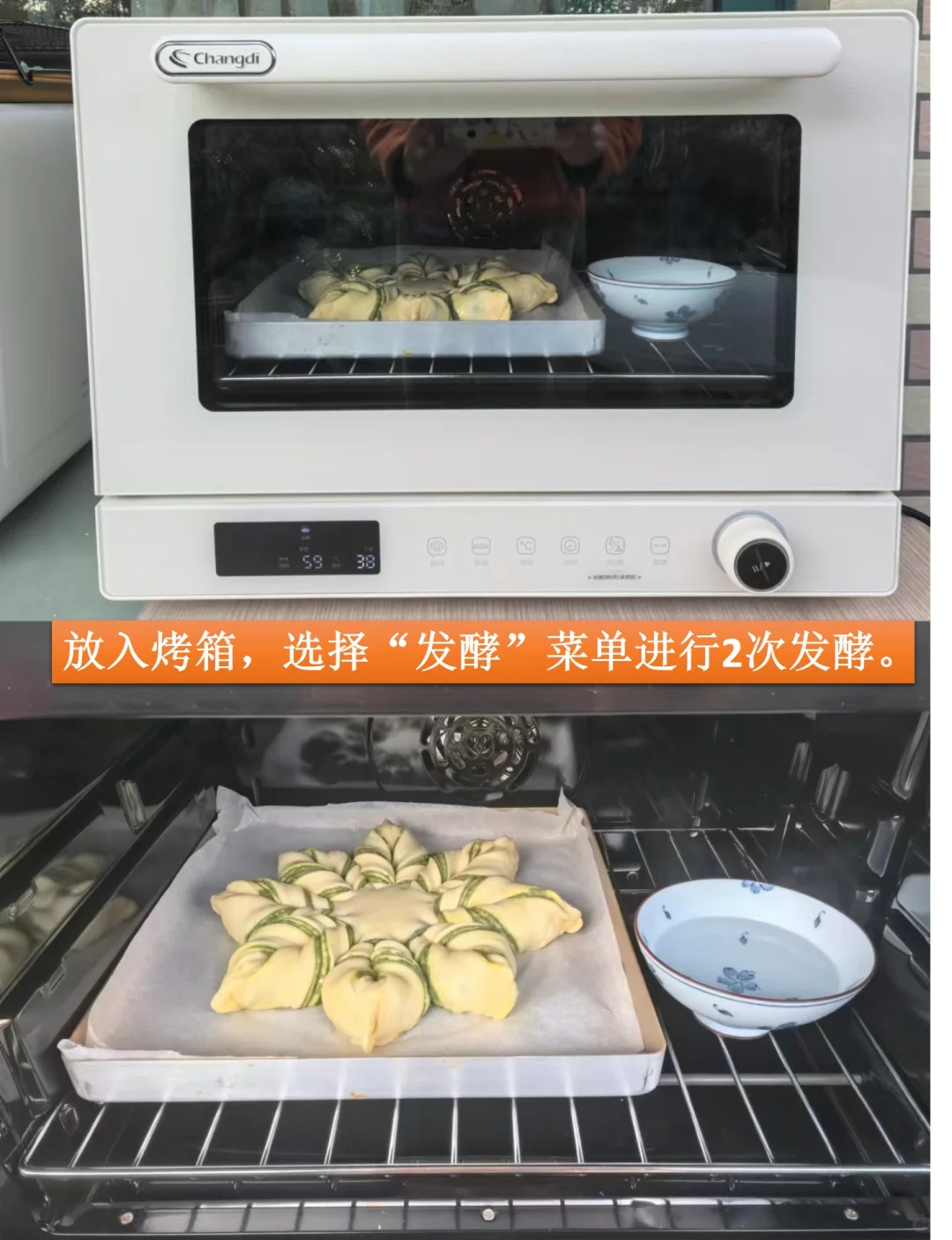 [八R]放入温暖地方进行二次发酵。我放入长帝S1烤箱,可以方便选择“发酵”菜单,发酵到2倍大小。