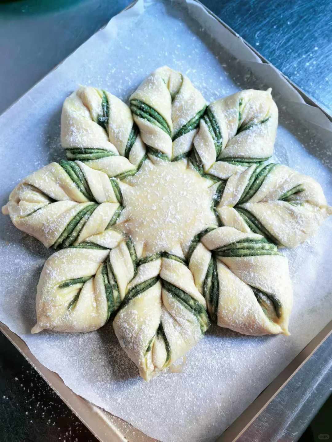 [樱花R]这是一款又好看又好吃的面包,做法其实挺简单的,但制作的过程非常治愈,有点类似于我们中国的花模面点,看着一朵圣诞雪花在手中诞生,那种喜悦只有做过才能体会得到。