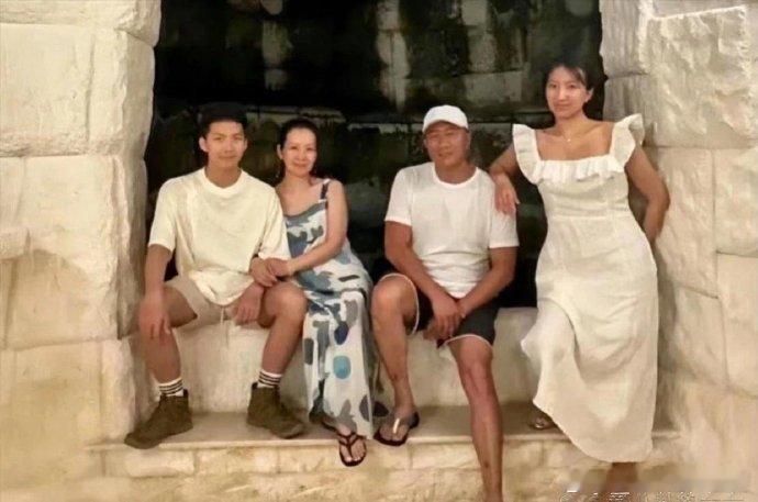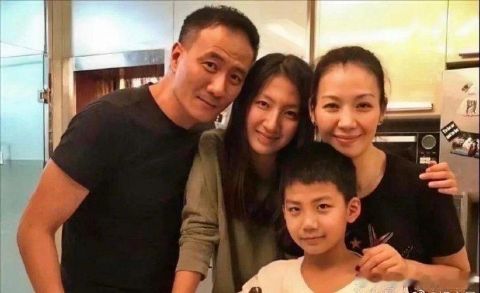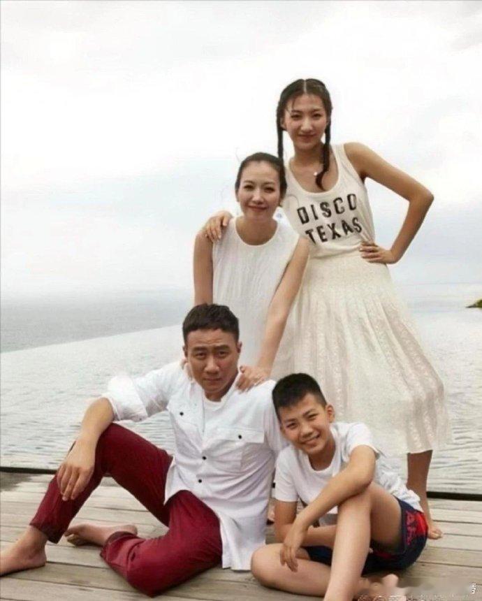胡军一家四口合照,女儿长得像老爸,儿子呢,简直就是妈妈的翻版!
