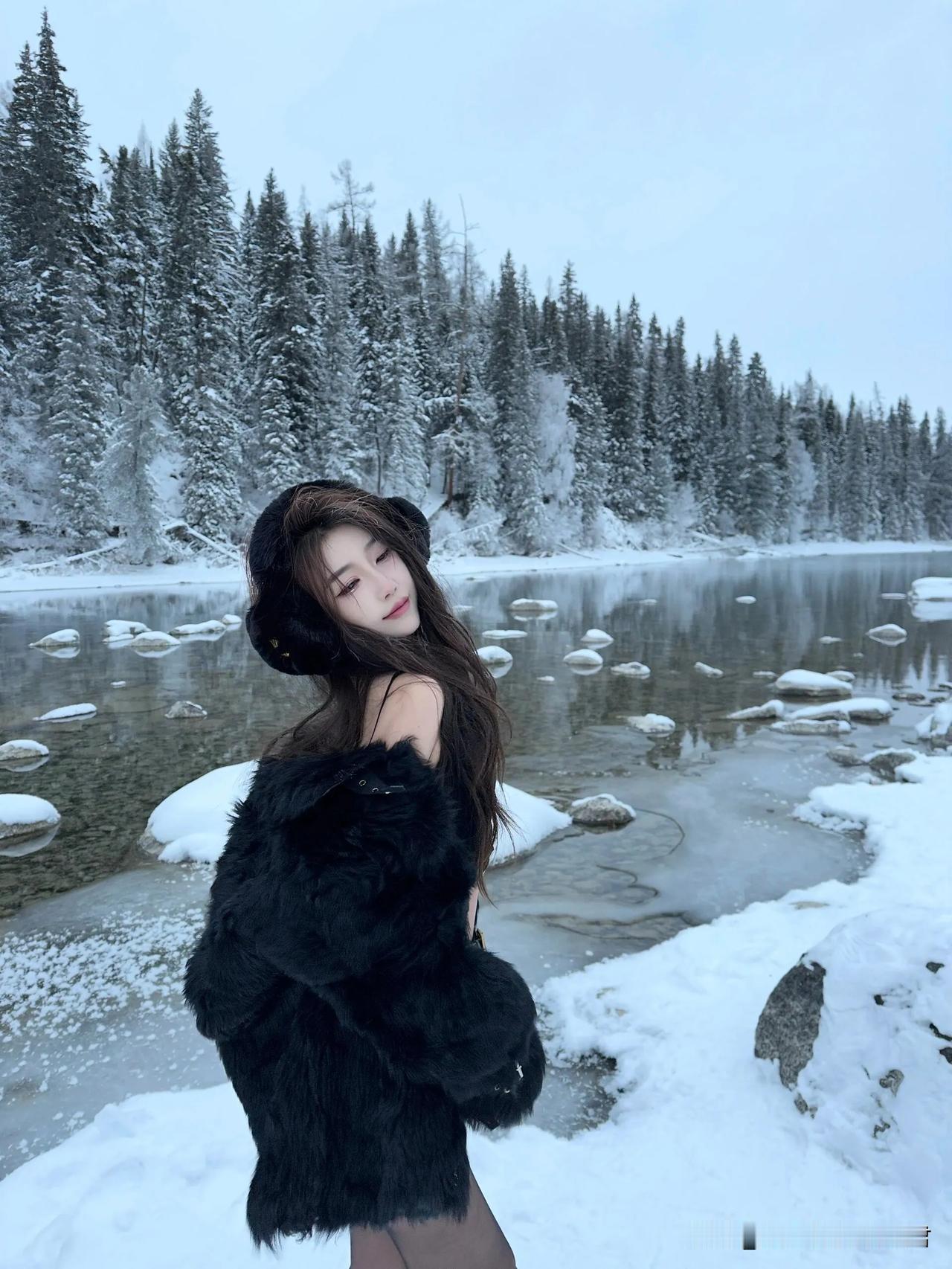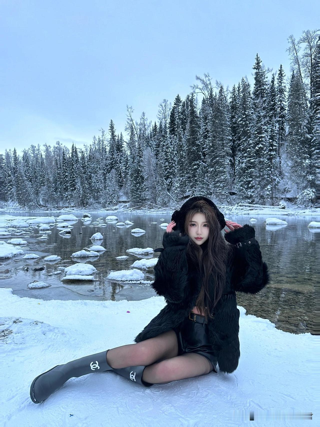 一定要去冬天的喀纳斯,因为在这里看一眼便会爱上这里。雪后美丽女孩雪地,美图一