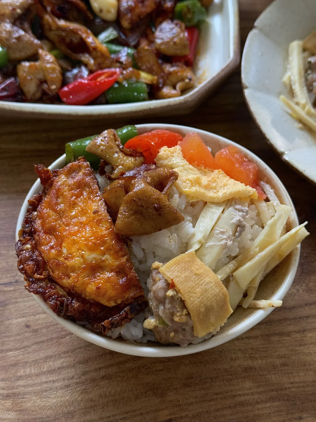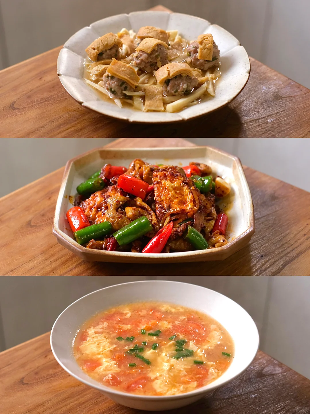 今日菜单: 1⃣️肥肠小炒荷包蛋 2⃣️霉千张笋丝蒸肉丸 3⃣️番茄蛋花汤 大肠自己处理比较麻烦,所以直接买的白卤全熟的,三个菜差不多半小时左右完成,今天的菜又被老婆夸了。做法分享在后面的图片上咯!