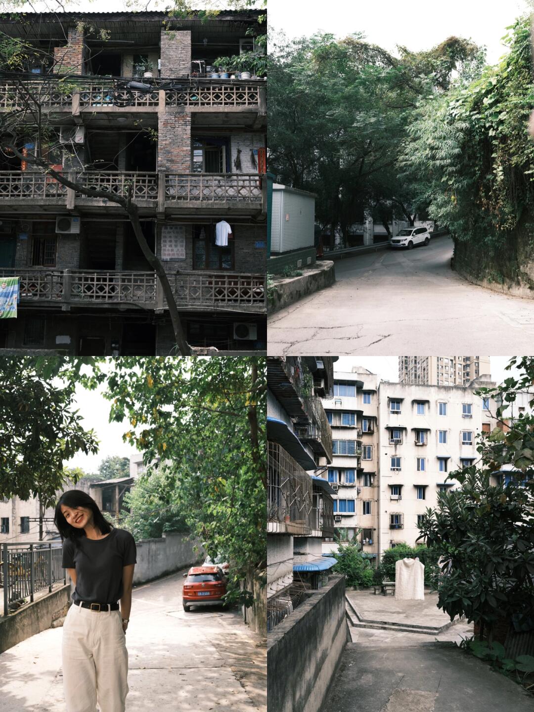 大家好,我是重庆独立女摄不足见,方便大家一篇就能了解最地道的重庆美景和历史,特意整理一篇我最常去的小众拍摄地合集,建议收藏💗✅ 以下编号内容按图片顺序整理🧚🏻♀️ 1⃣️重庆渝中区正宗老社区,非常富有生活气息,房屋建筑具有重庆特色,七星岗附近(临华路社区) 📍赛维洗衣店 2⃣️背景层层叠叠,也在渝中区,📍较场口5号出口右转50米上坡处 3⃣️九龙坡杨家坪民主二村,📍团结大厦(顺便一提,直港大道附近美食特别多😋 4⃣️枇杷山正街,两路口附近,有彩虹楼梯,枇杷山公园就在这条路上,值得去登高望远📍枇杷山正街 5⃣️嘉陵厂堆金村,嘉陵厂作为老重庆人的骄傲,这里留下了许多历史,创造了一个时代的辉煌,也免不了留下一些沧桑,这里绿化很好,建筑老老旧旧,非常安静舒适📍嘉陵小学 6⃣️陈电村,曾经的虎溪机电厂,重庆炮校旧址,村里很多房子是50年代苏联建造,在拆迁之前值得去留下一点记忆📍轻轨陈家桥一号口下车,步行至陈电村,路上就有美好的风景 7⃣️快乐里探矿厂家属区,红砖青瓦,探矿厂修建于上个世纪六七十年代,木梯房,筒子楼,绿树成荫📍快乐里社区 8⃣️又一辉煌过的旧厂,保留下来的喷泉,建筑,长廊亭子也很适合拍照,📍重庆铝制品加工厂(新桥医院附近) 9⃣️可以拍到重庆特有的建筑特色,横跨在空中的桥一看就知道这是山城重庆!如果不想去白象居人挤人,那就去这里吧!📍重庆渝中霞光幼儿园,诚推✊ 想去背后的桥可以🧭鑫龙大厦