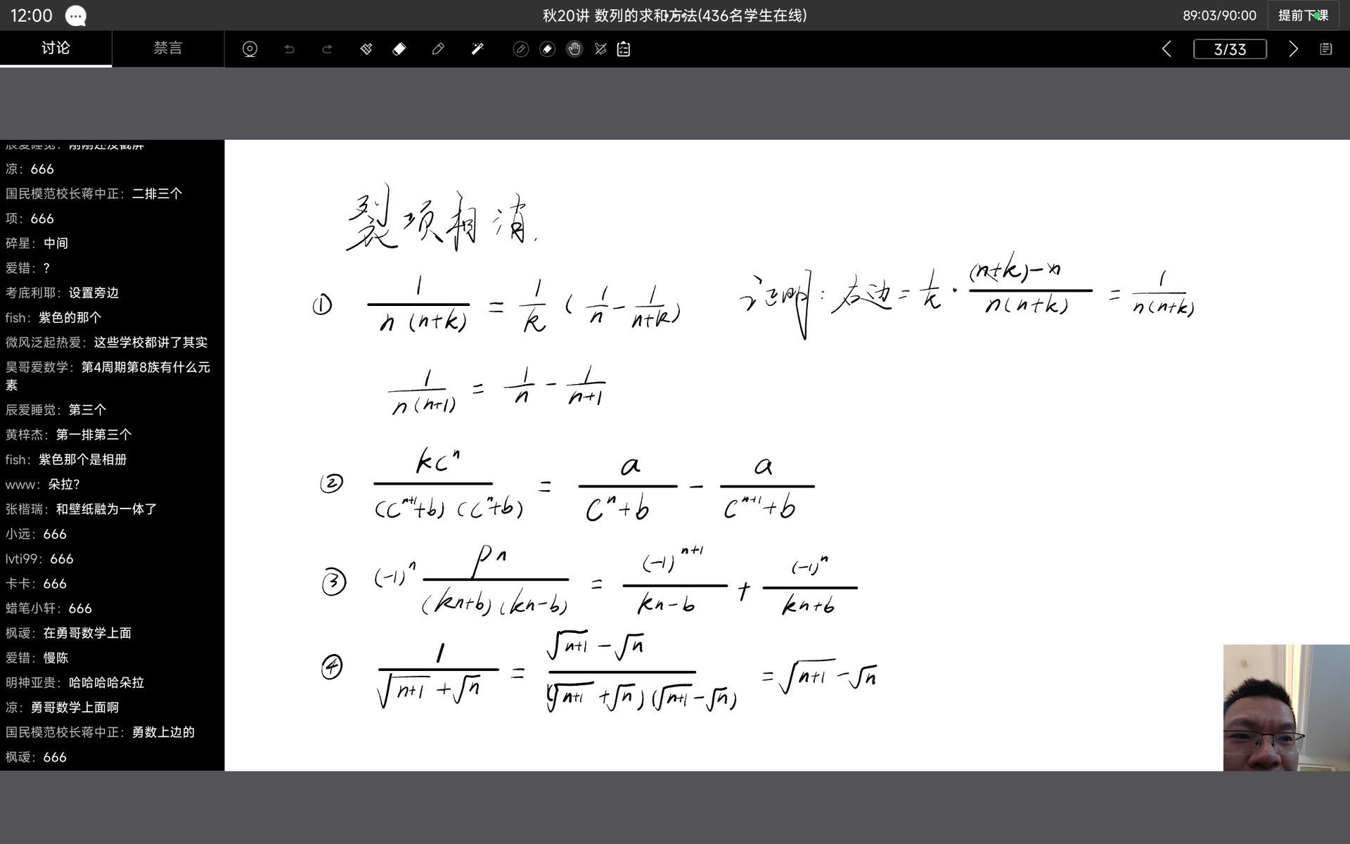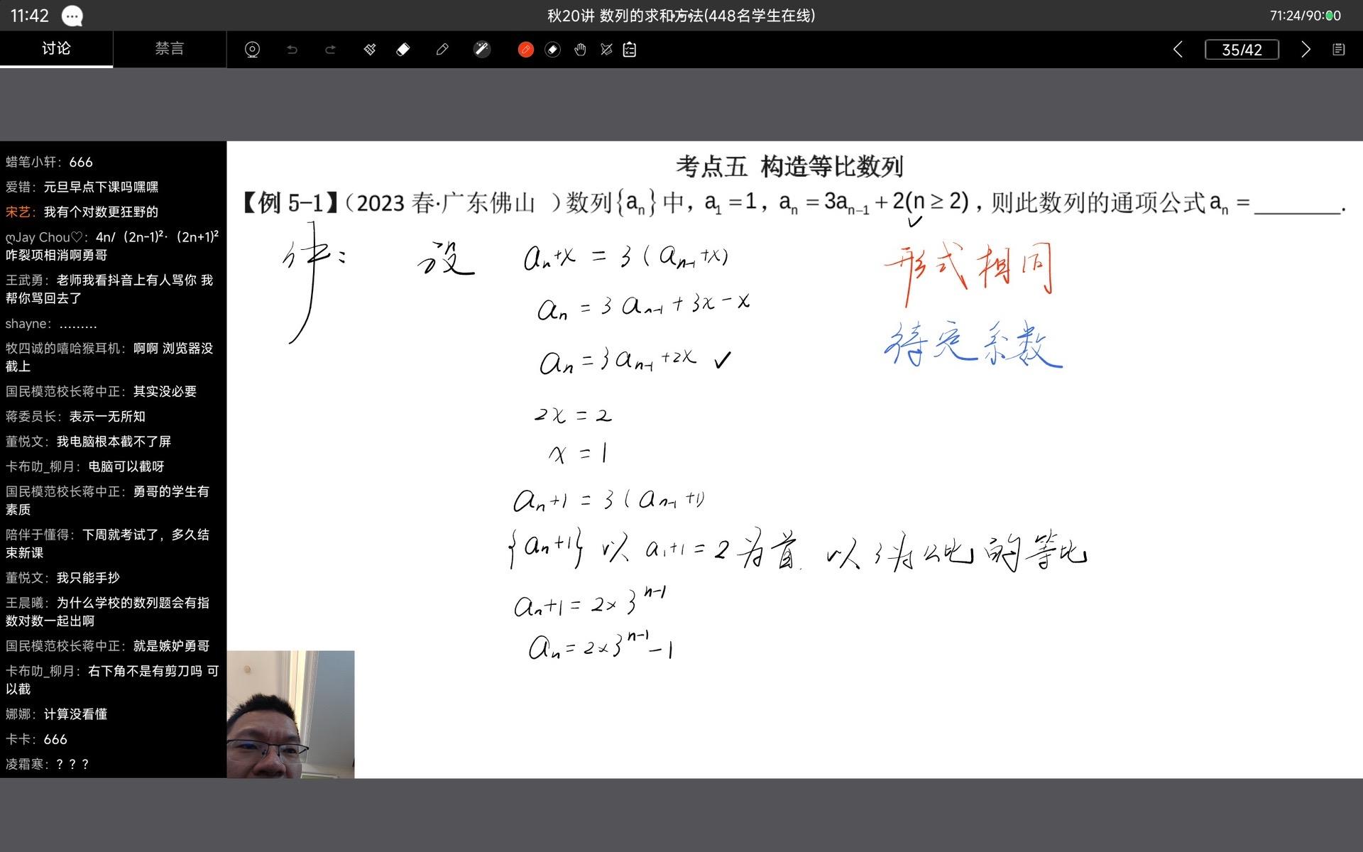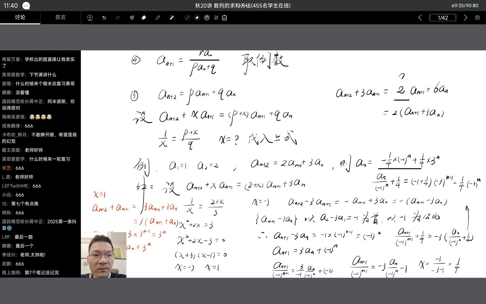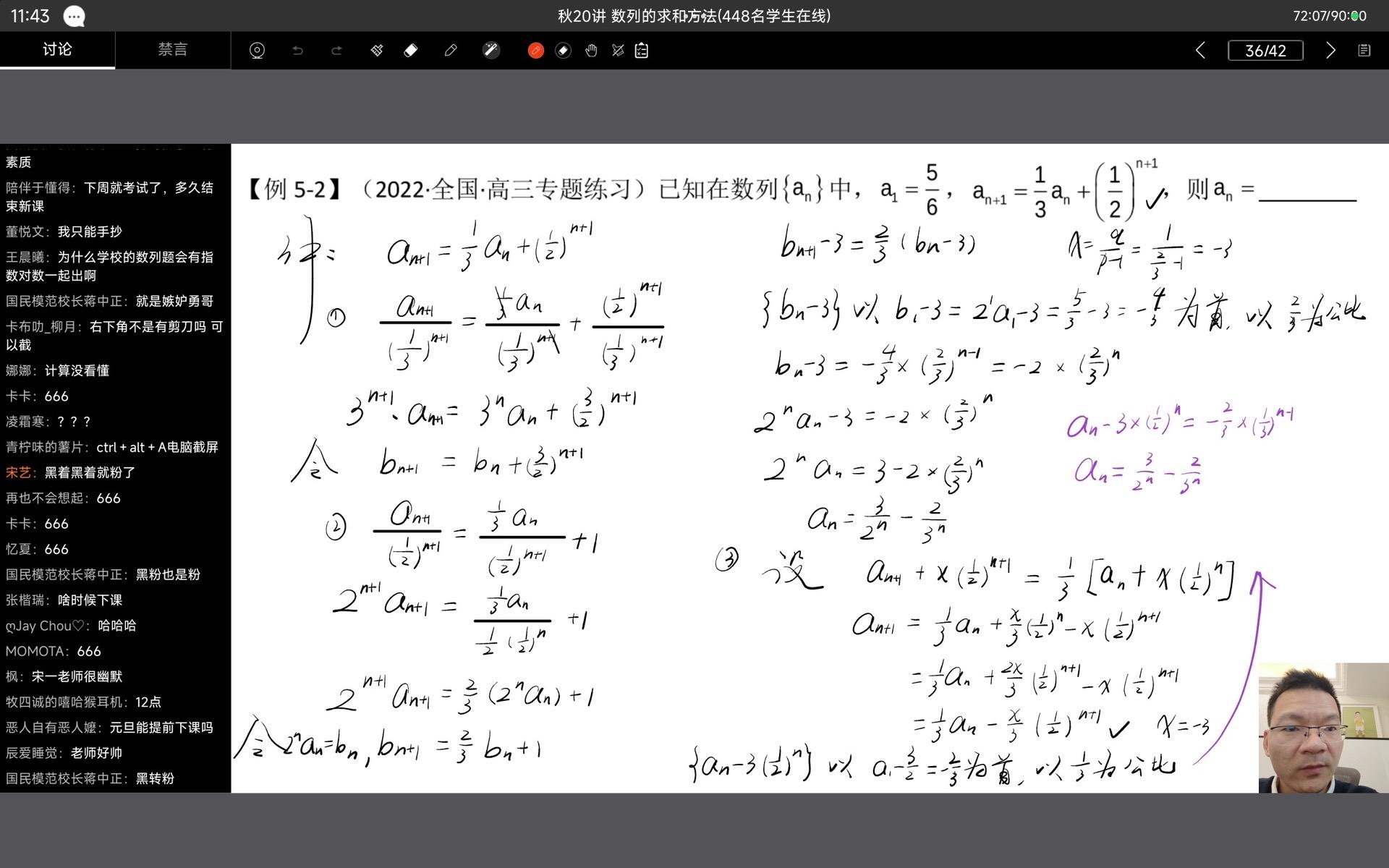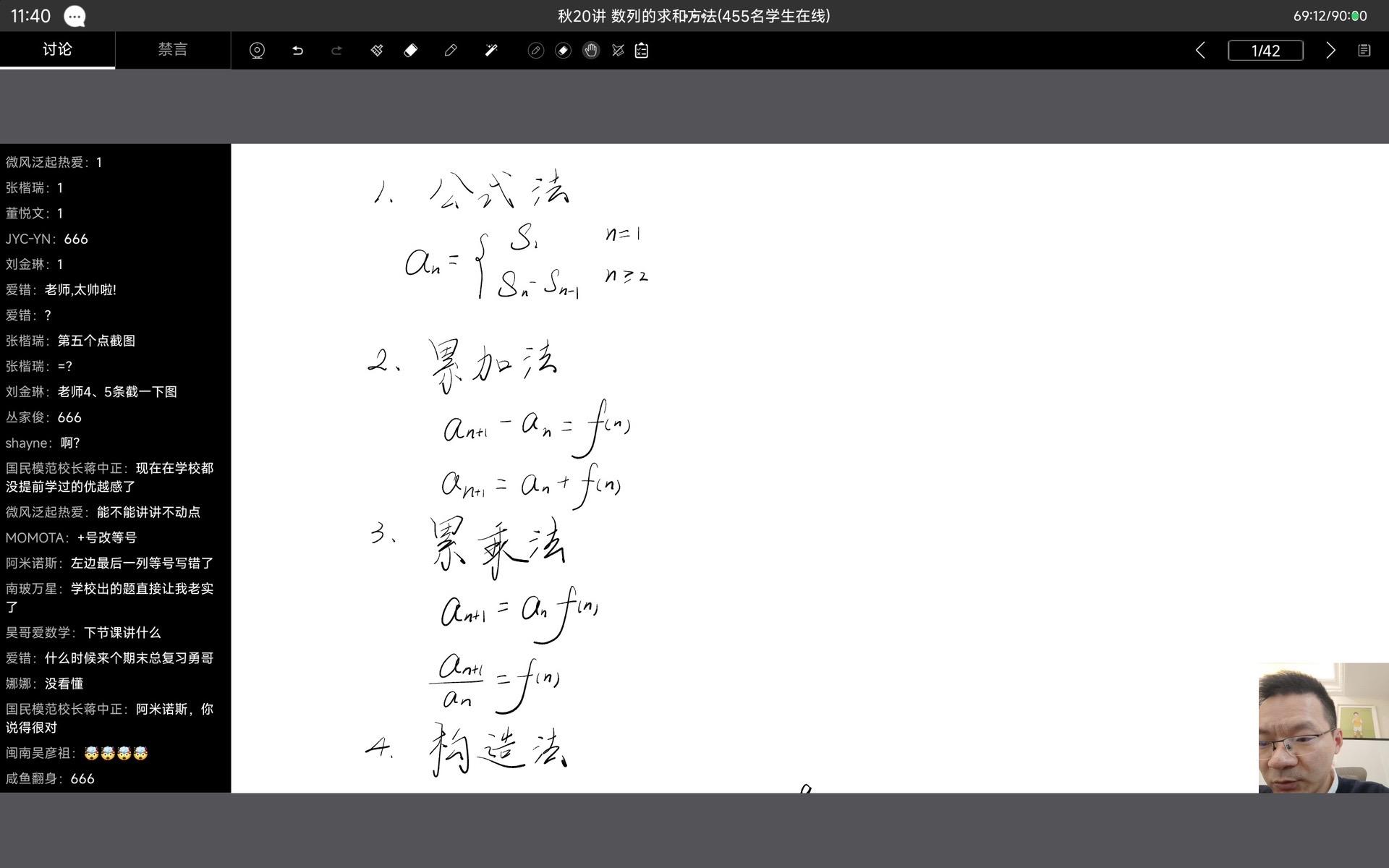新年的第二节课,给高二的学生讲数列通项构造,可能有学生没放假,只来了500正式学员,新的一年,继续加油!网课