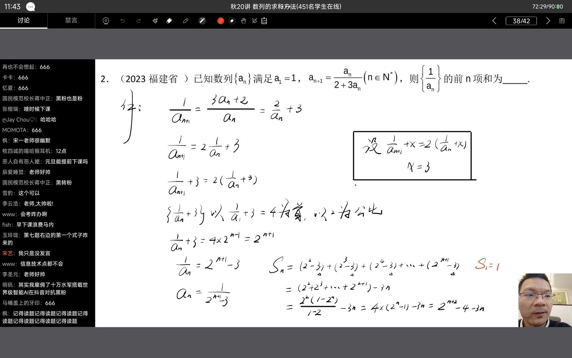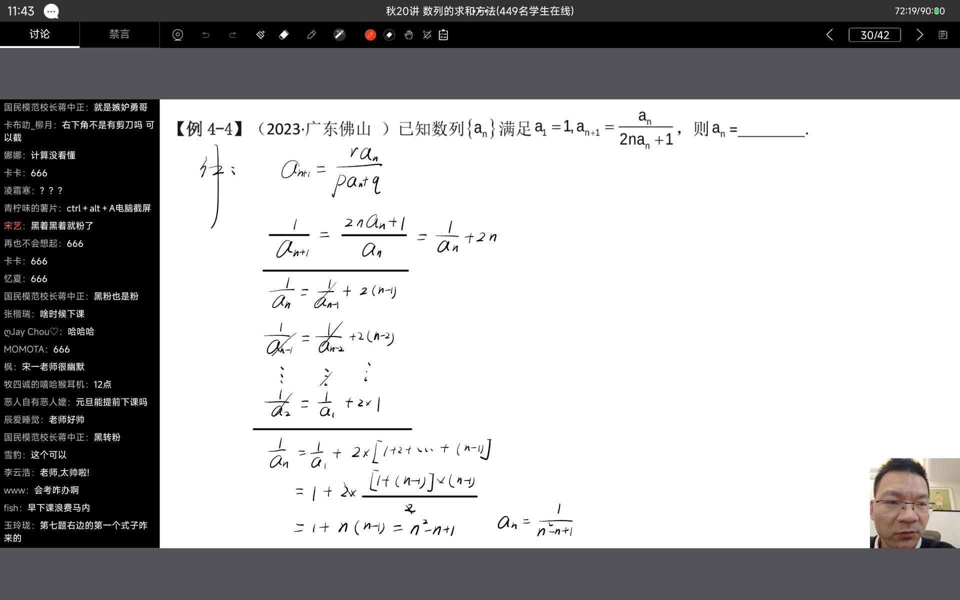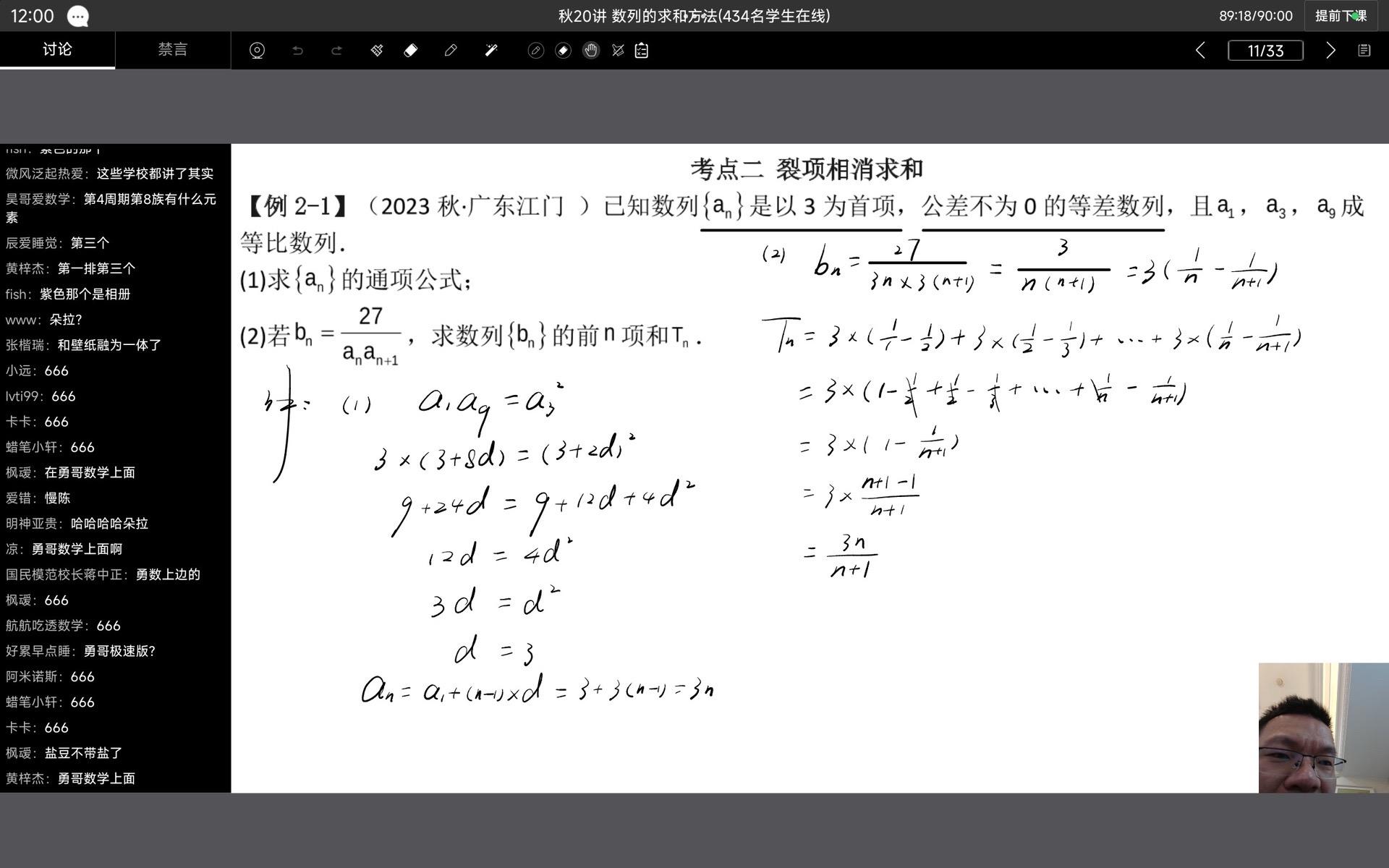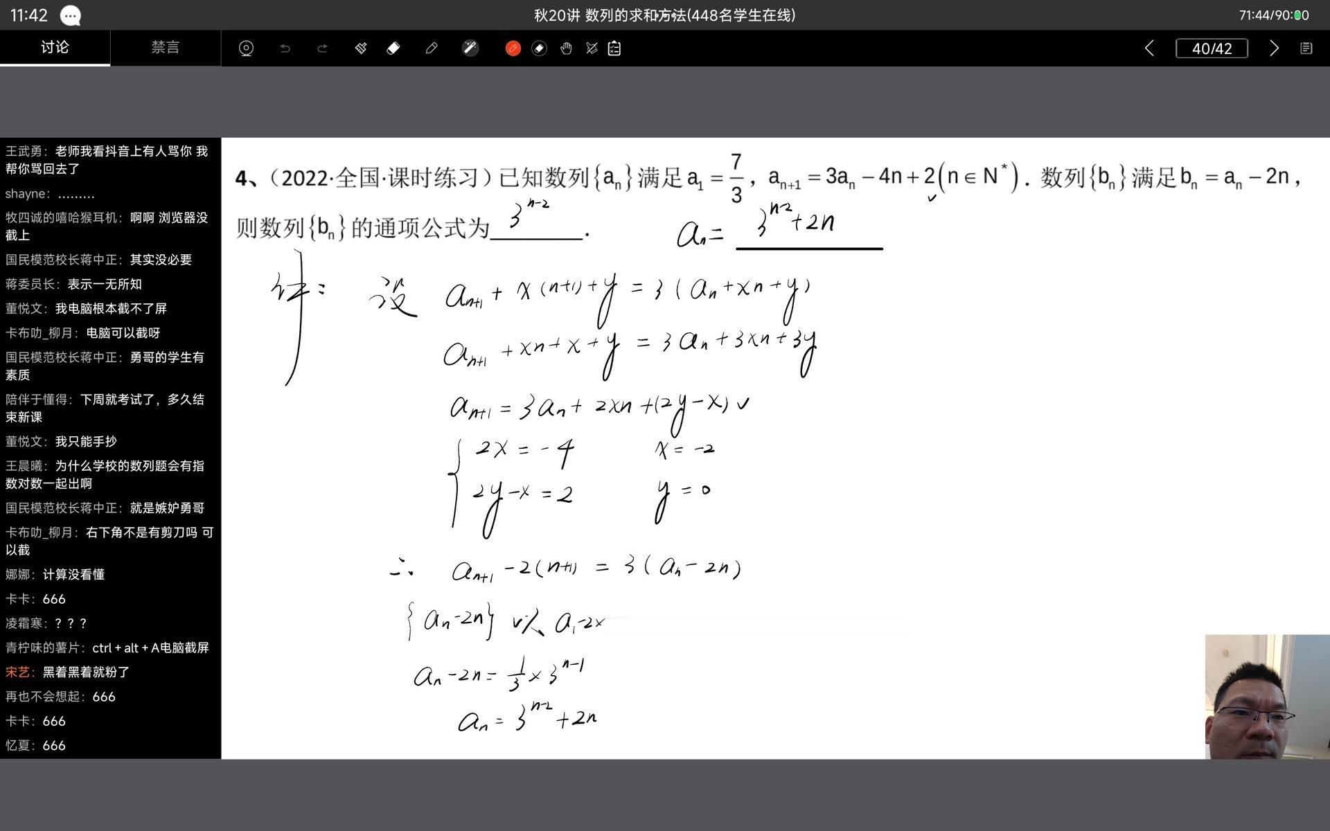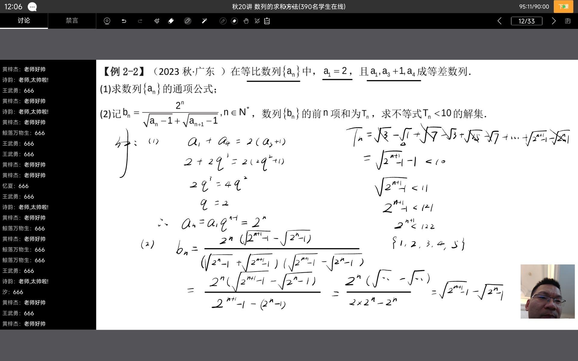 新年的第二节课,给高二的学生讲数列通项构造,可能有学生没放假,只来了500正式学员,新的一年,继续加油!网课